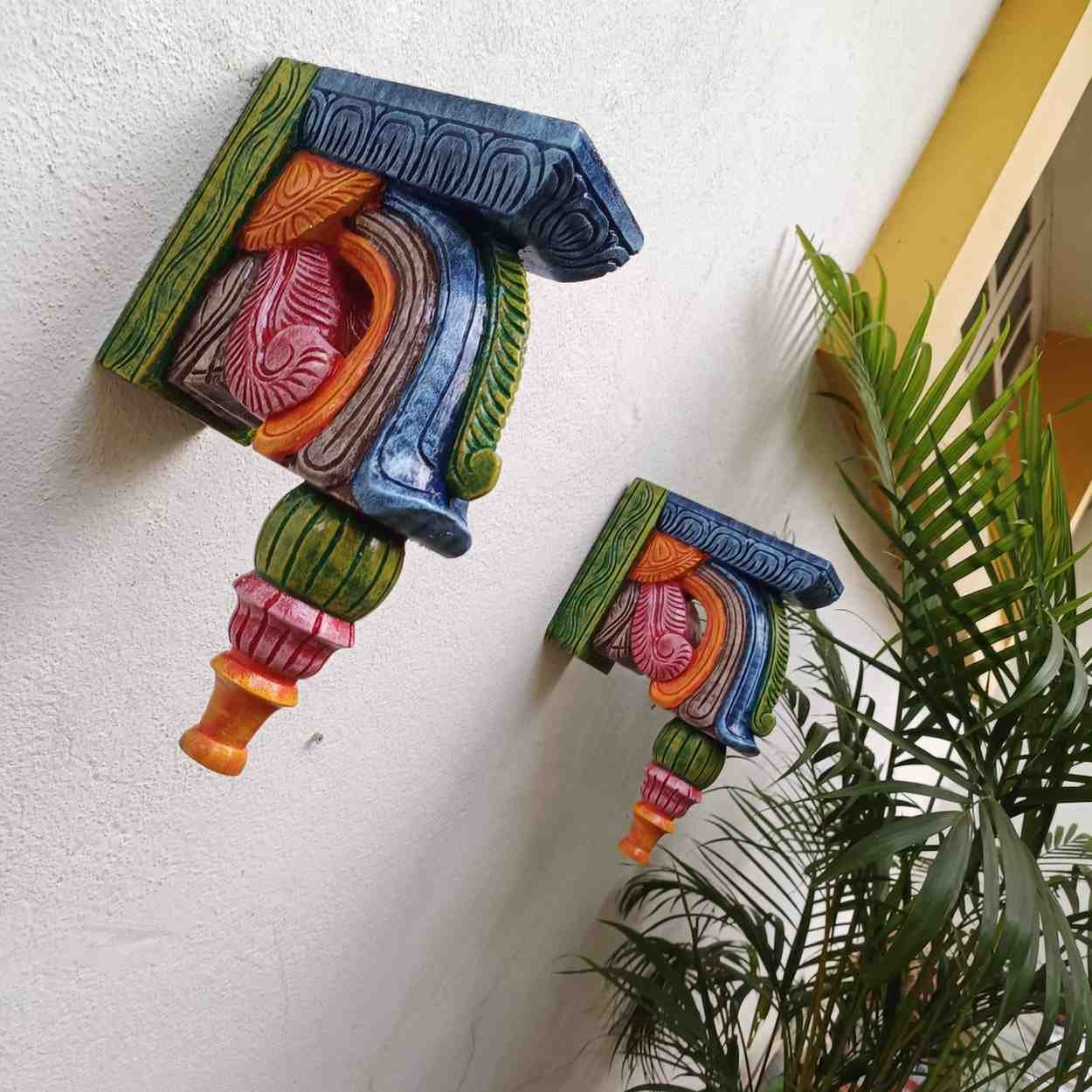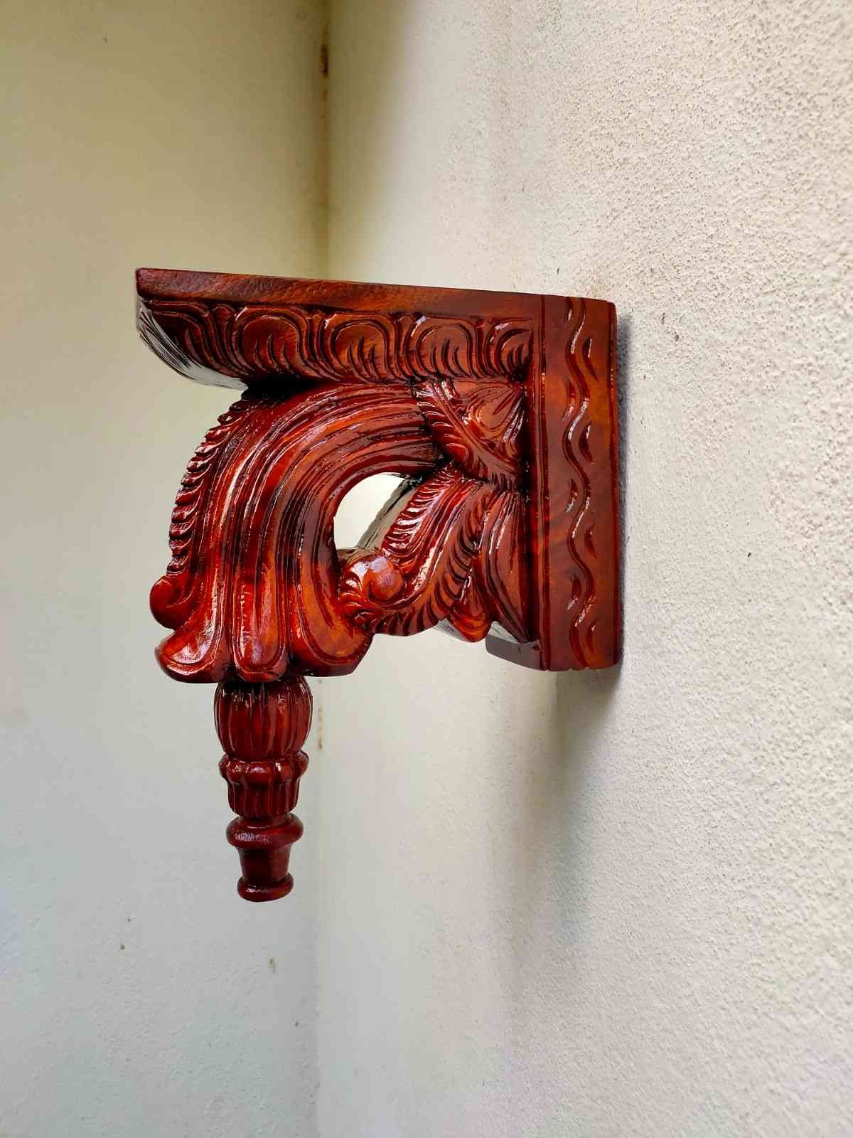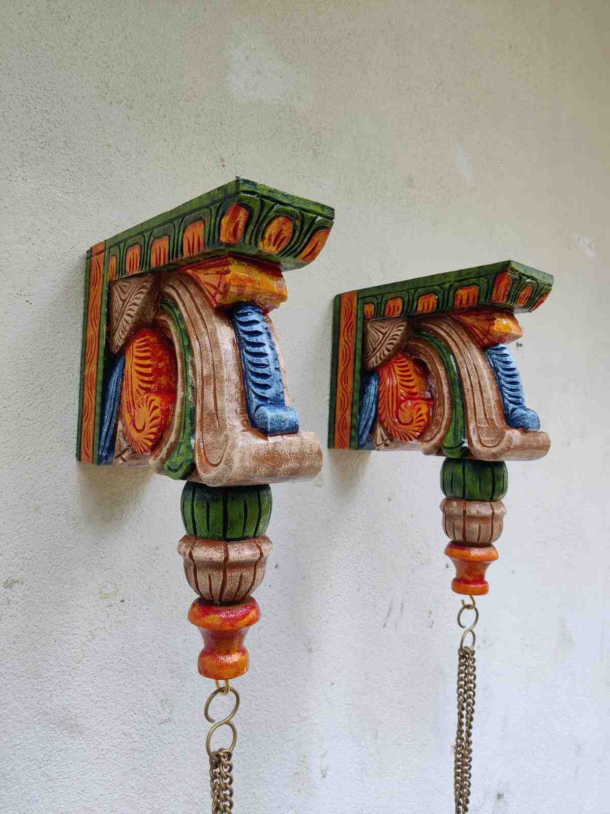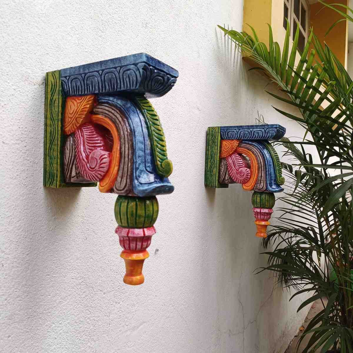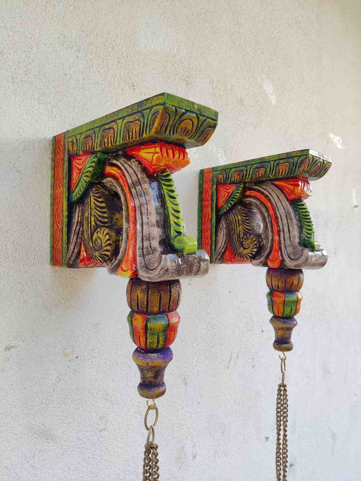 Hand Carved and Handpainted Wood wall corbel . This adds up beauty to your space with a traditional touch. The Paintings can be customized as per your requirements.