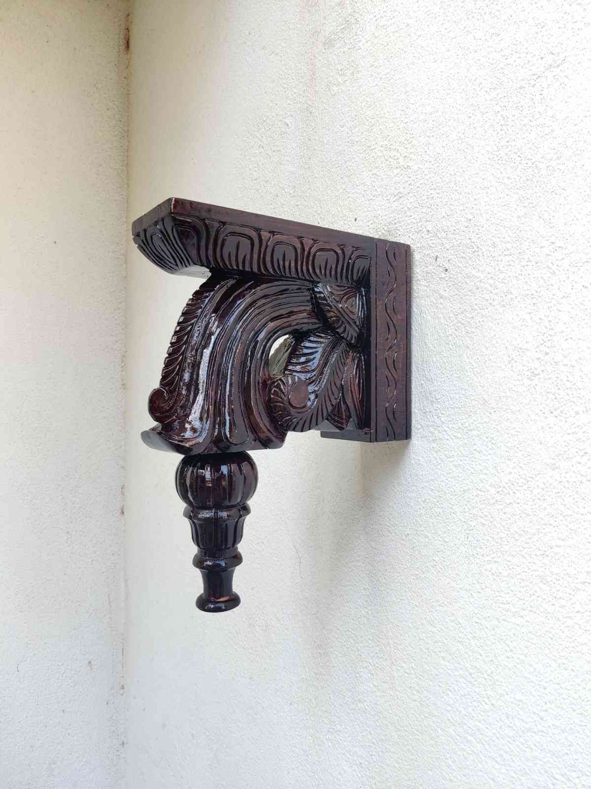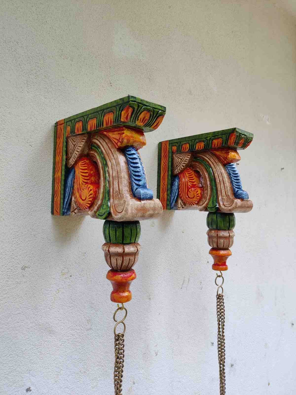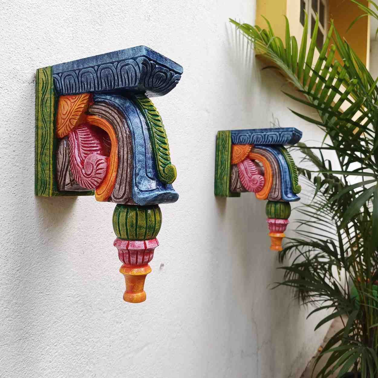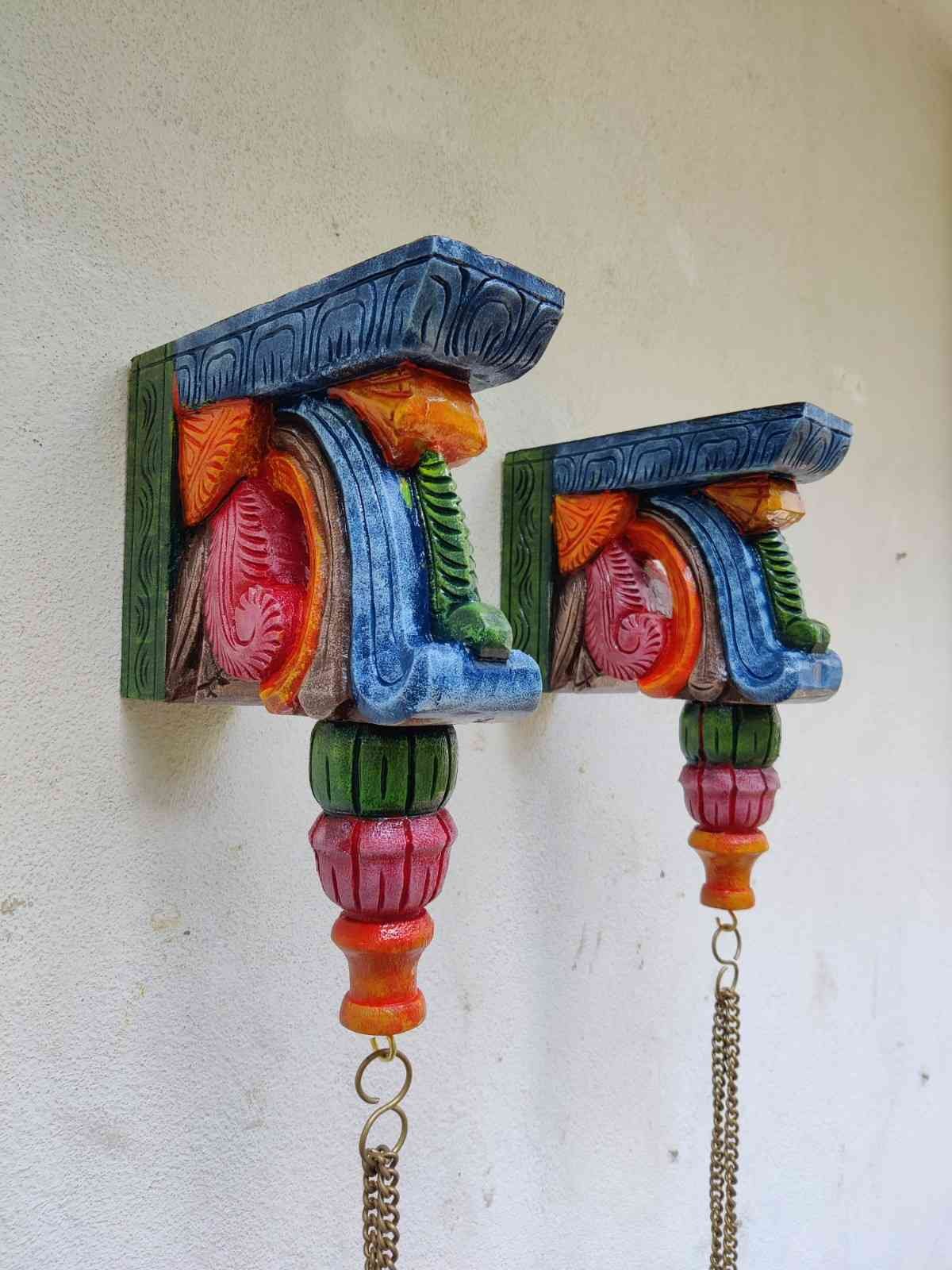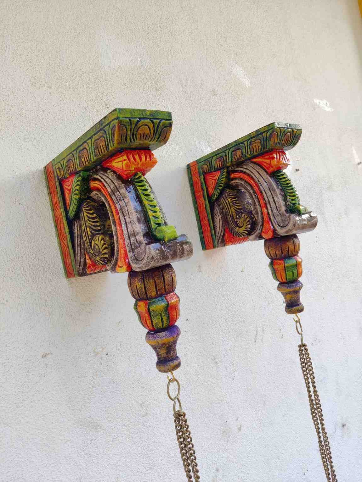 Hand Carved and Handpainted Wood wall corbel . This adds up beauty to your space with a traditional touch. The Paintings can be customized as per your requirements.