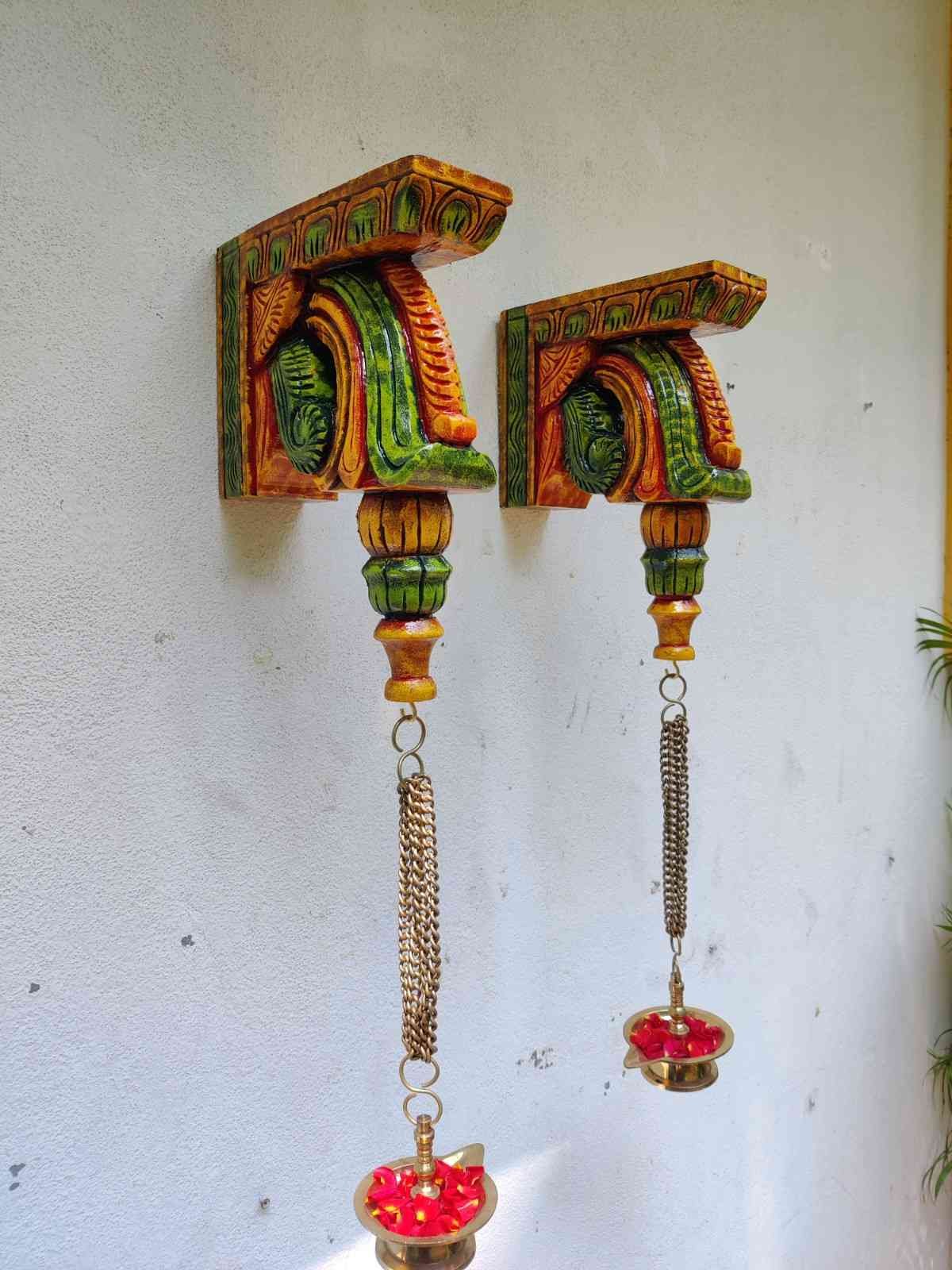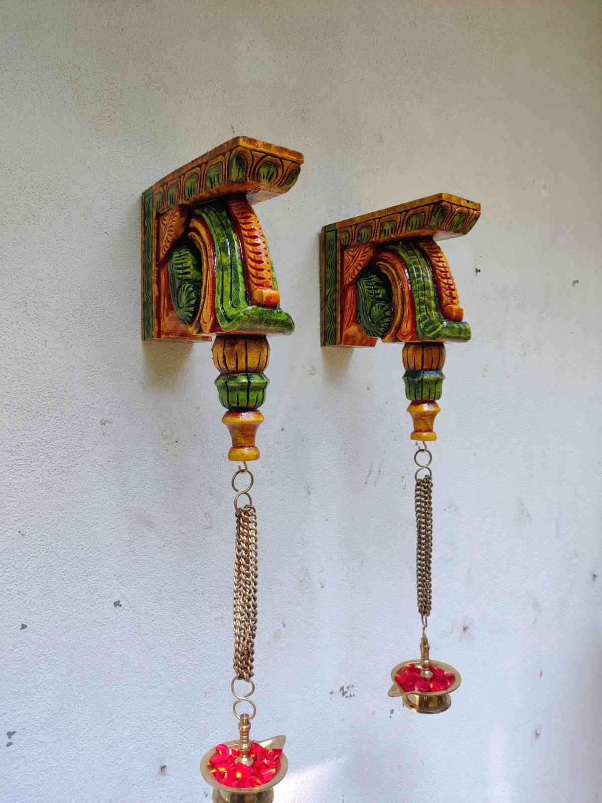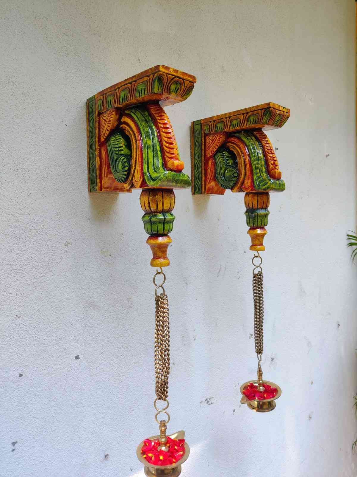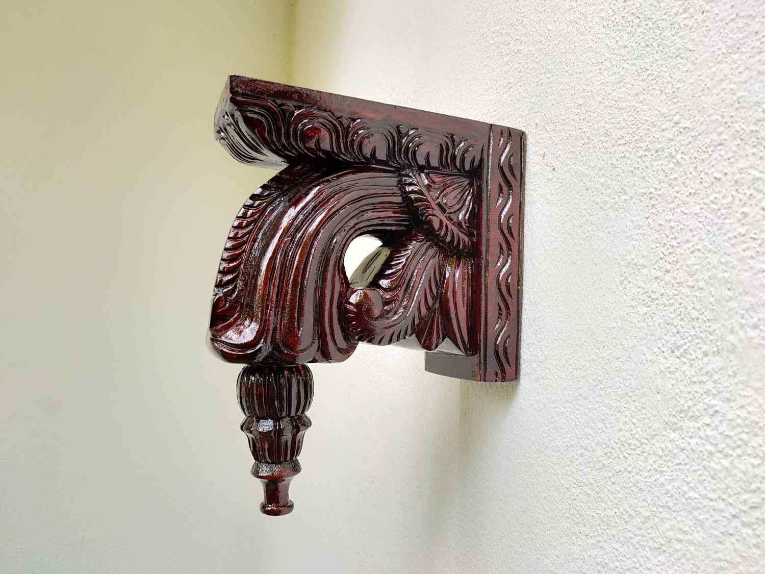 Hand Carved and Handpainted Wood wall corbel . This adds up beauty to your space with a traditional touch. The Paintings can be customized as per your requirements.