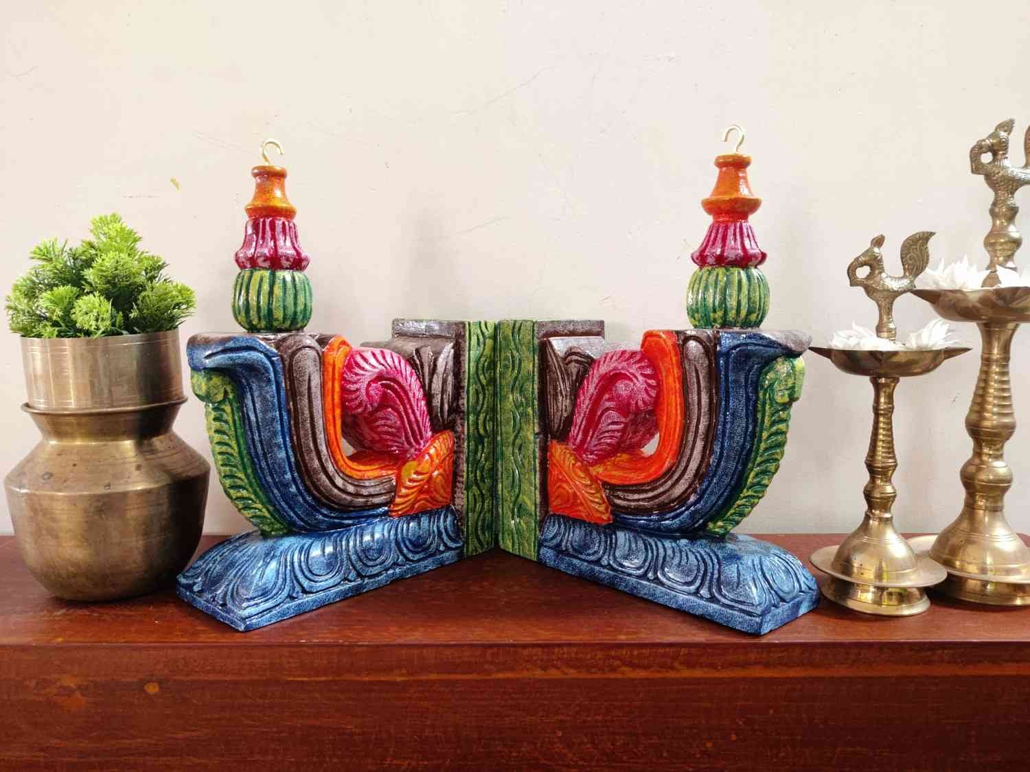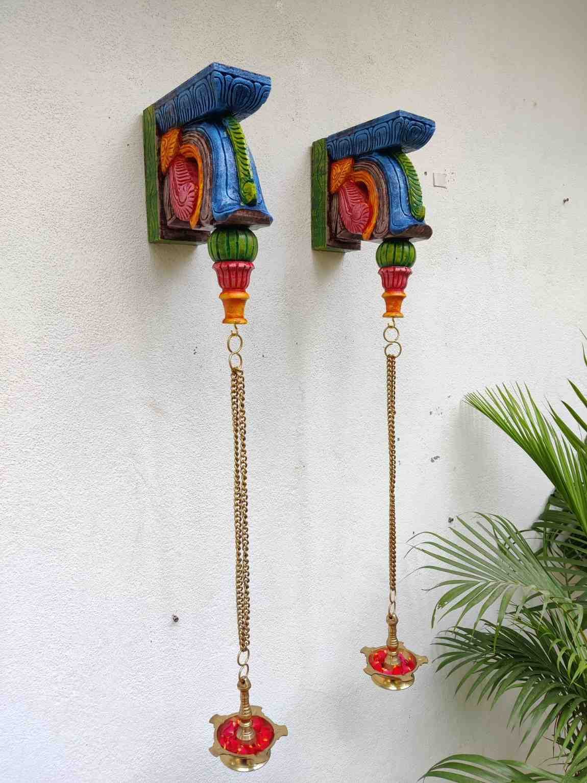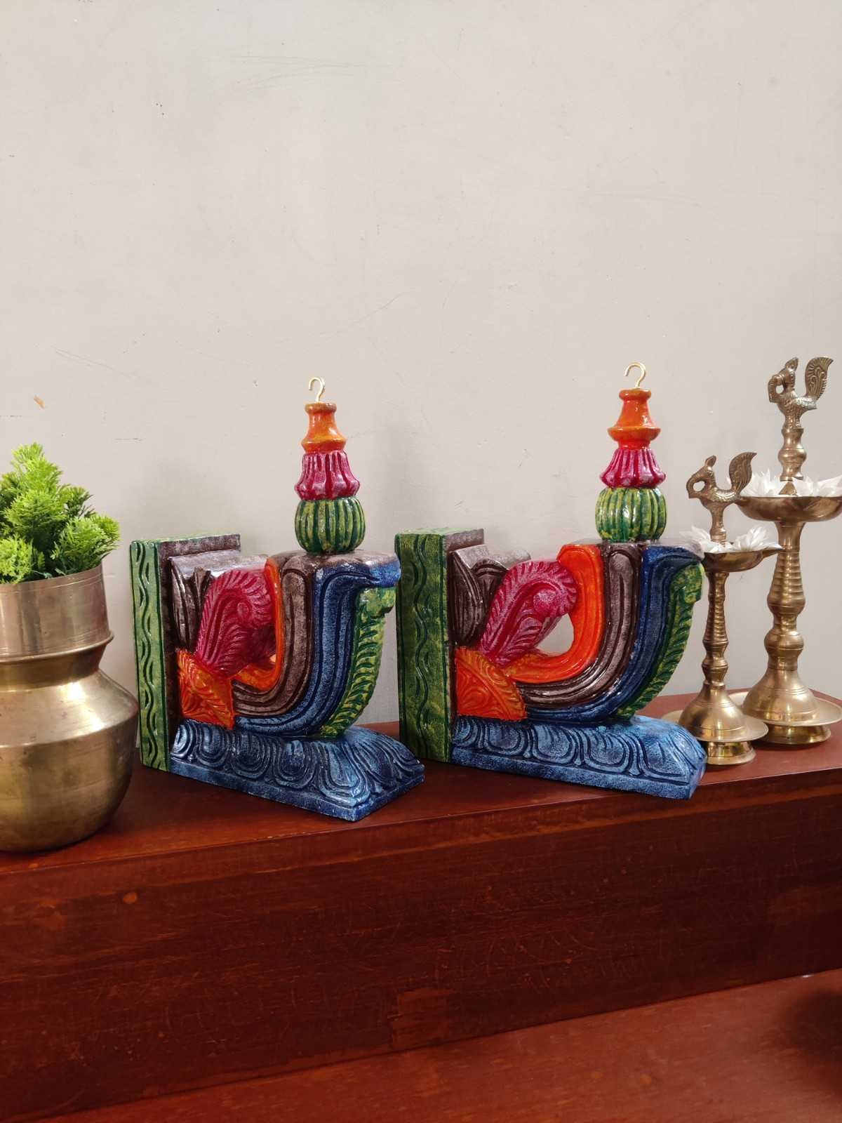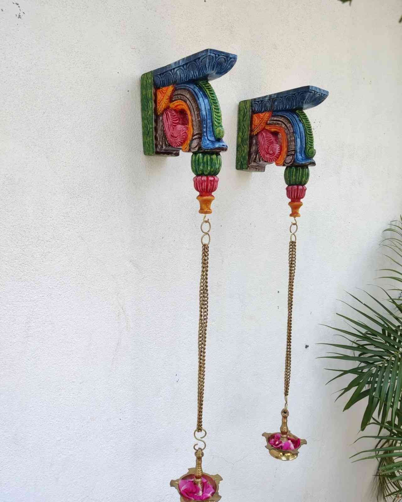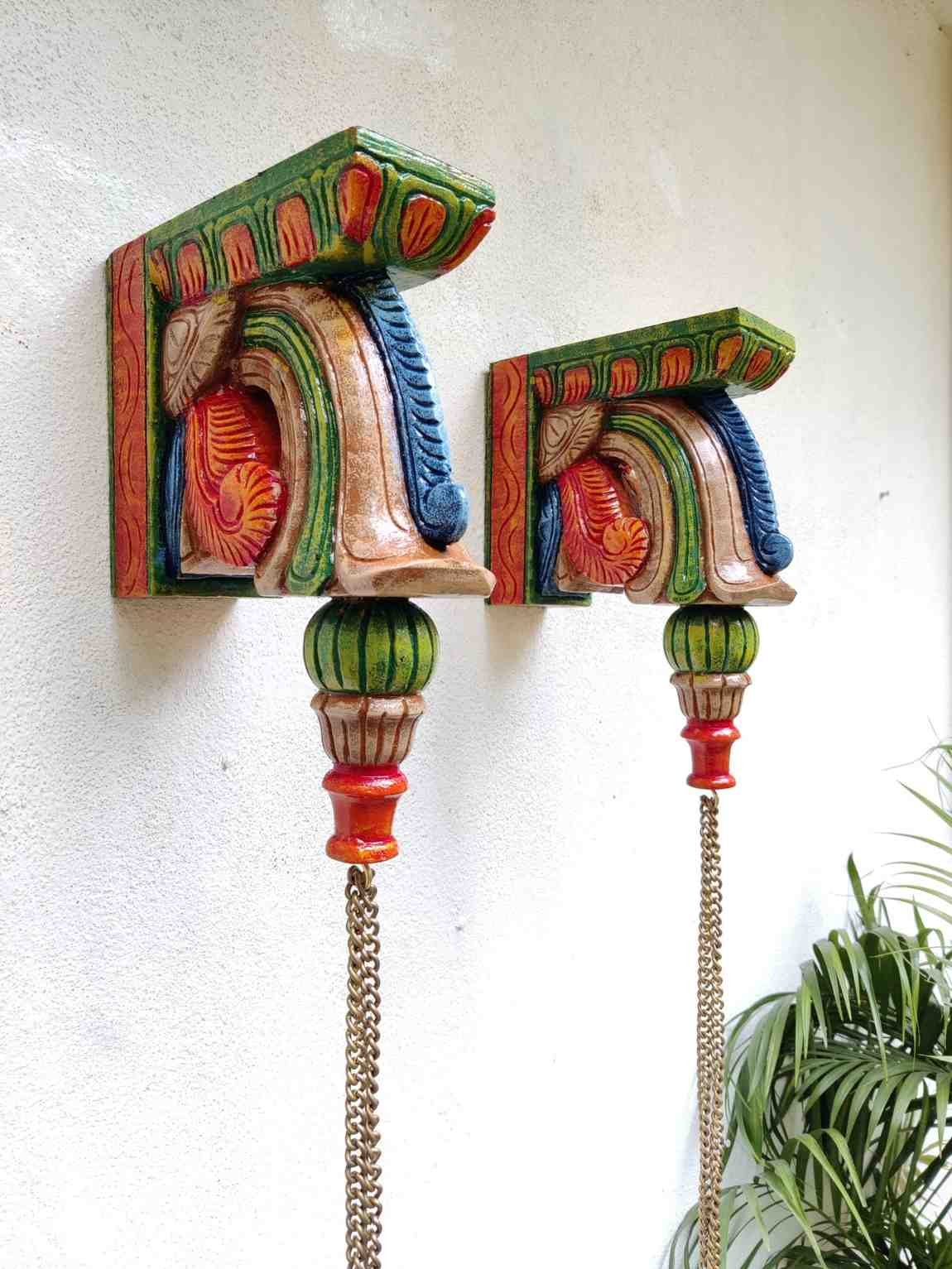 Hand Carved and Handpainted Wood wall corbel . This adds up beauty to your space with a traditional touch. The Paintings can be customized as per your requirements.