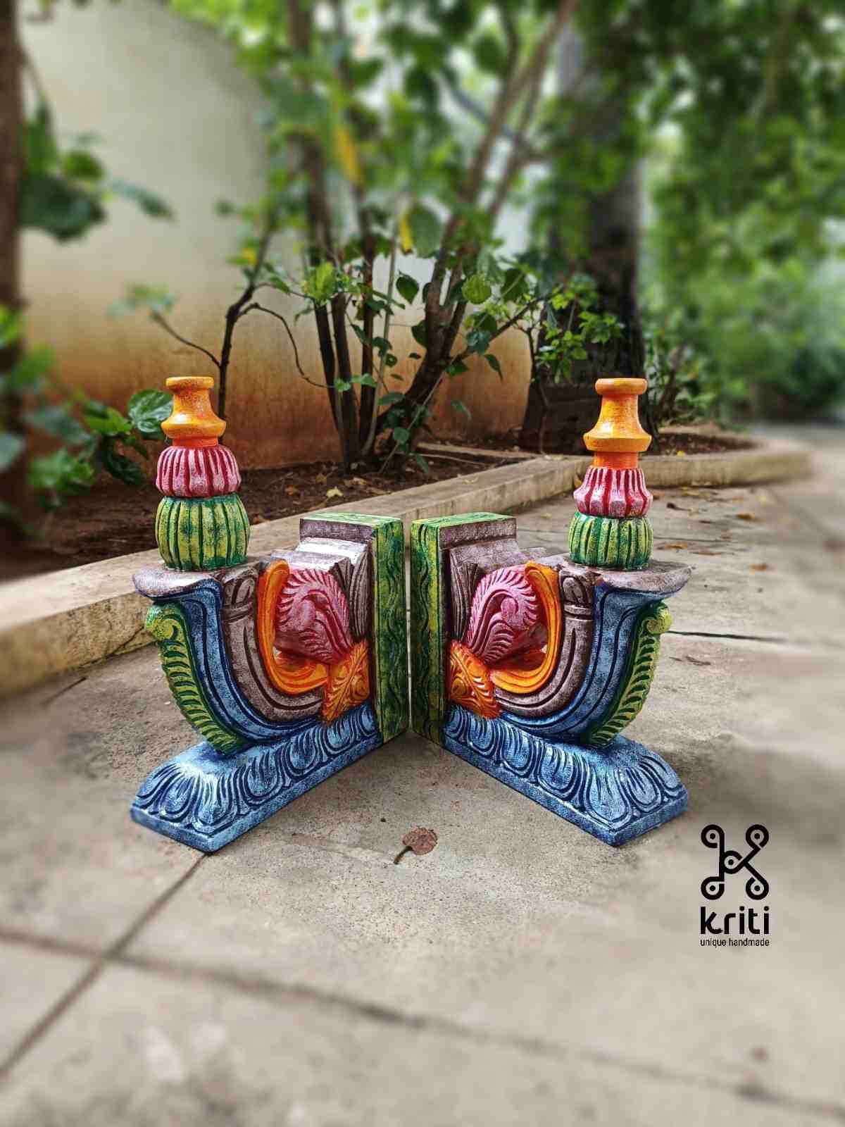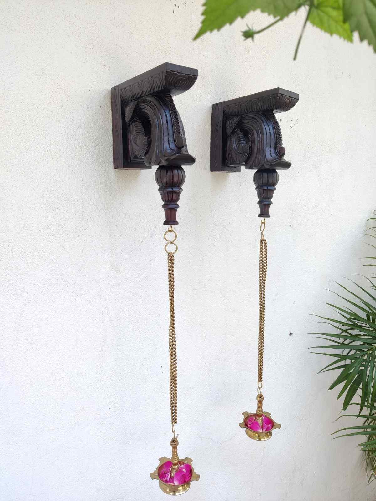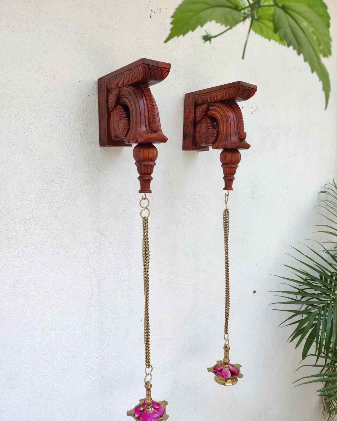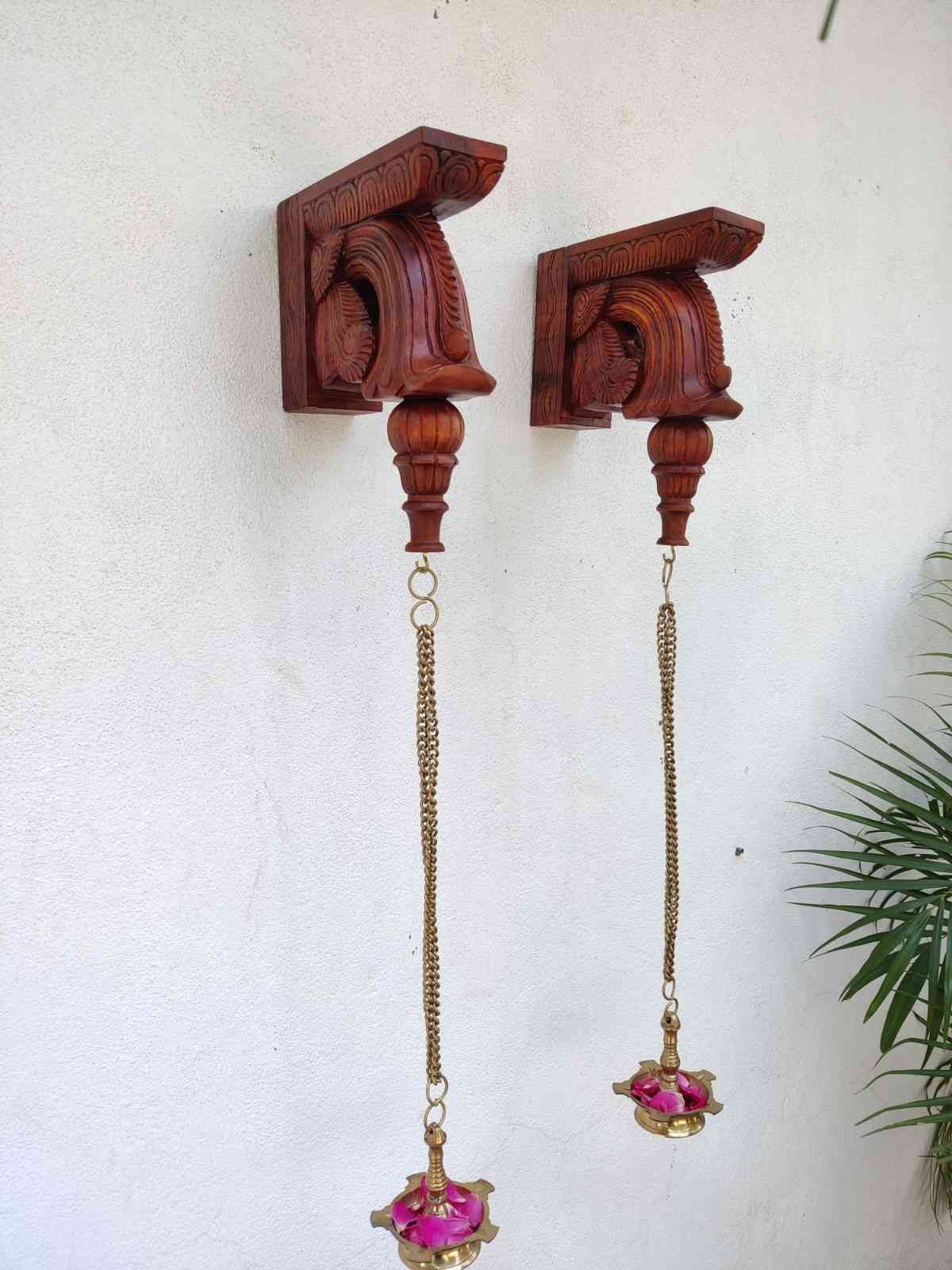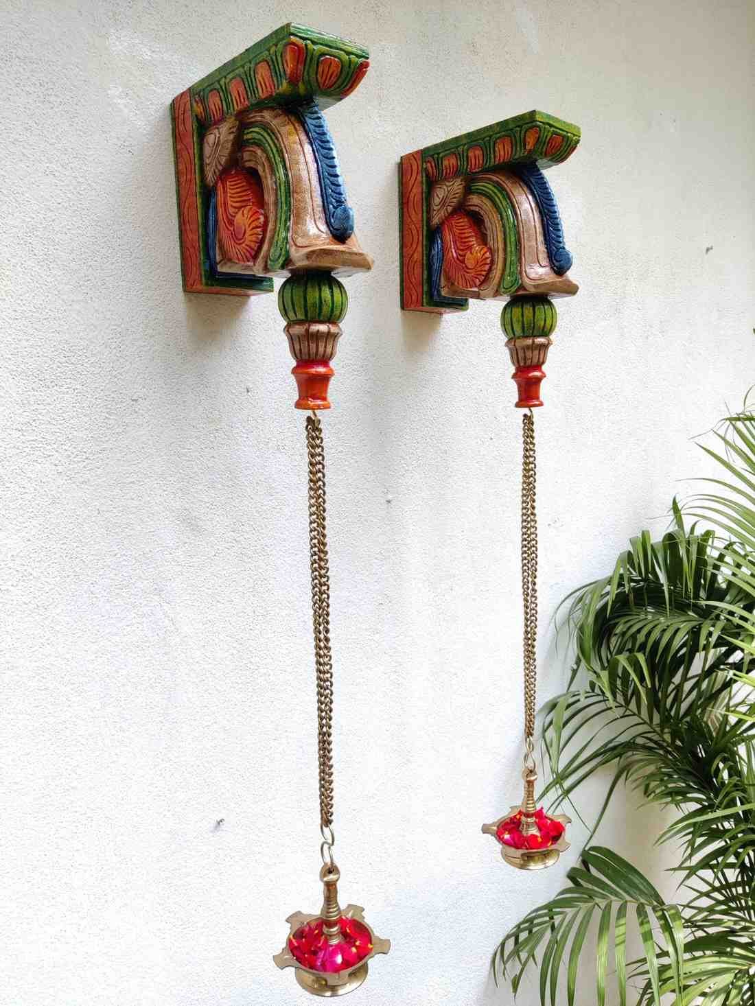 Hand Carved and Handpainted Wood wall corbel . This adds up beauty to your space with a traditional touch. The Paintings can be customized as per your requirements.