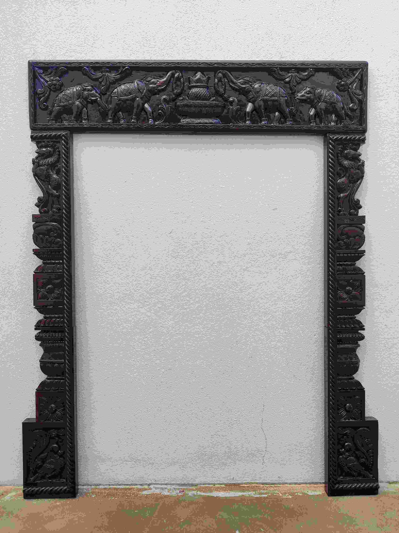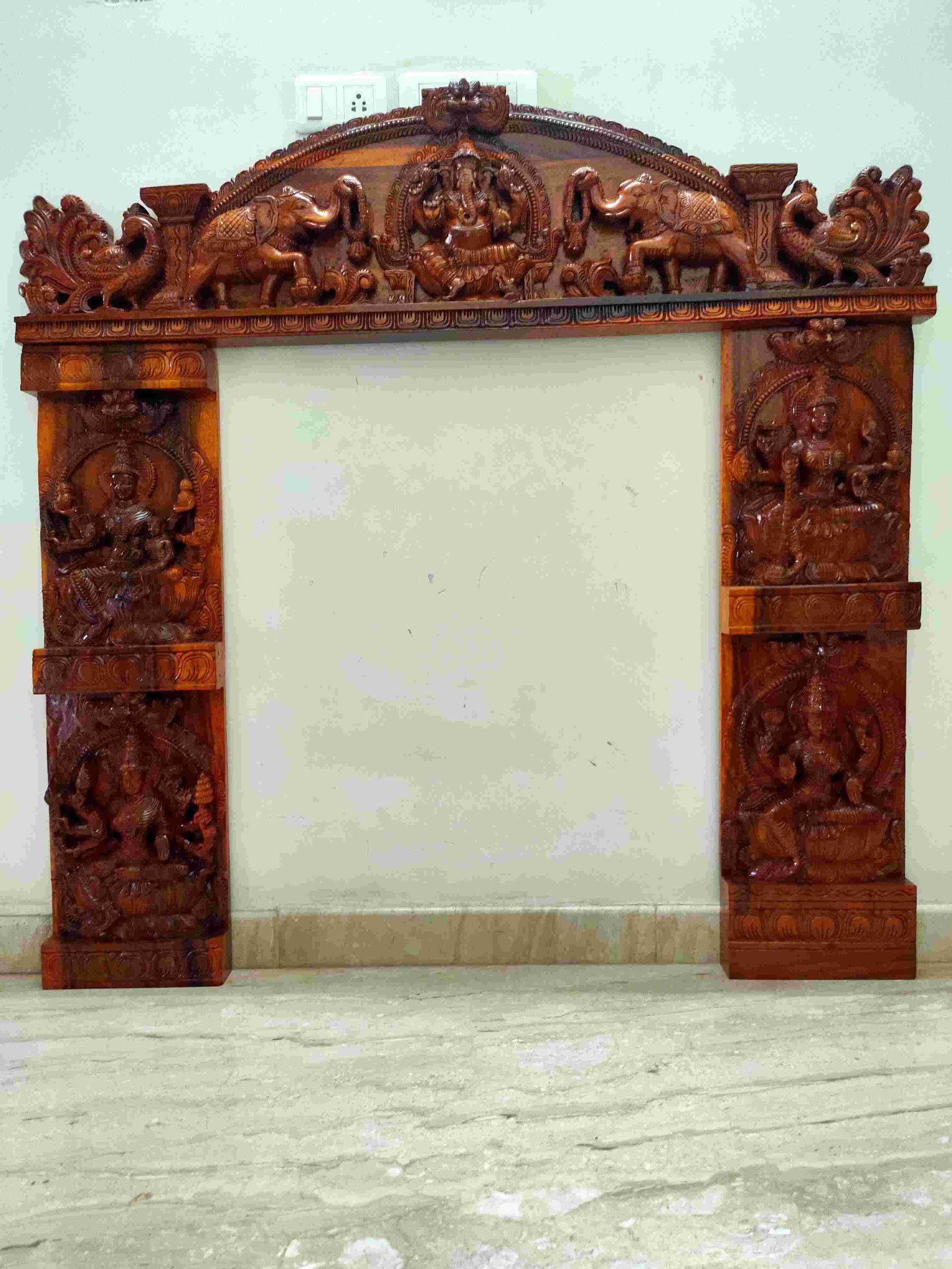 These panels are designed as per the clients requirements based on their interiors , for door frames, Pooja spaces and wall brackets that are used for entrances. Hand Carved and Handpainted Wooden Carved Panel . This adds up beauty to your space with a traditional touch. The Paintings and size can be customized as per your requirements.