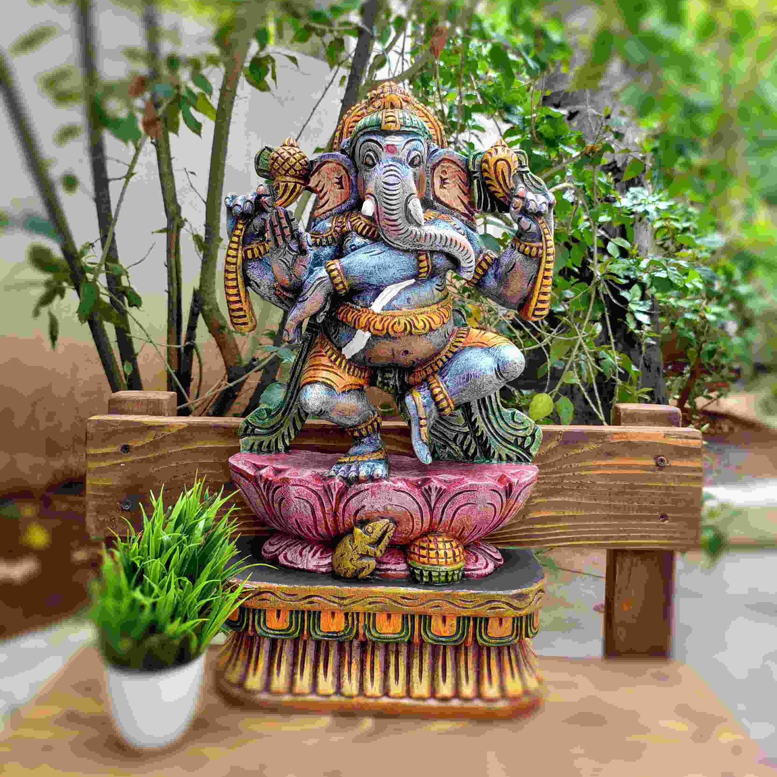 Hand Carved and Handpainted Wood Statues. Each Statue is hand carved to its grace and hand painted by us. This adds up beauty to your space with a traditional touch. The Size and Paintings can be customized as per your requirement
