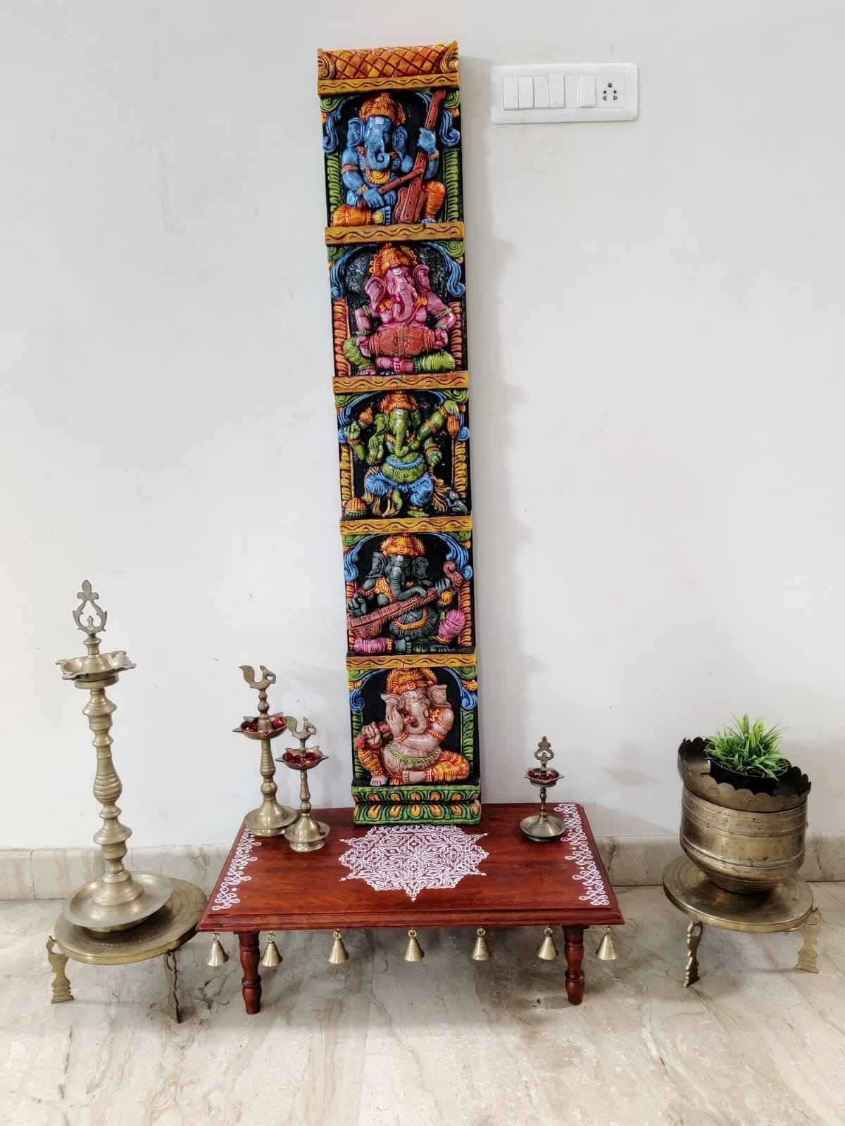 Hand Carved and Handpainted Wooden Carved Panel . This adds up beauty to your space with a traditional touch. The Paintings and size can be customized as per your requirements.