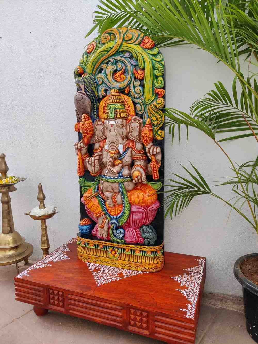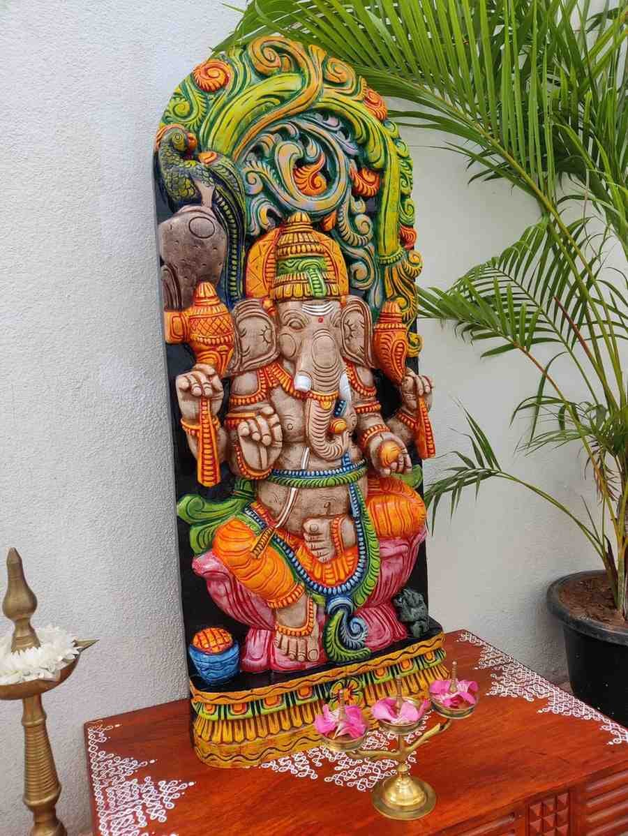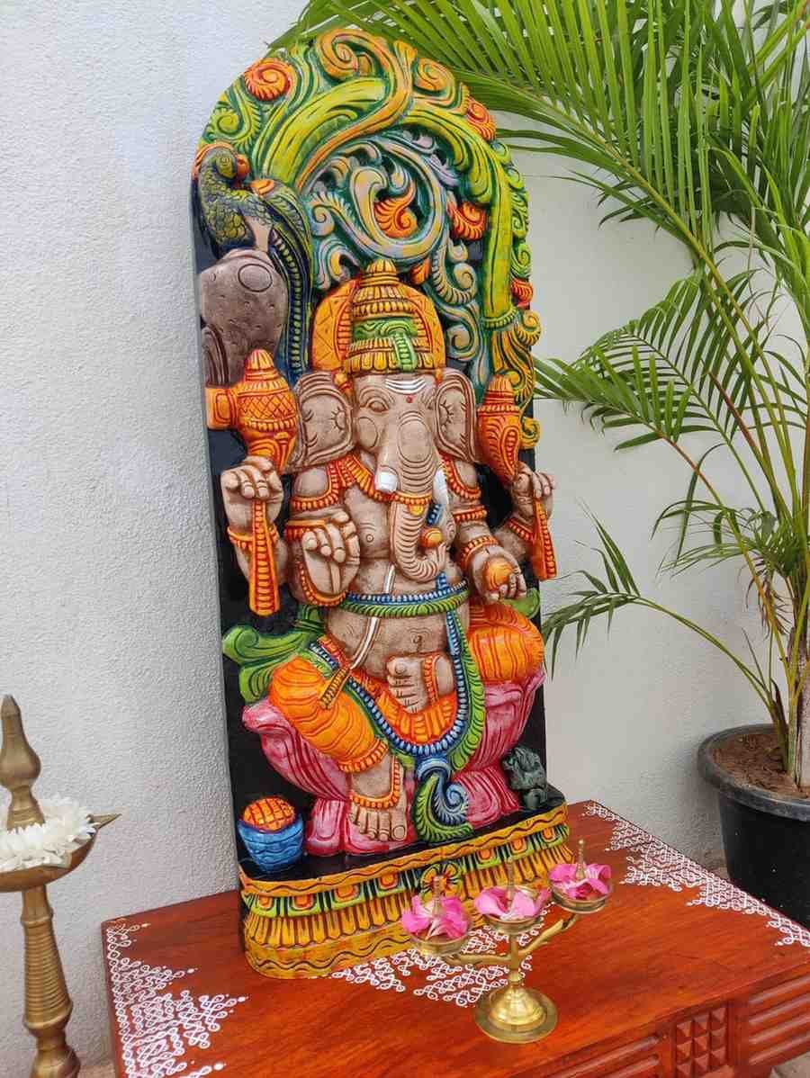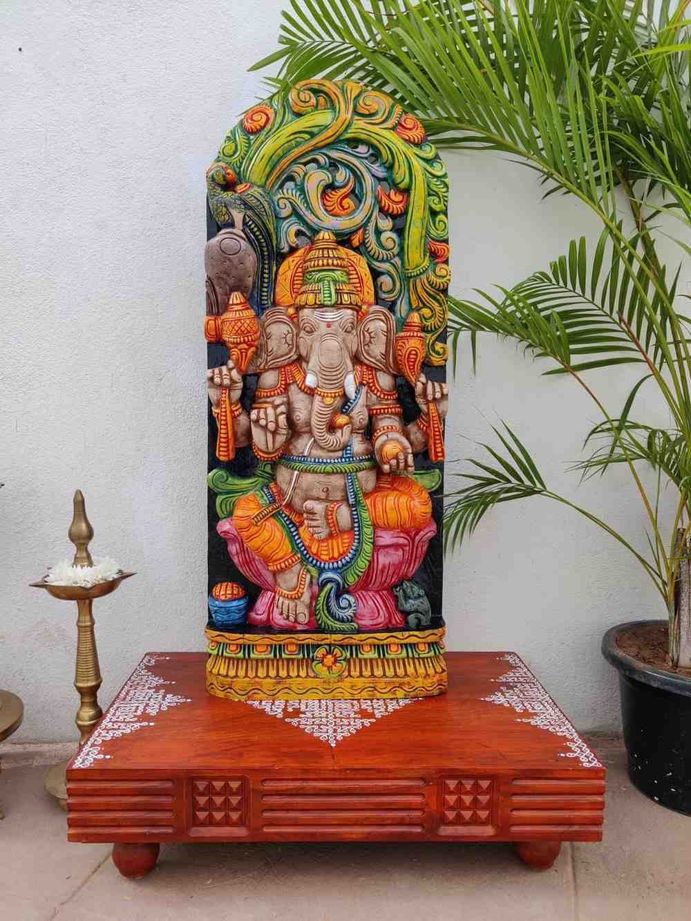 Hand Carved and Handpainted Wood Statues. Each Statue is hand carved to its grace and hand painted by us. This adds up beauty to your space with a traditional touch. The Size and Paintings can be customized as per your requirement