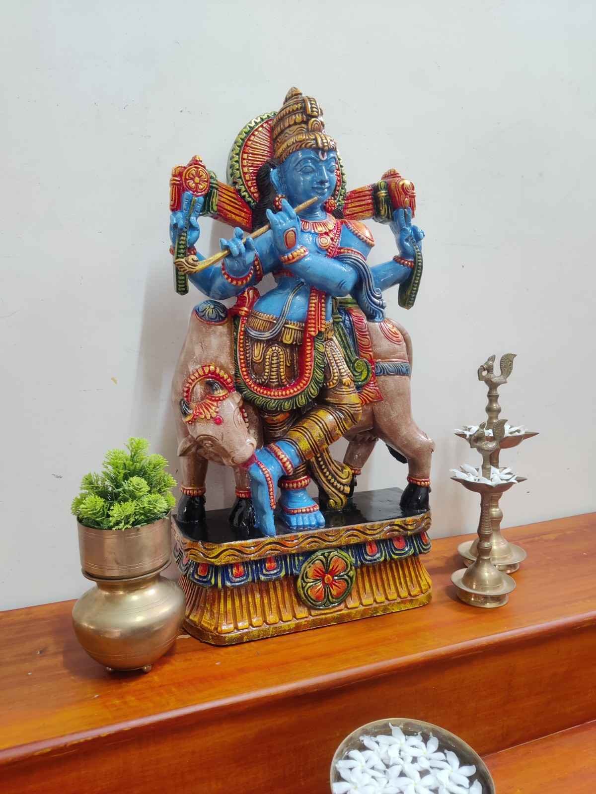 Hand Carved and Handpainted Wood Statues. Each Statue is hand carved to its grace and hand painted by us. This adds up beauty to your space with a traditional touch. The Size and Paintings can be customized as per your requirement