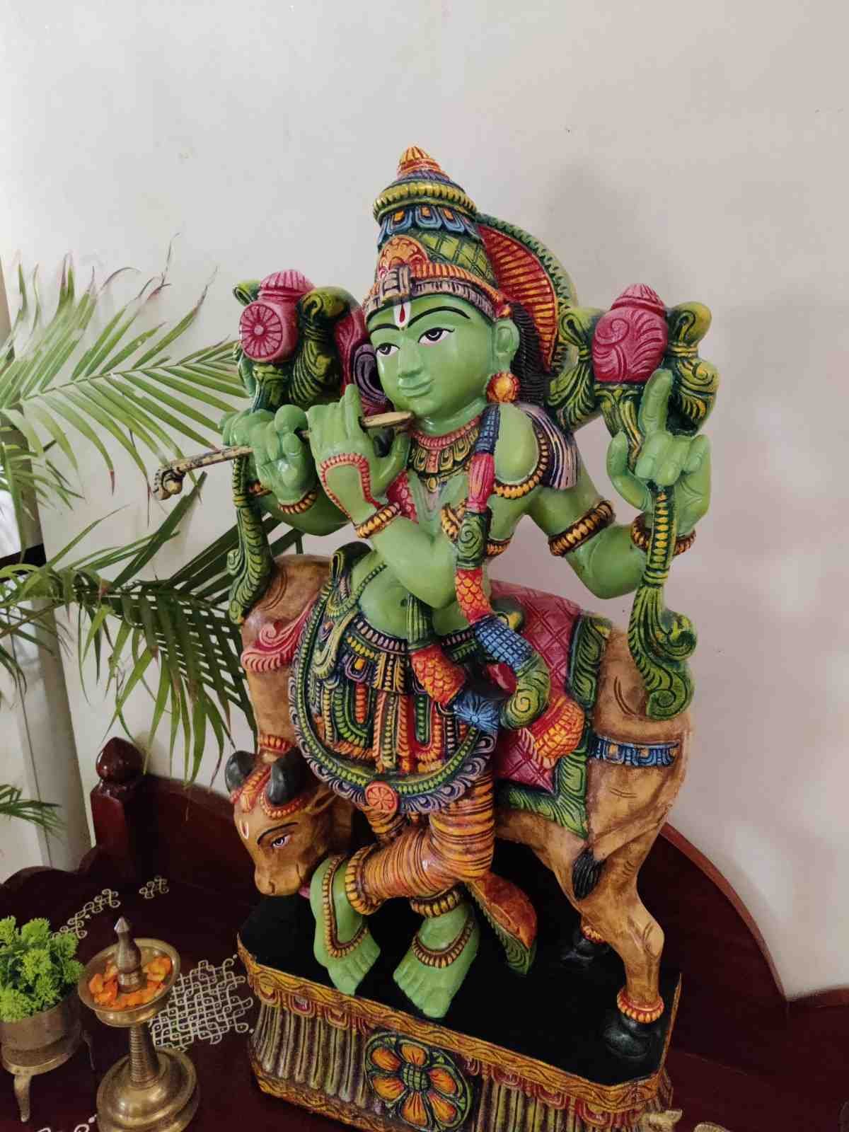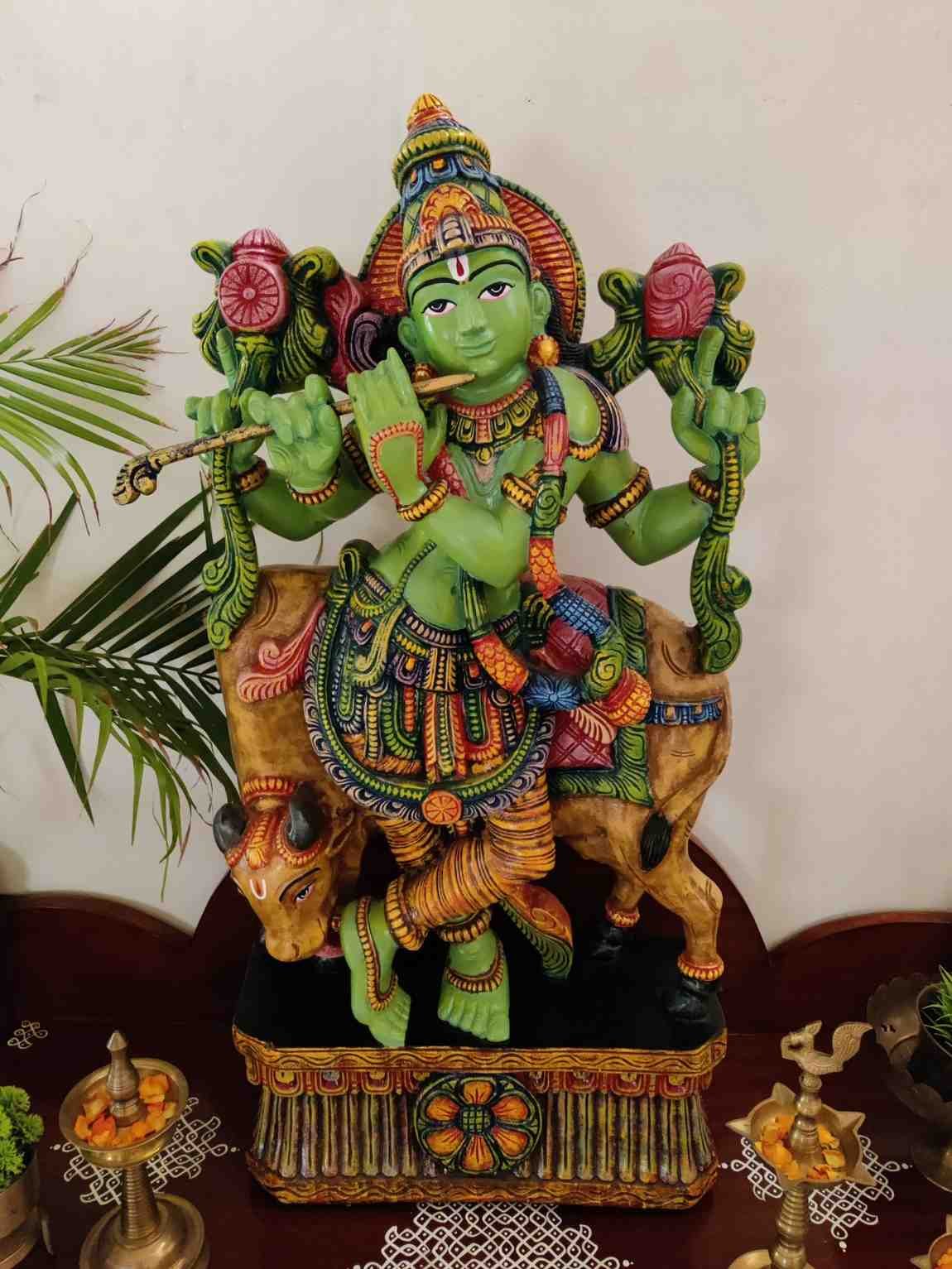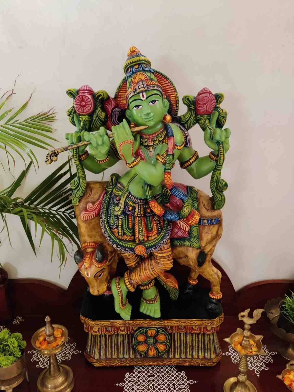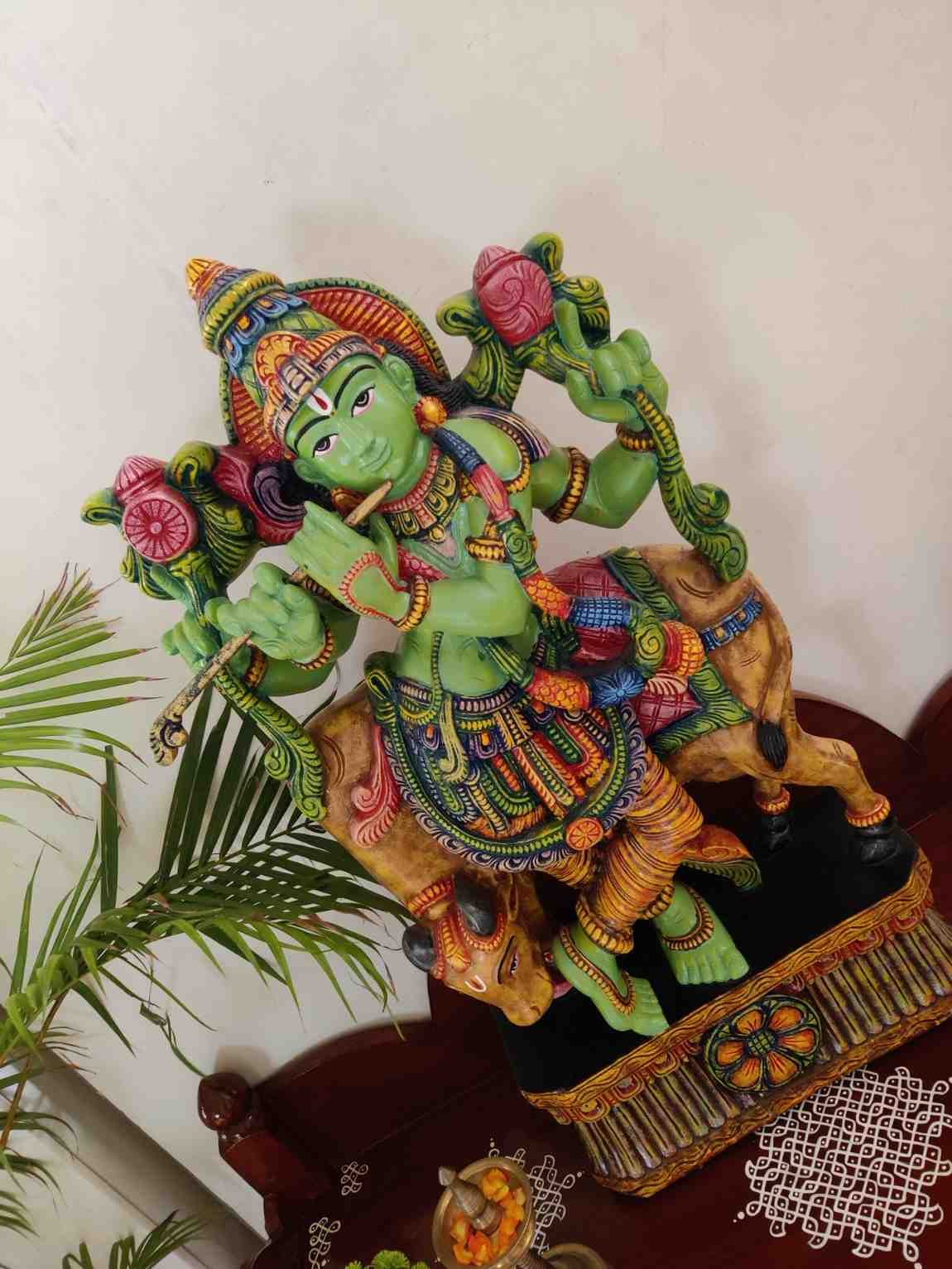 Hand Carved and Handpainted Wood Statues. Each Statue is hand carved to its grace and hand painted by us. This adds up beauty to your space with a traditional touch. The Size and Paintings can be customized as per your requirement