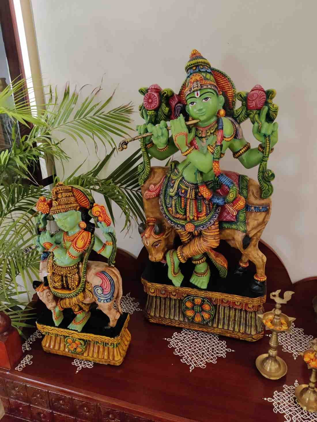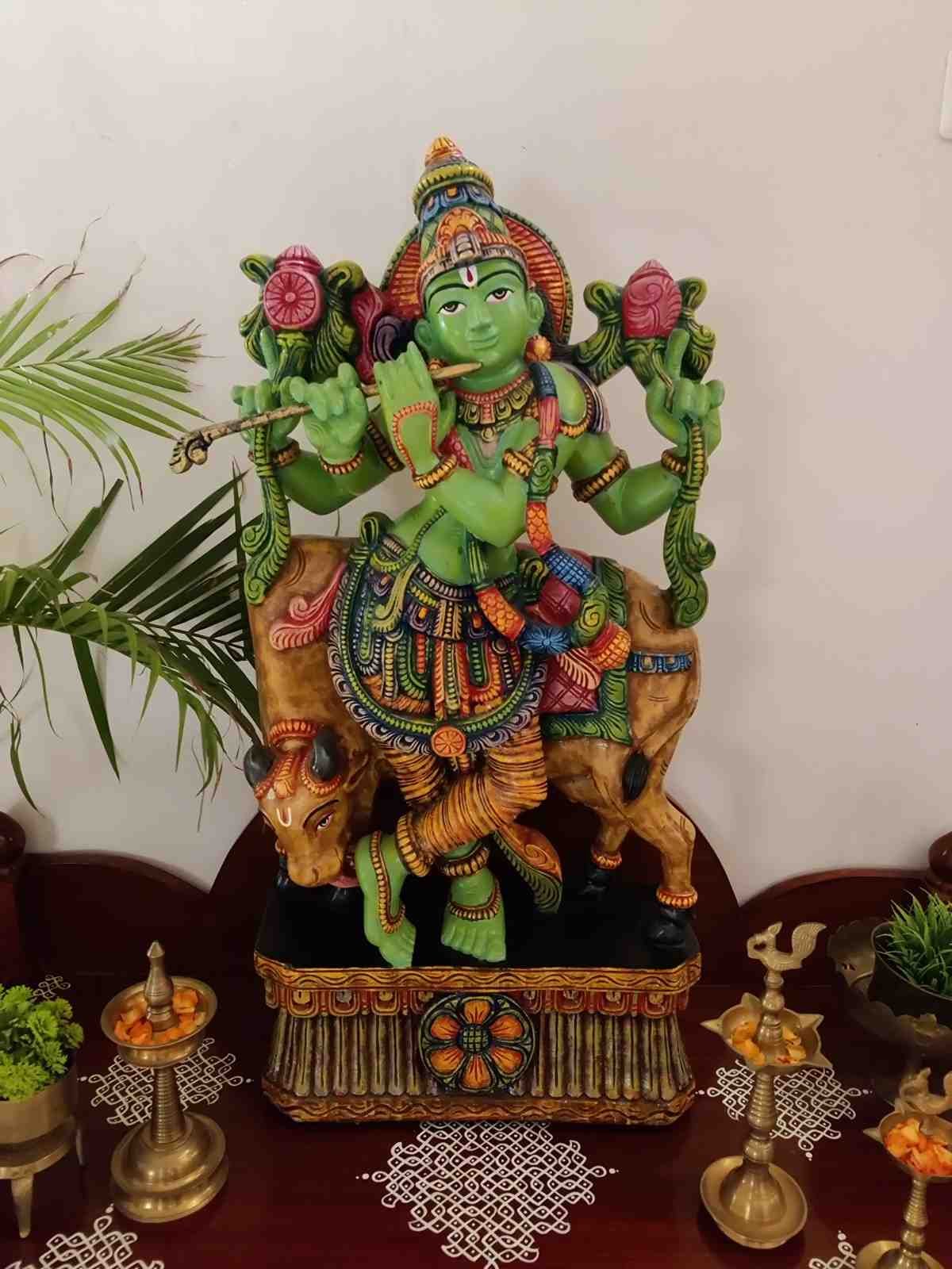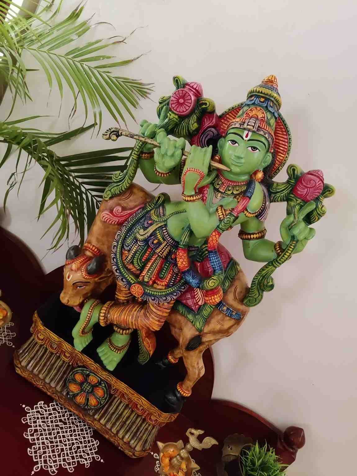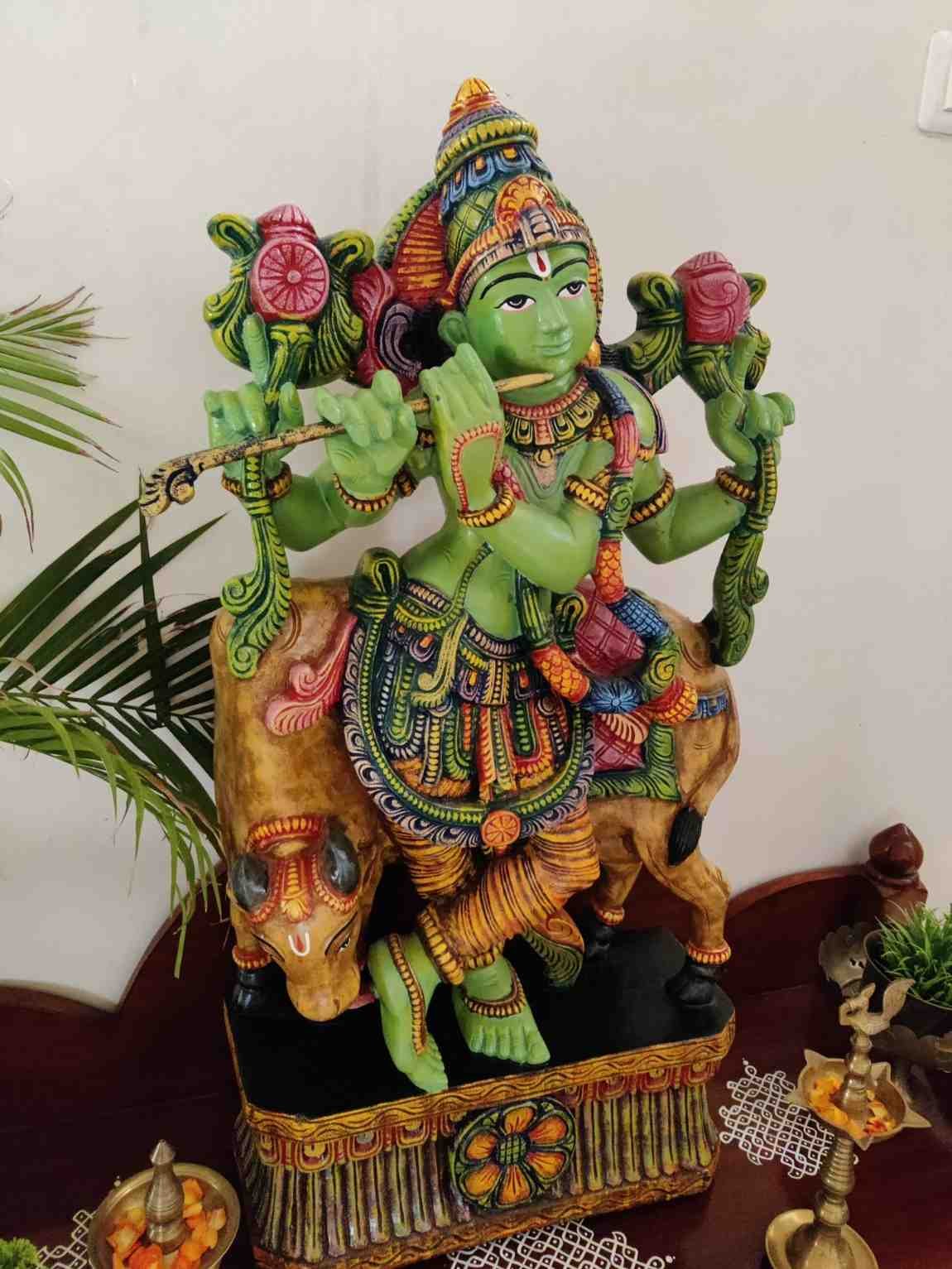Hand Carved and Handpainted Wood Statues. Each Statue is hand carved to its grace and hand painted by us. This adds up beauty to your space with a traditional touch. The Size and Paintings can be customized as per your requirement
