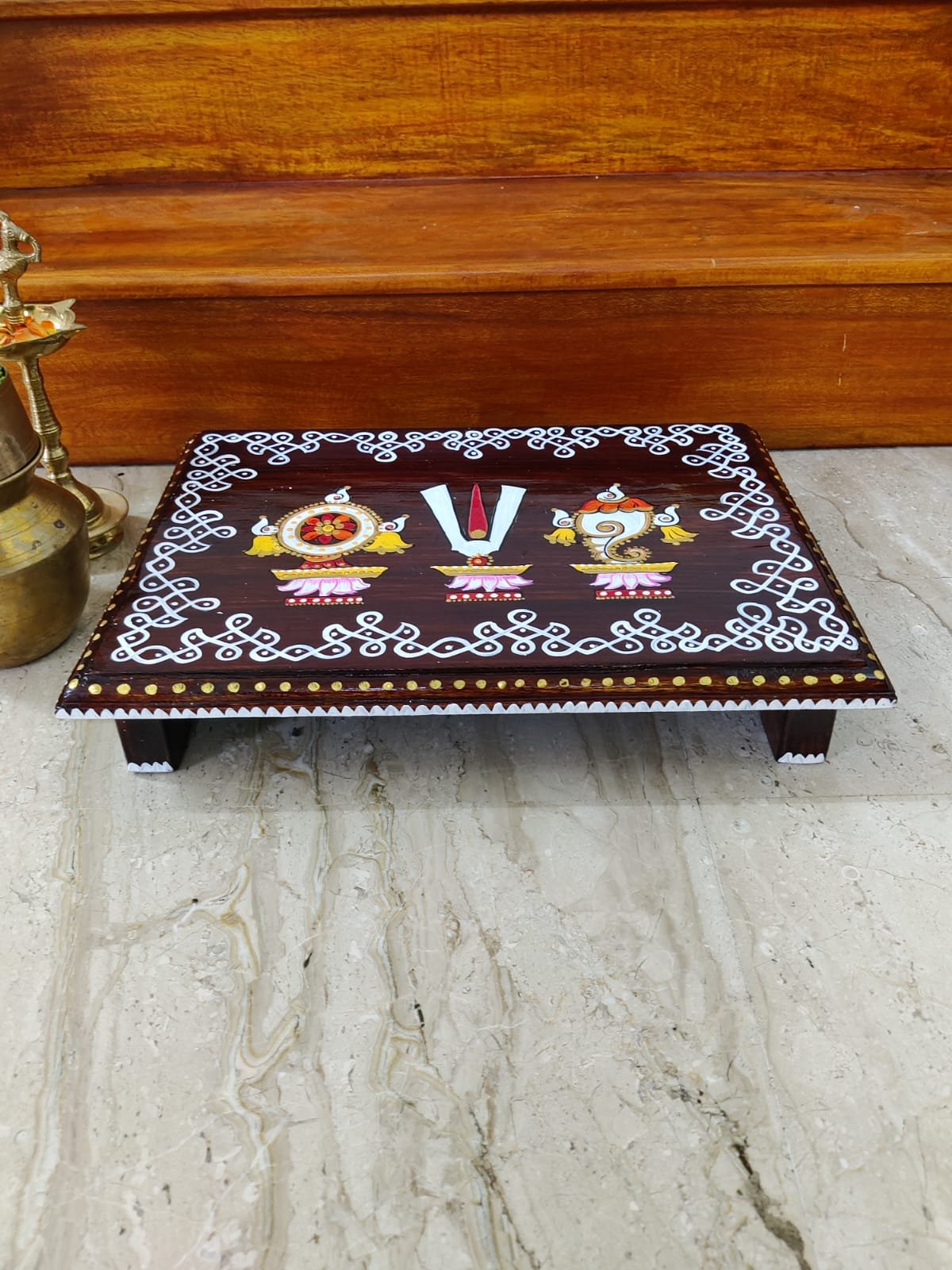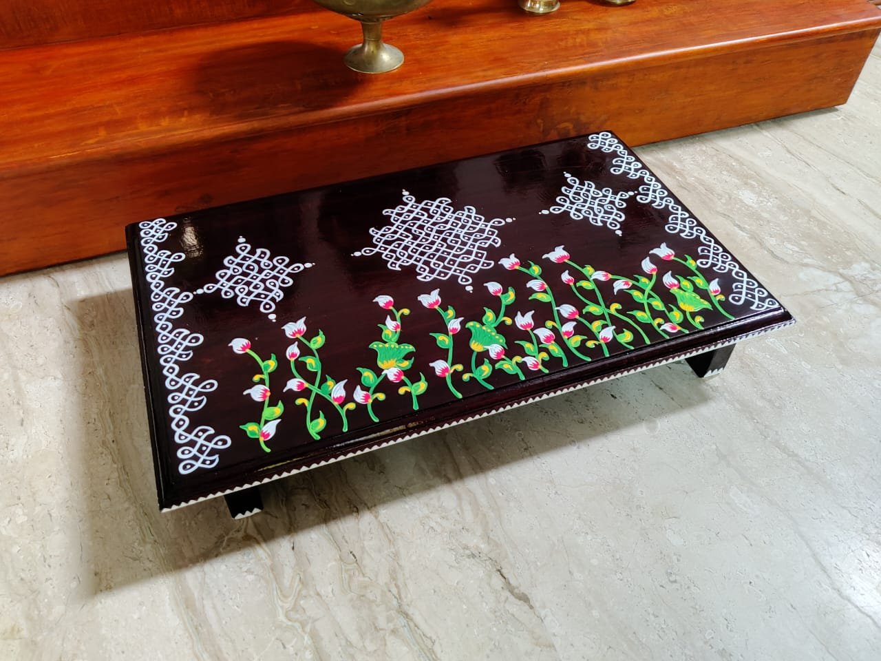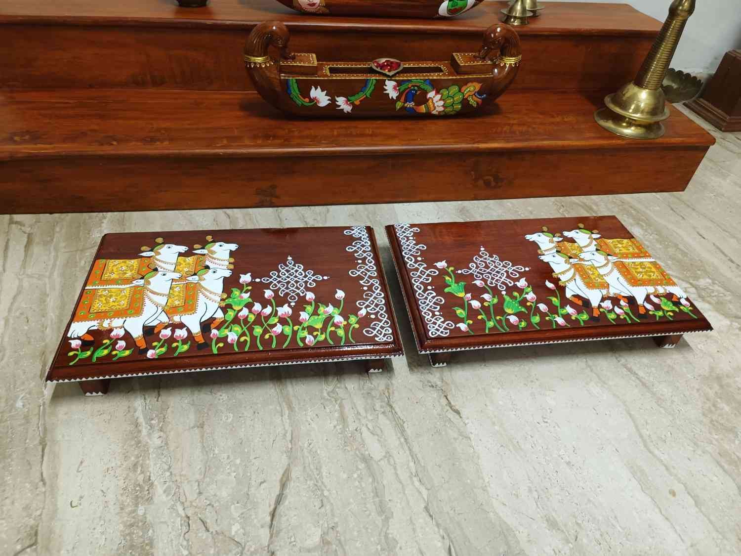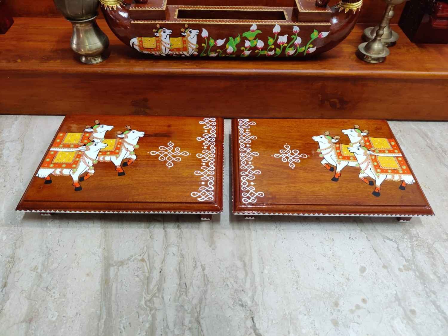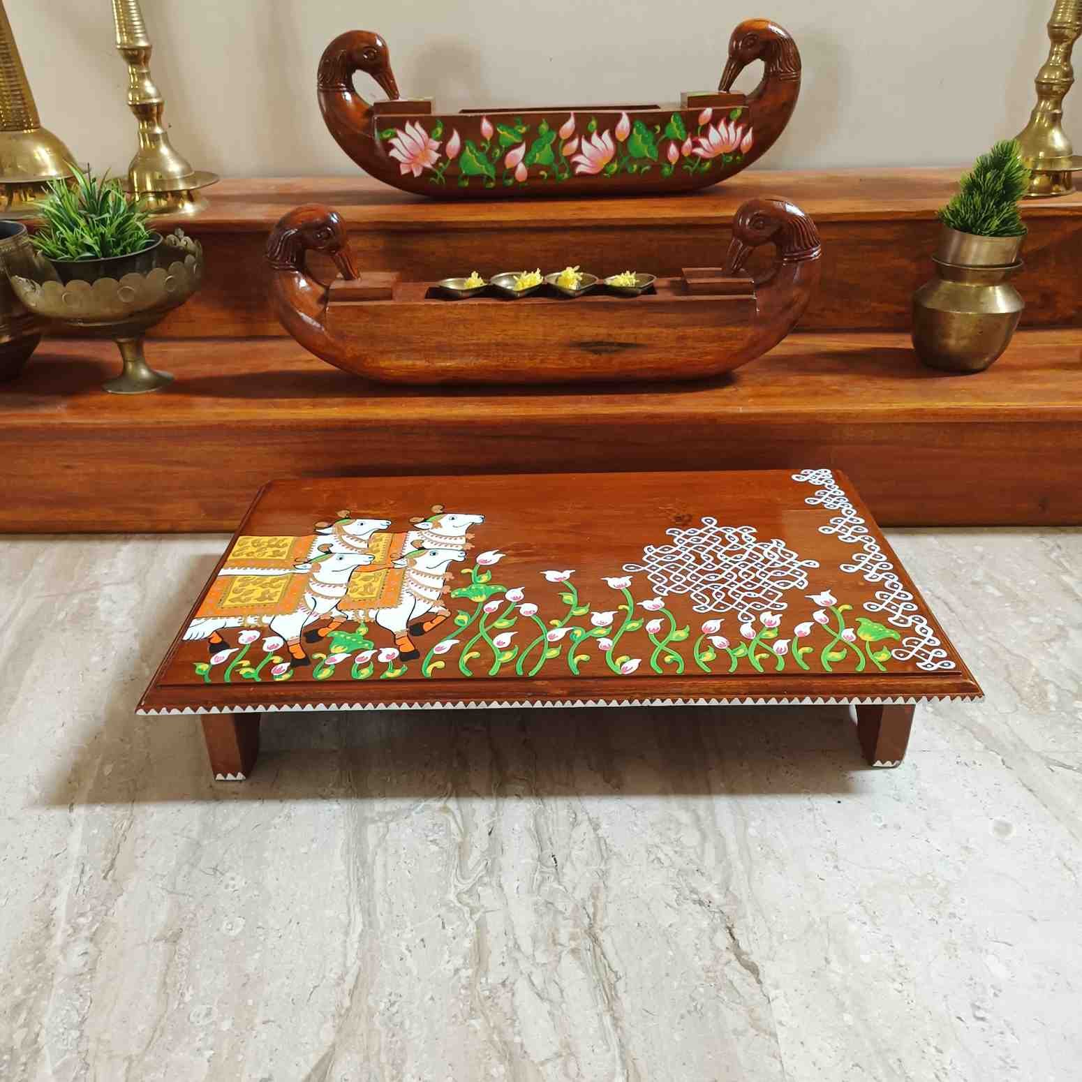 This is a traditional wooden stool or manai where an adult can be seated for any Pooja or function. It can also be used as a traditional décor, display of heavy statues and other storage purposes. Can be done in wood finish only. Paintings can be customised.