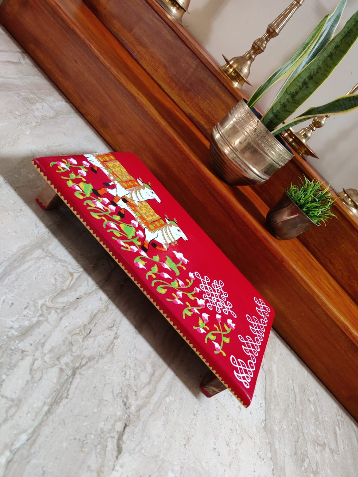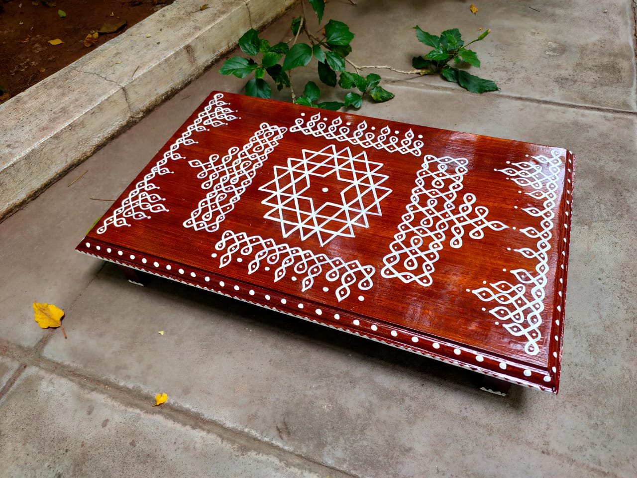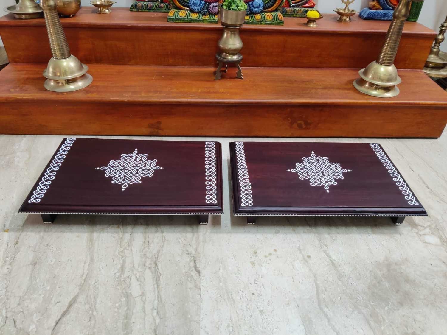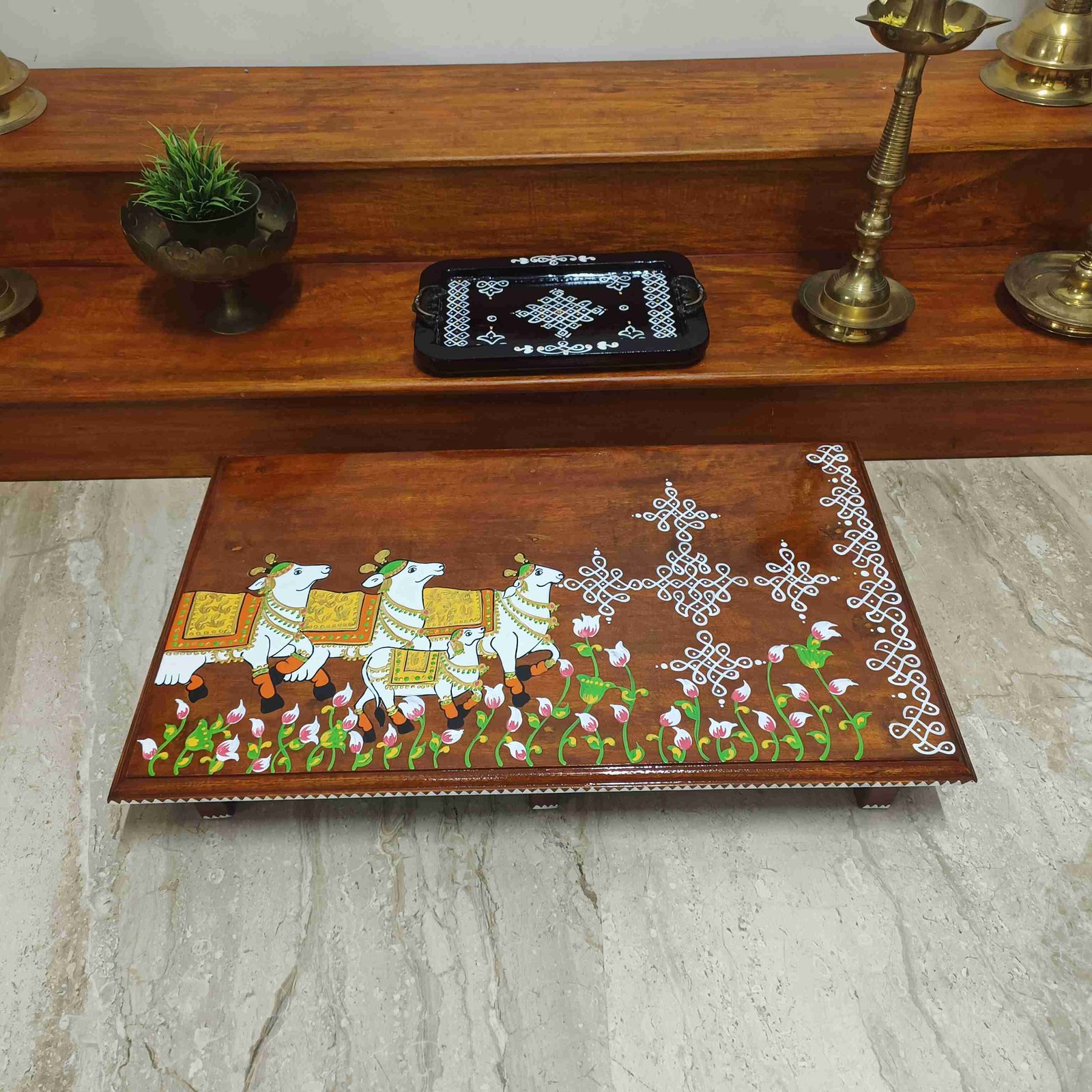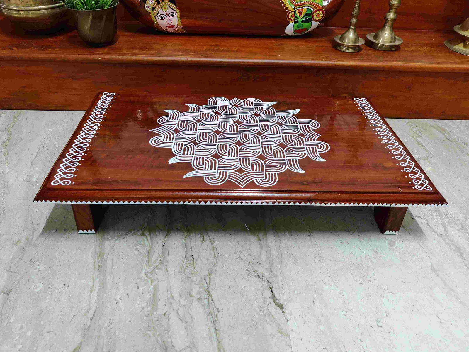 This is a traditional wooden stool or manai where an adult can be seated for any Pooja or function. It can also be used as a traditional décor, display of heavy statues and other storage purposes. Can be done in wood finish only. Paintings can be customised.