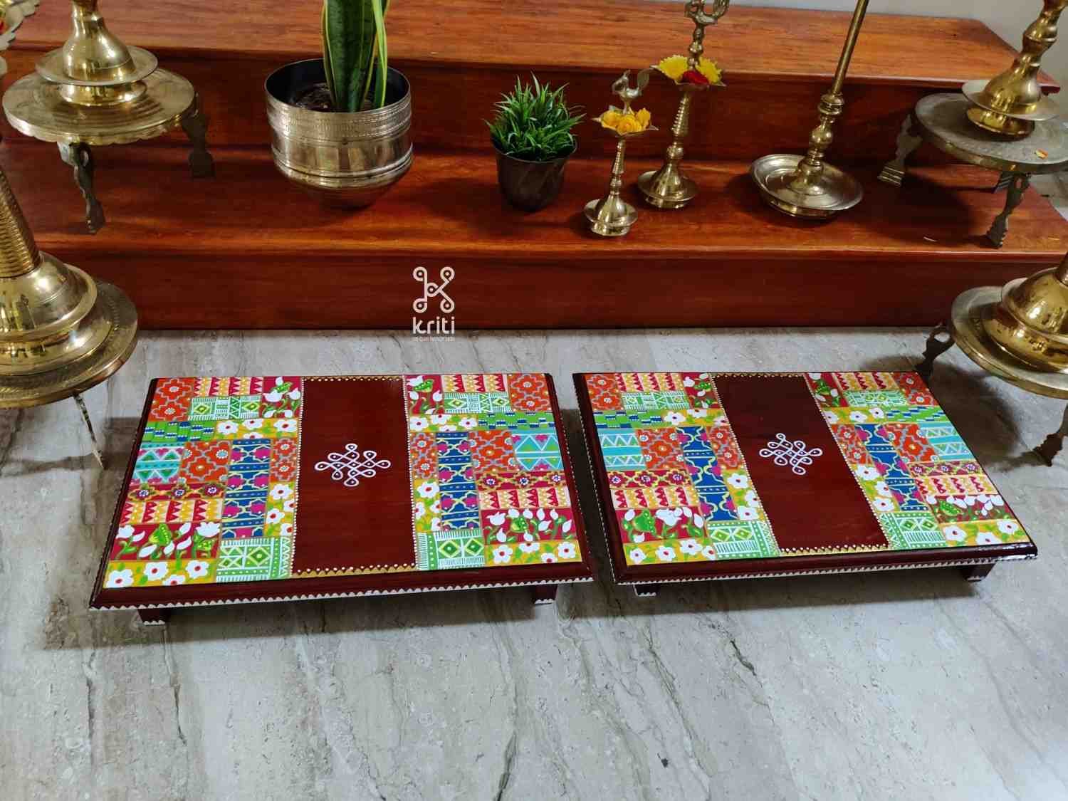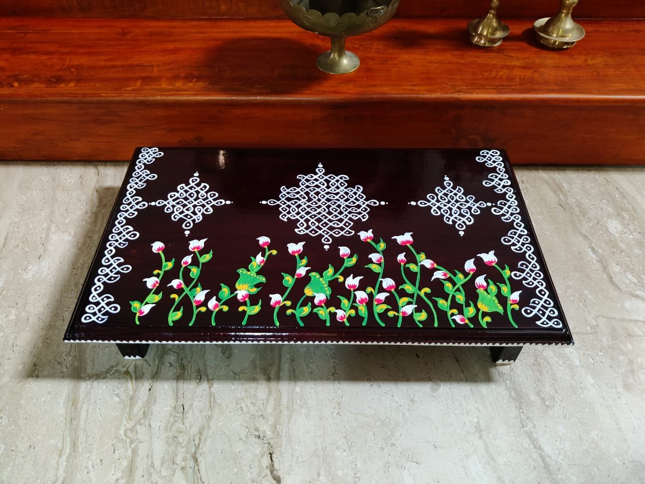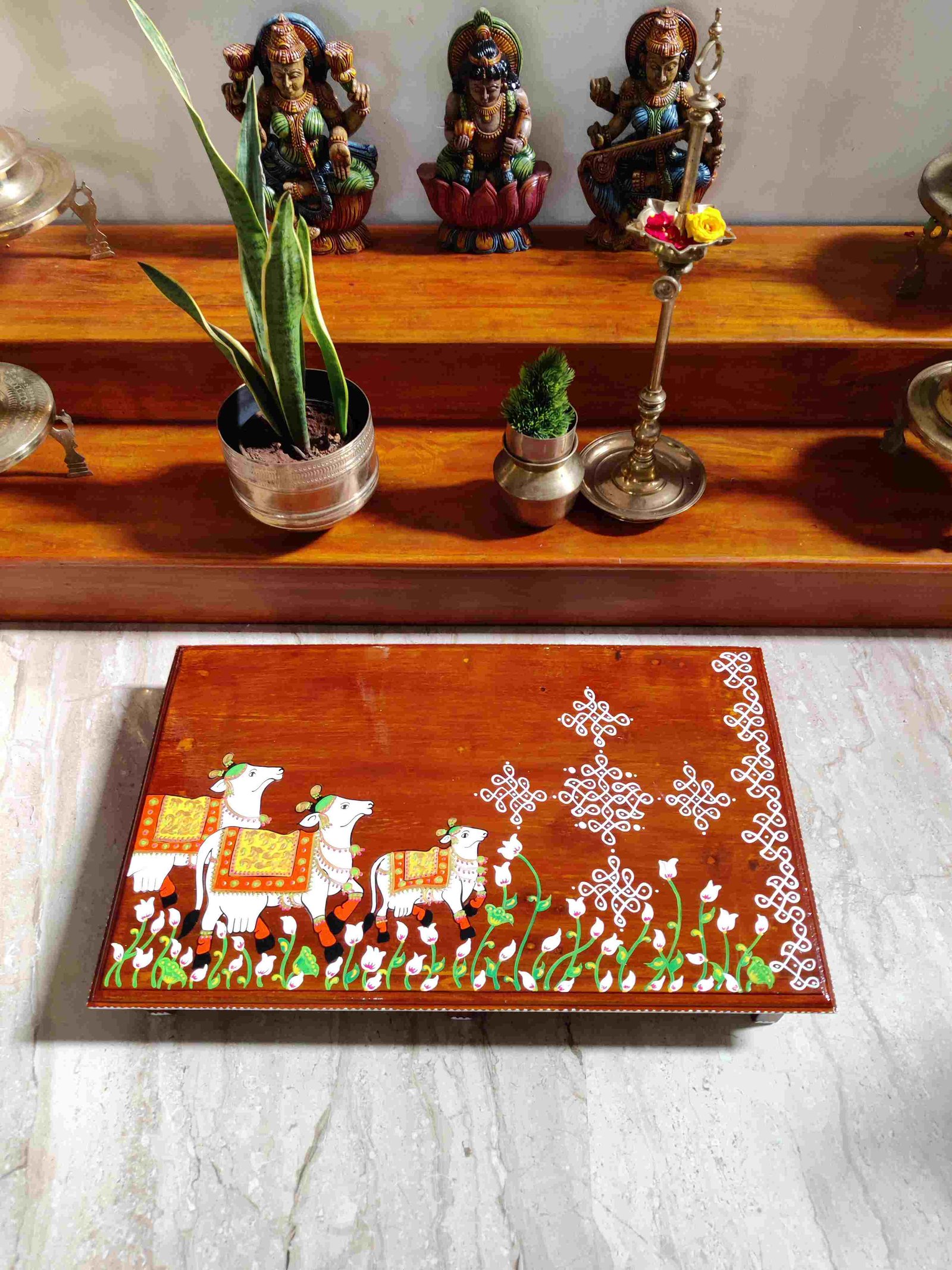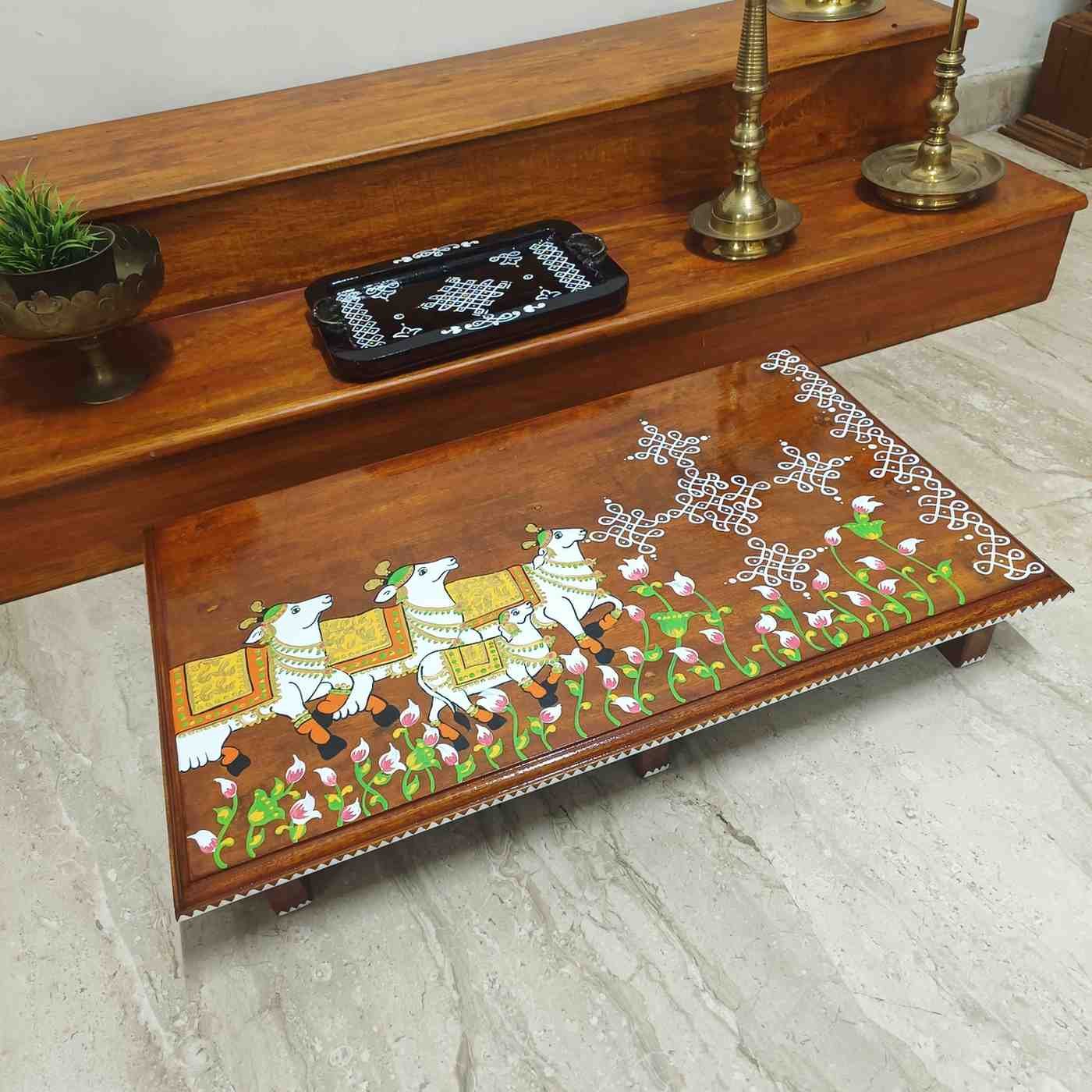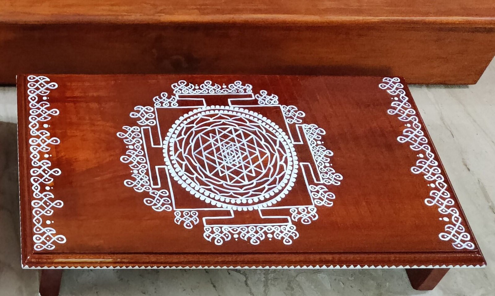 This is a traditional wooden stool or manai where an adult can be seated for any Pooja or function. It can also be used as a traditional décor, display of heavy statues and other storage purposes. Can be done in wood finish only. Paintings can be customised.