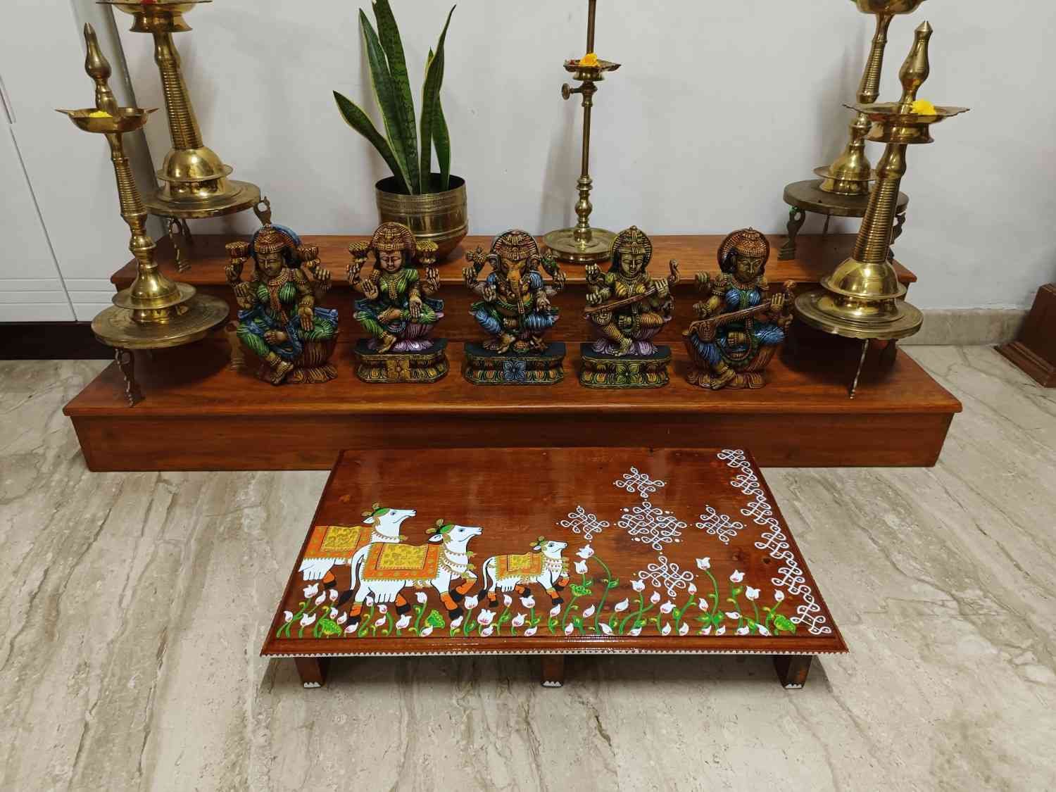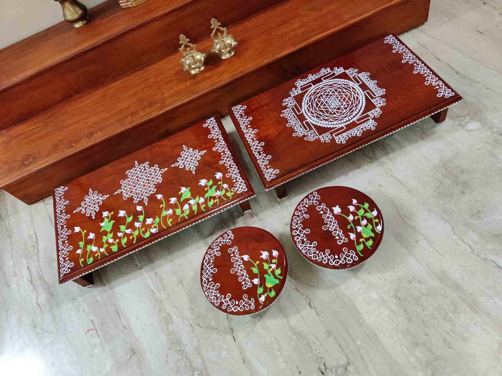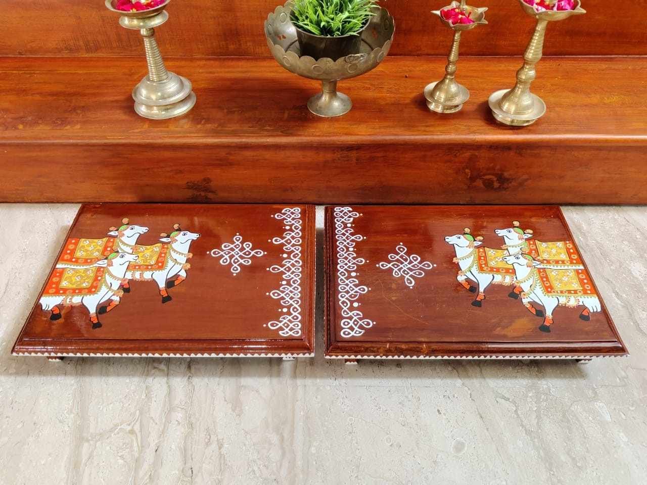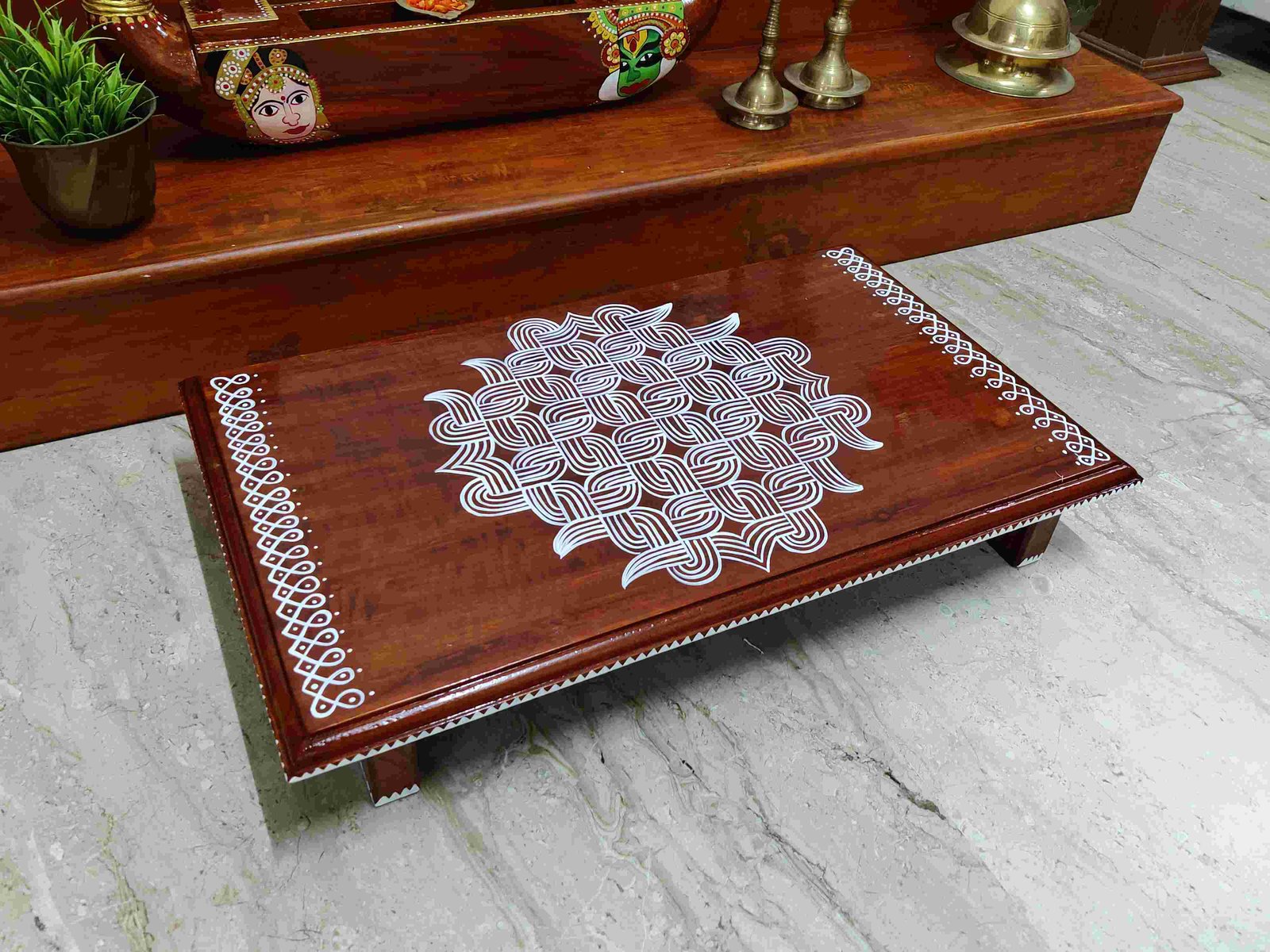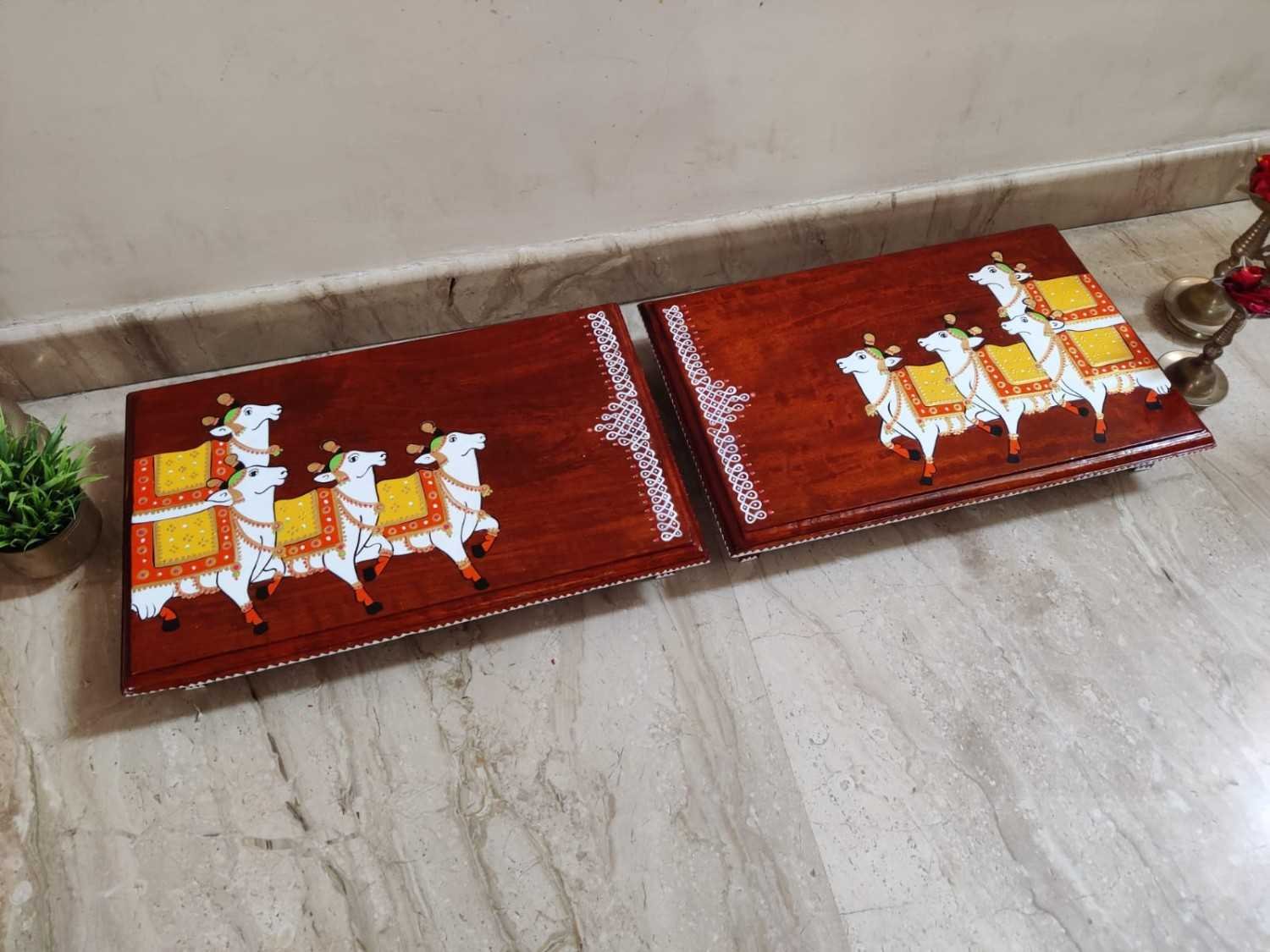 This is a traditional wooden stool or manai where an adult can be seated for any Pooja or function. It can also be used as a traditional décor, display of heavy statues and other storage purposes. Can be done in wood finish only. Paintings can be customised.