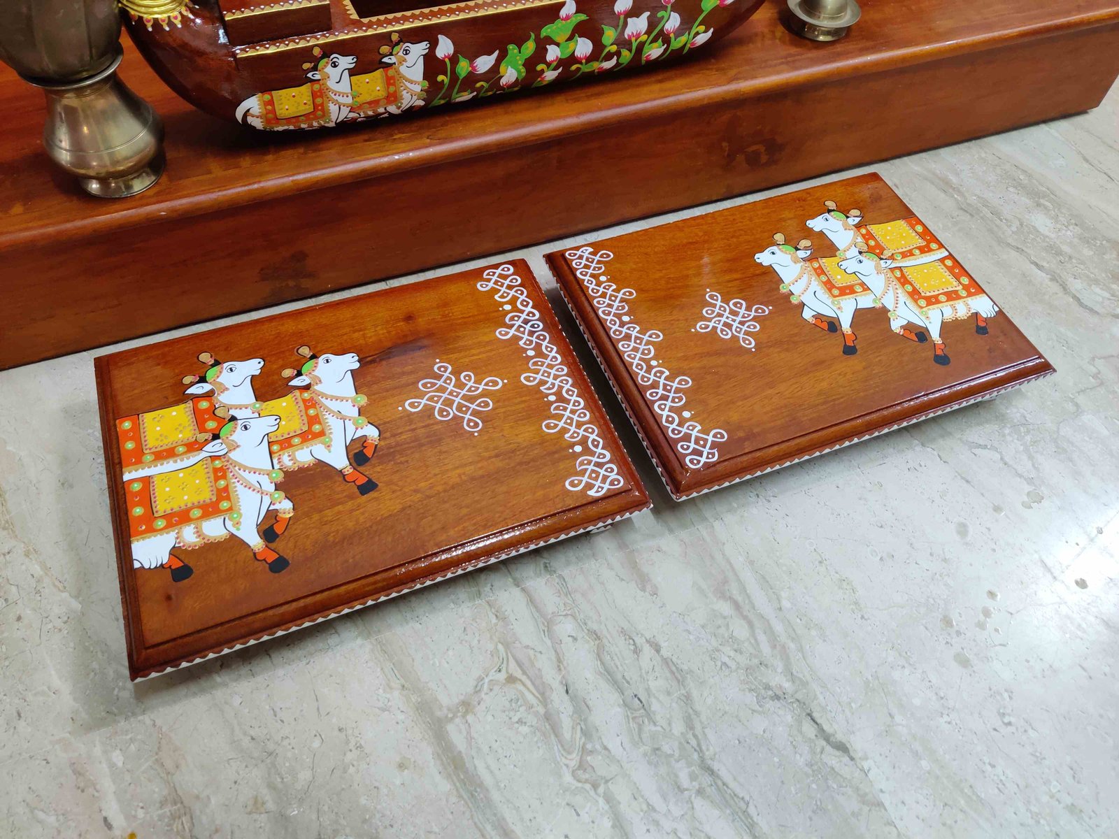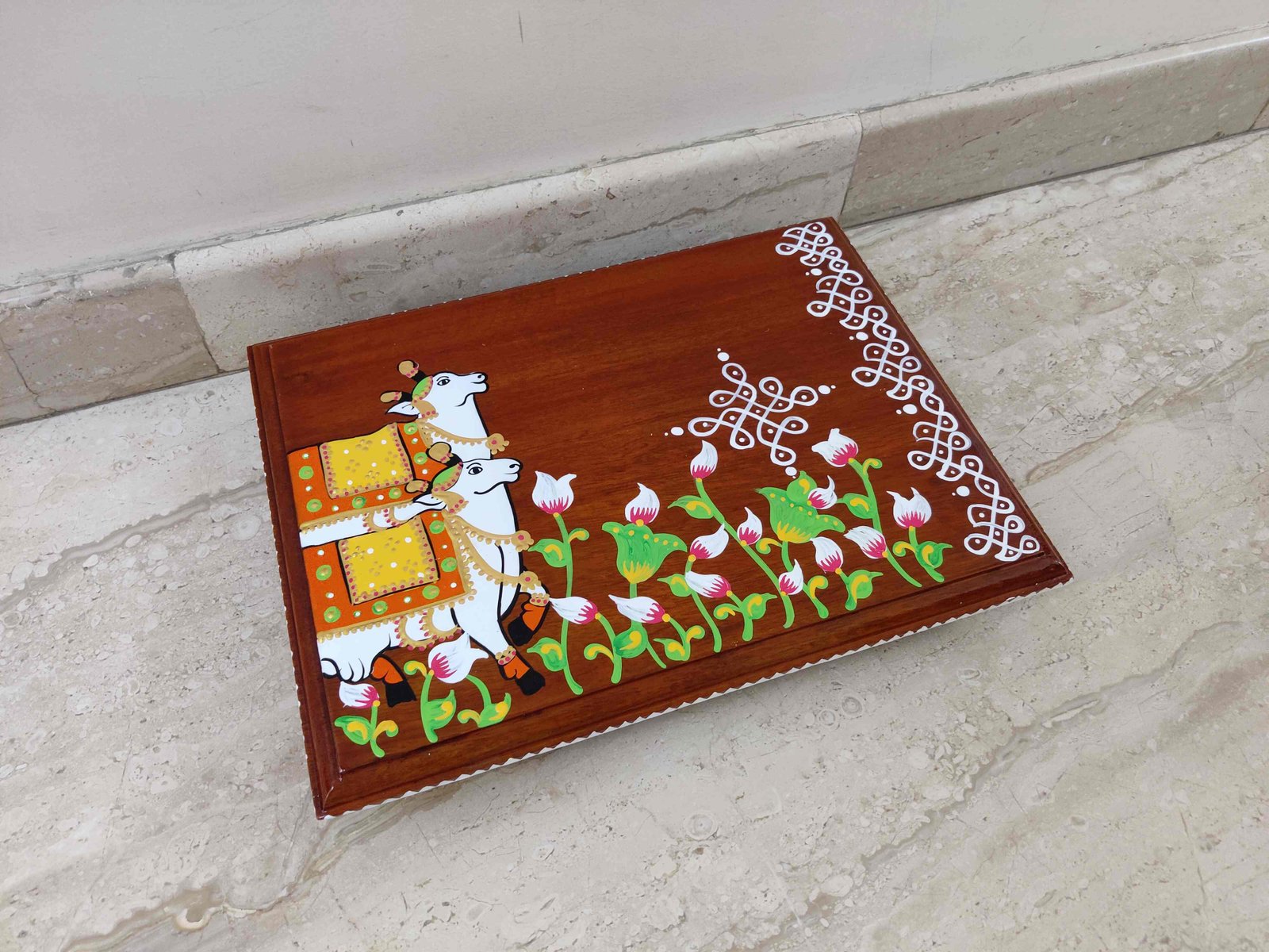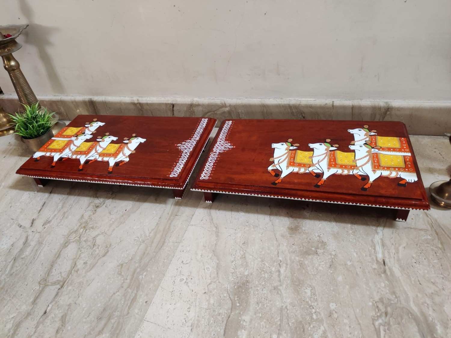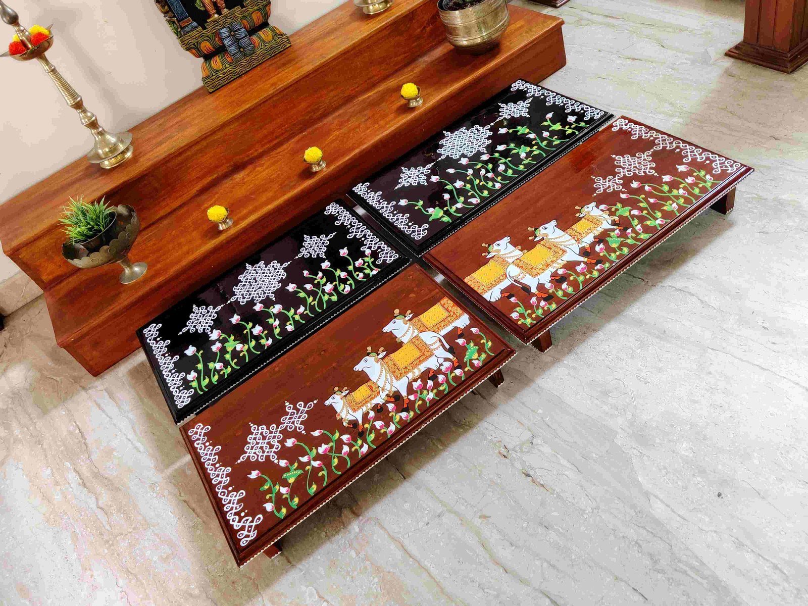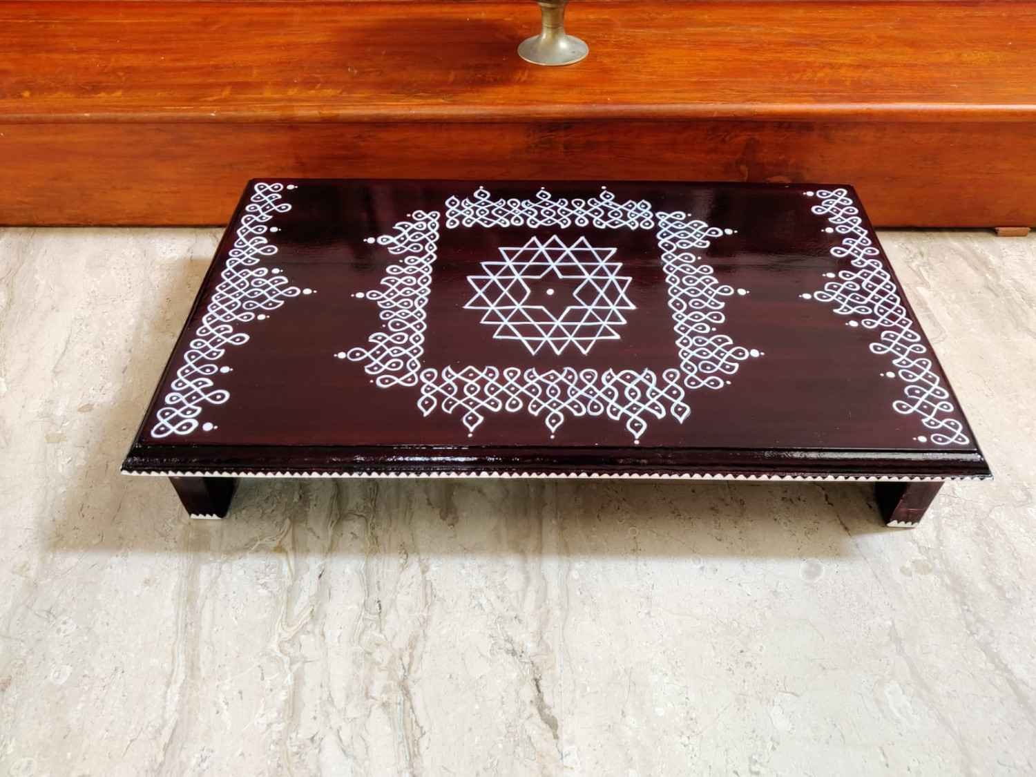 This is a traditional wooden stool or manai where an adult can be seated for any Pooja or function. It can also be used as a traditional décor, display of heavy statues and other storage purposes. Can be done in wood finish only. Paintings can be customised.