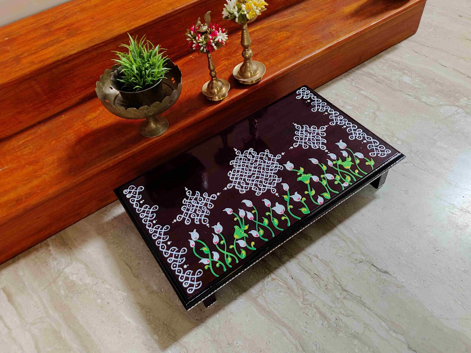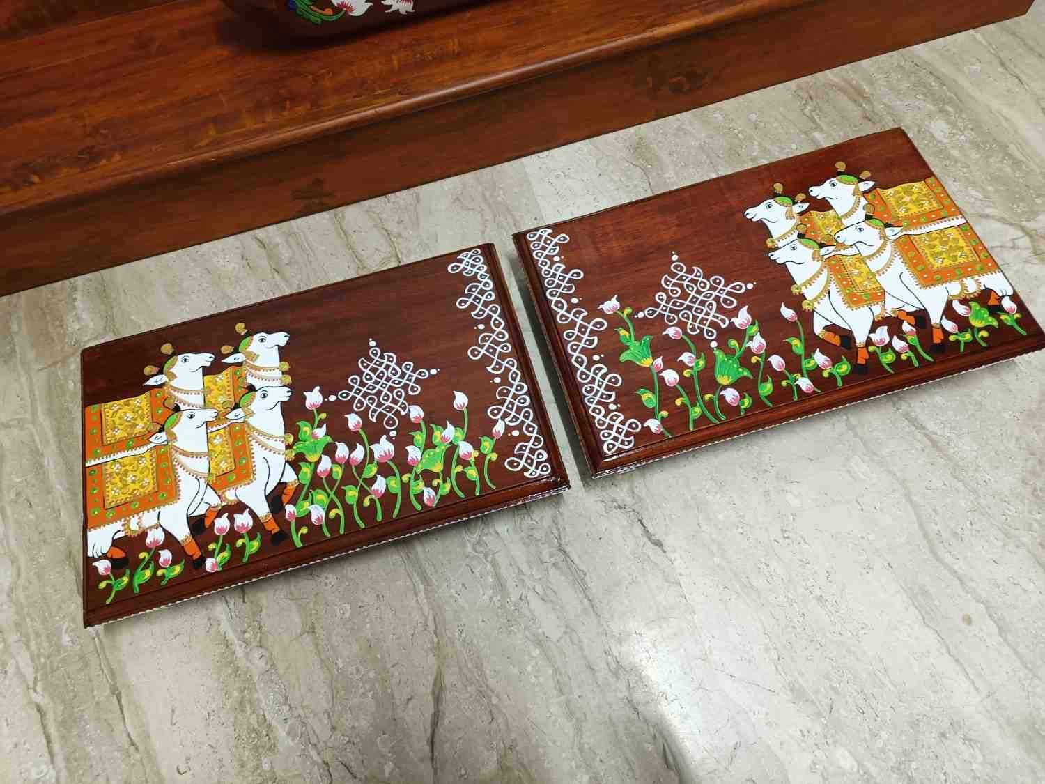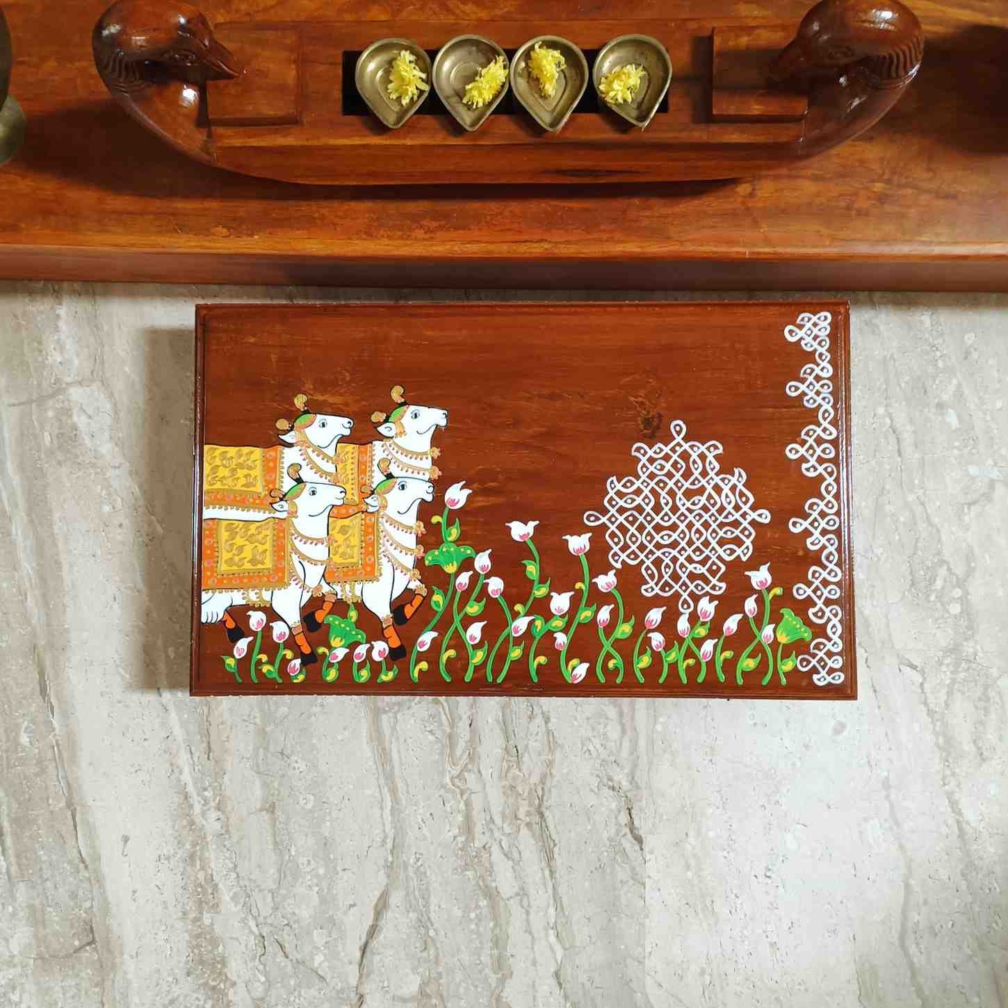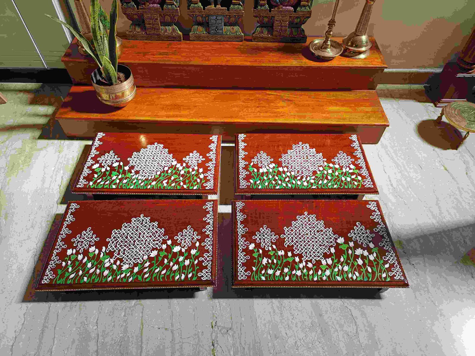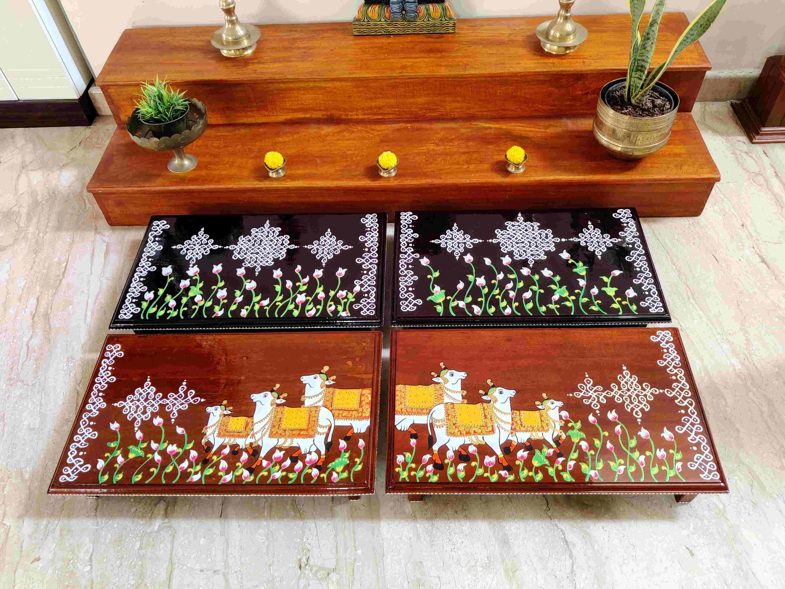 This is a traditional wooden stool or manai where an adult can be seated for any Pooja or function. It can also be used as a traditional décor, display of heavy statues and other storage purposes. Can be done in wood finish only. Paintings can be customised.