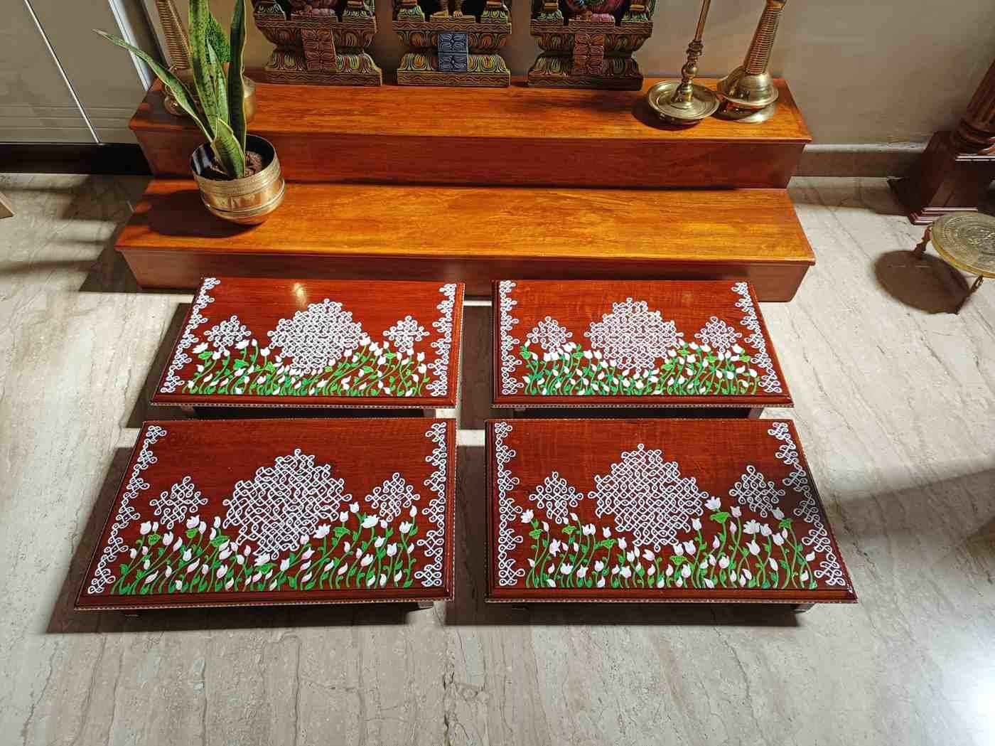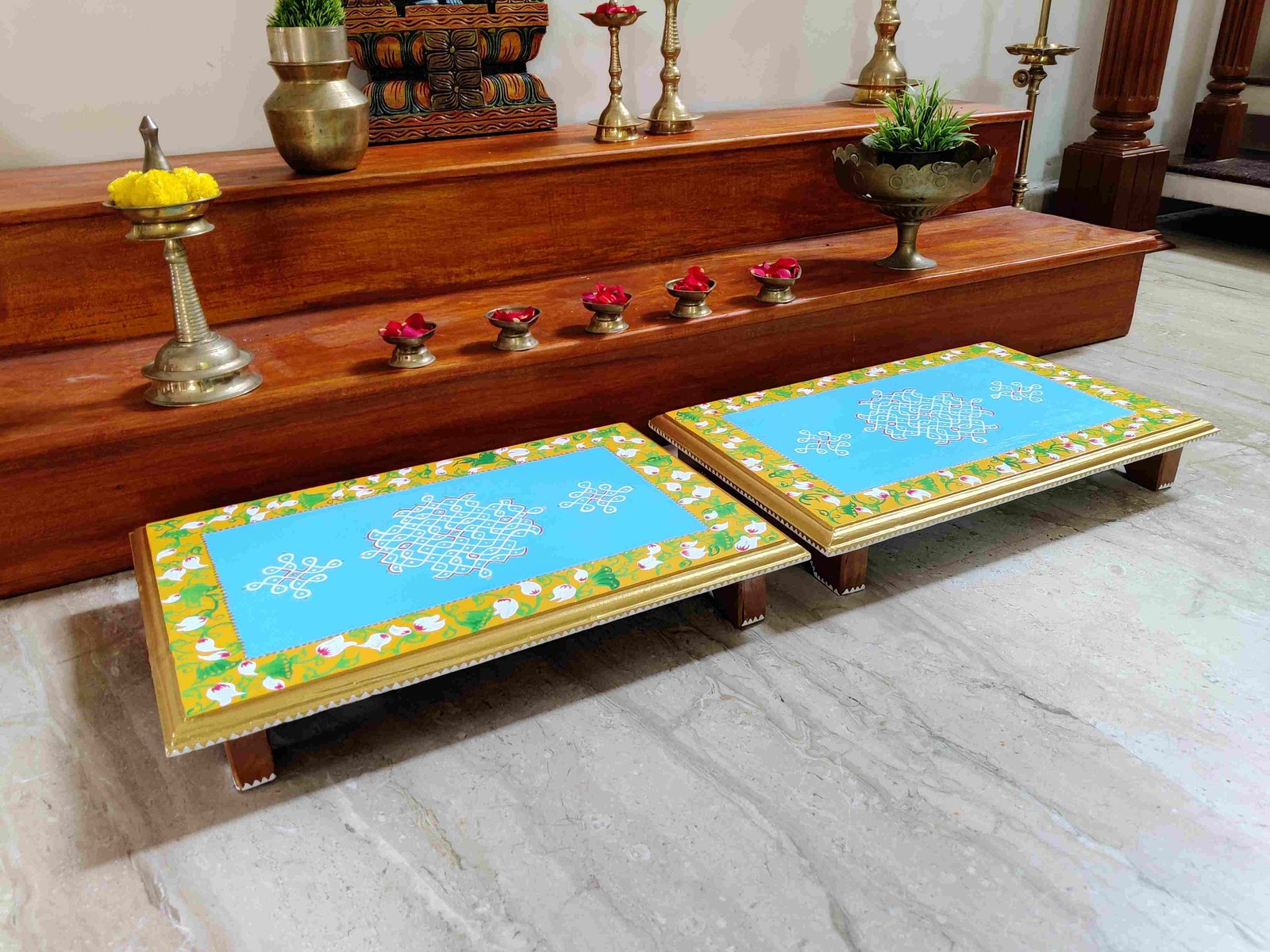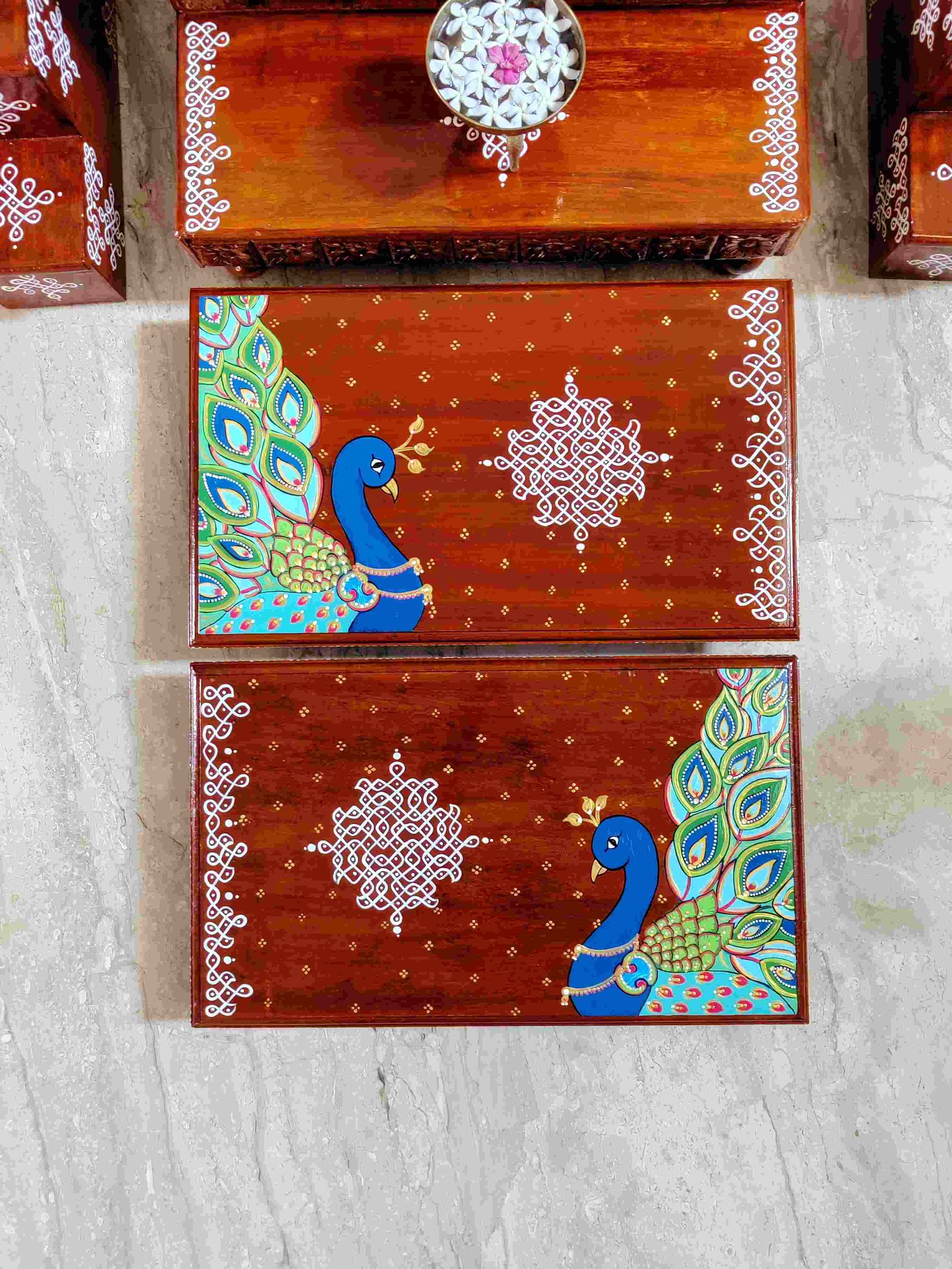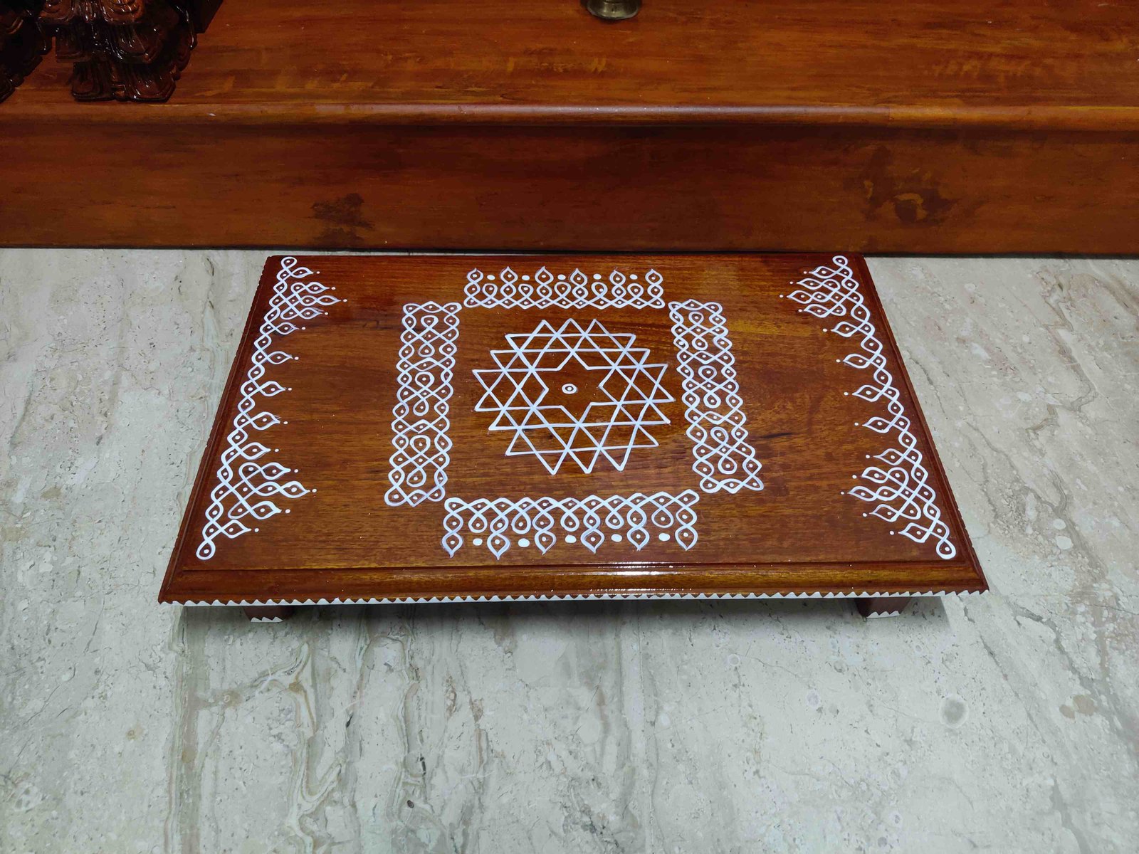 This is a traditional wooden stool or manai where an adult can be seated for any Pooja or function. It can also be used as a traditional décor, display of heavy statues and other storage purposes. Can be done in wood finish only. Paintings can be customised.