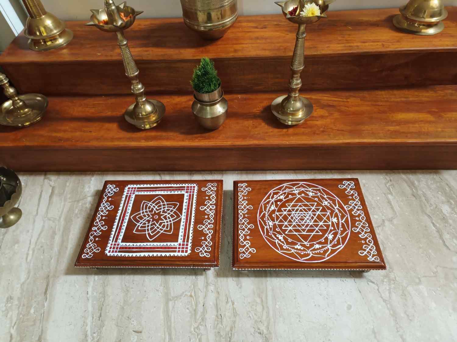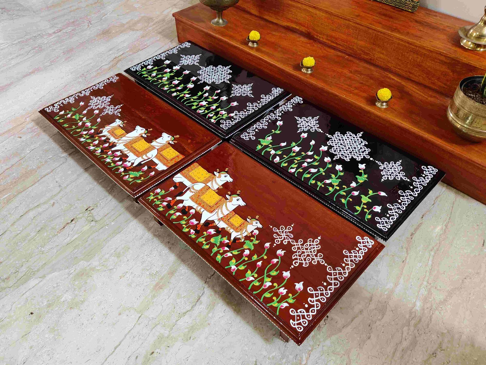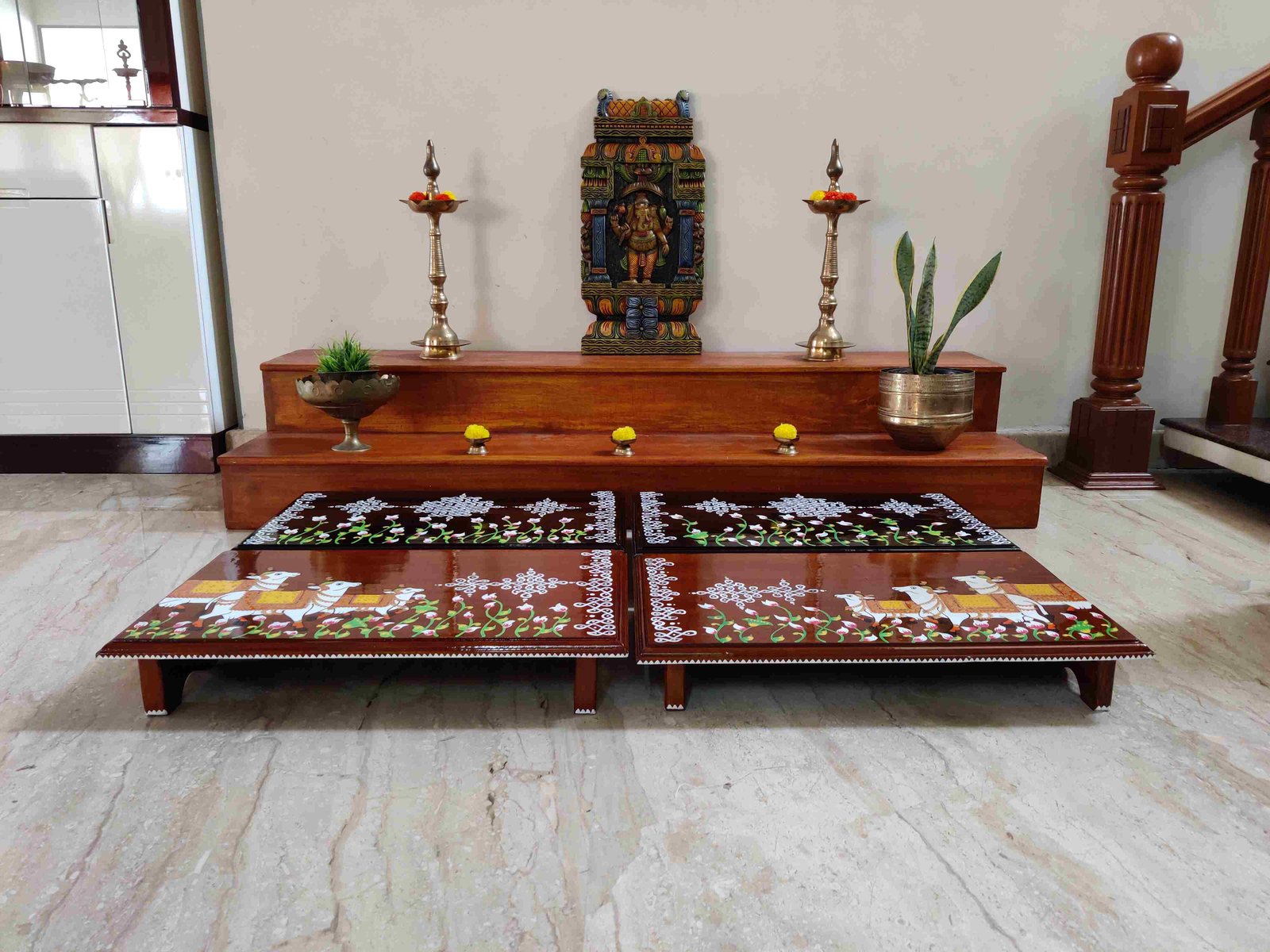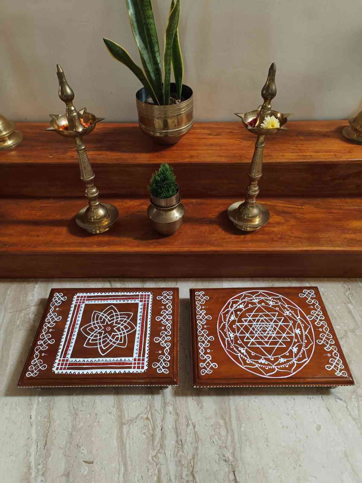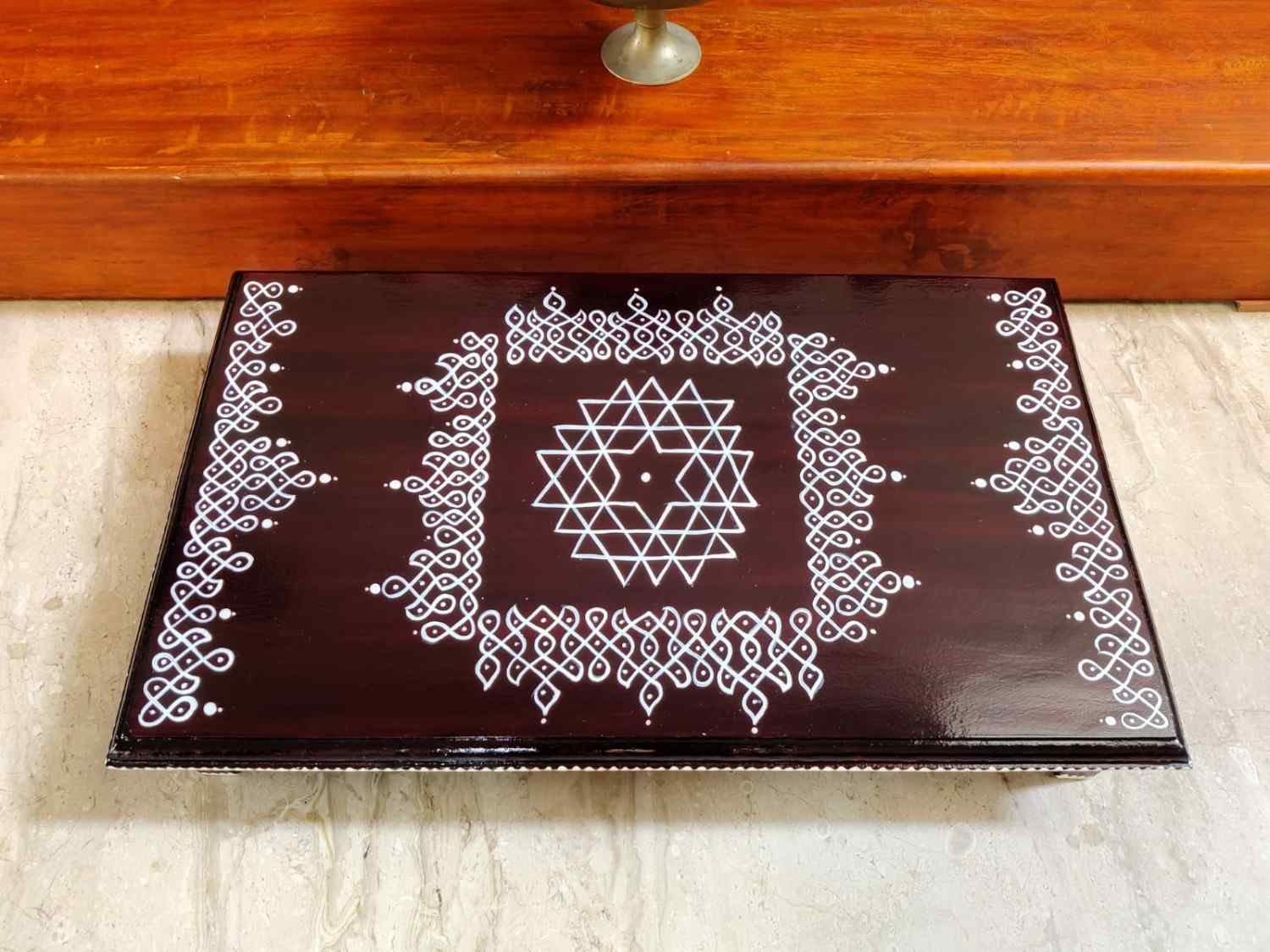 This is a traditional wooden stool or manai where an adult can be seated for any Pooja or function. It can also be used as a traditional décor, display of heavy statues and other storage purposes. Can be done in wood finish only. Paintings can be customised.