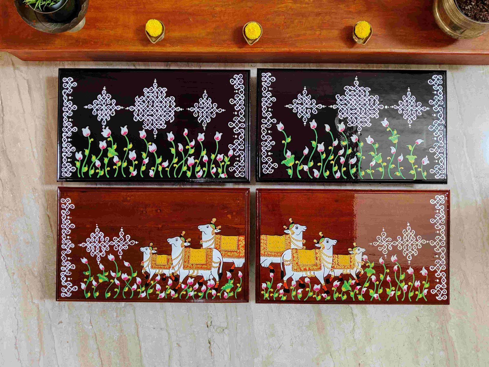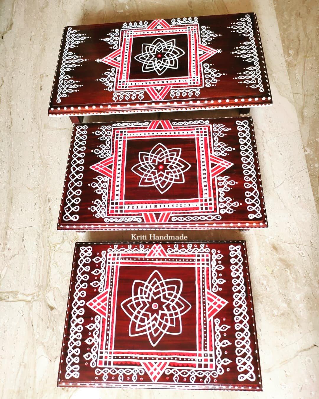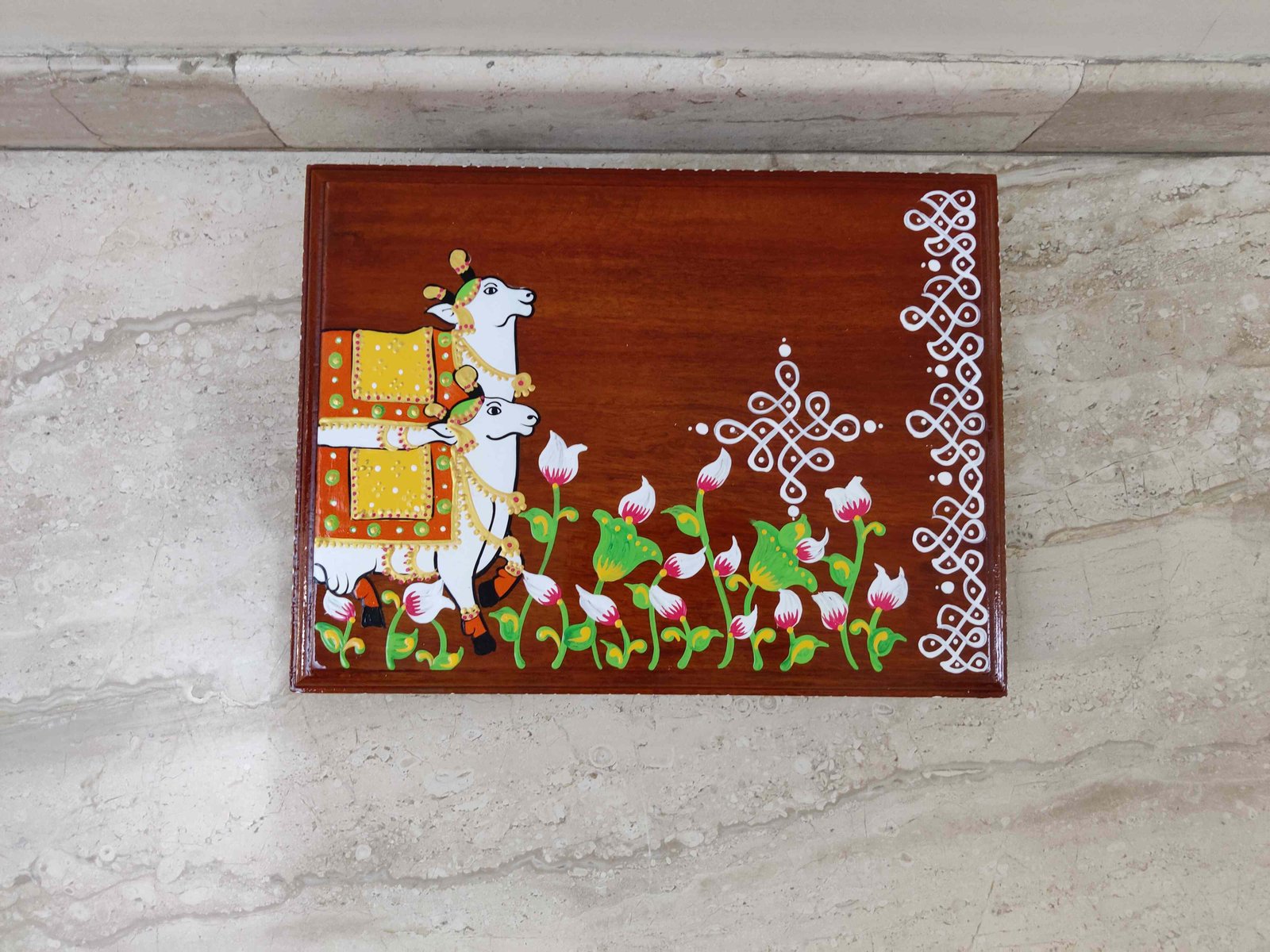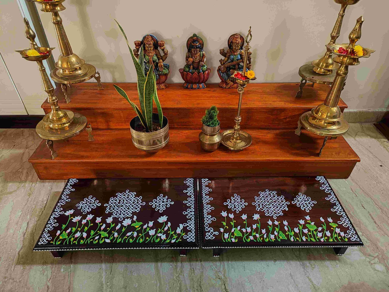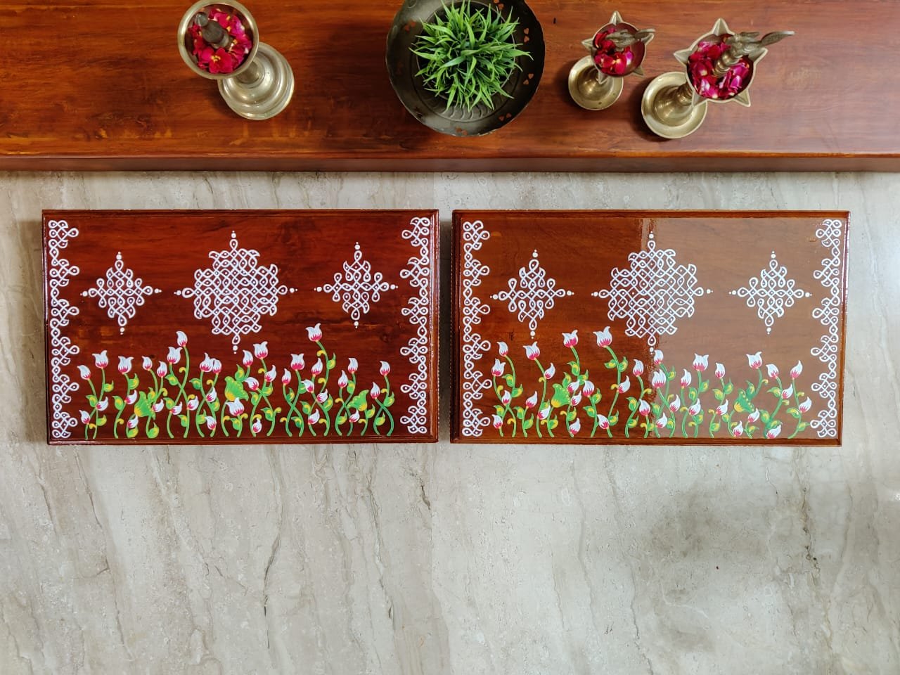 This is a traditional wooden stool or manai where an adult can be seated for any Pooja or function. It can also be used as a traditional décor, display of heavy statues and other storage purposes. Can be done in wood finish only. Paintings can be customised.