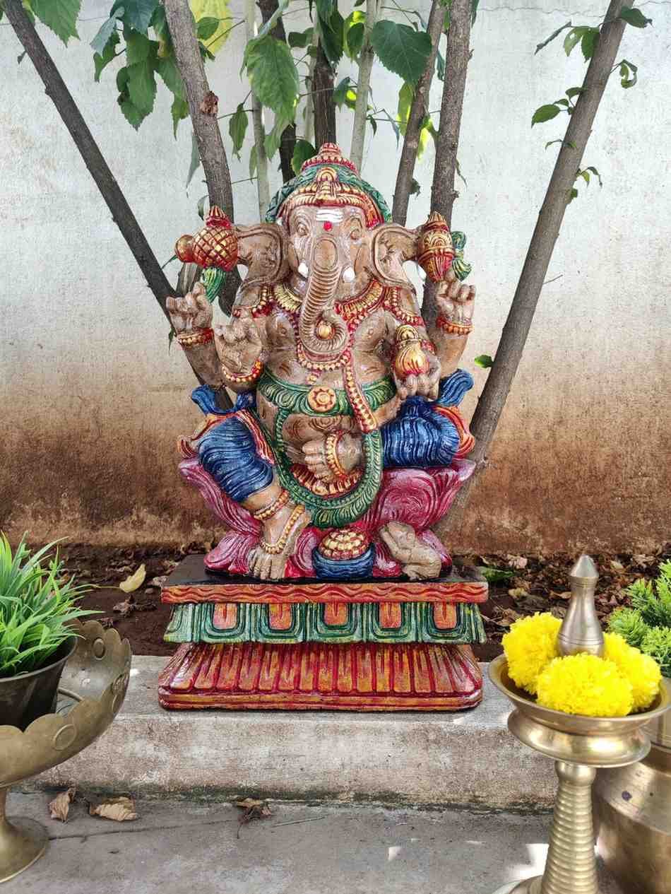 Hand Carved and Handpainted Wood Statues. Each Statue is hand carved to its grace and hand painted by us. This adds up beauty to your space with a traditional touch.The Size and Paintings can be customized as per your requirements.