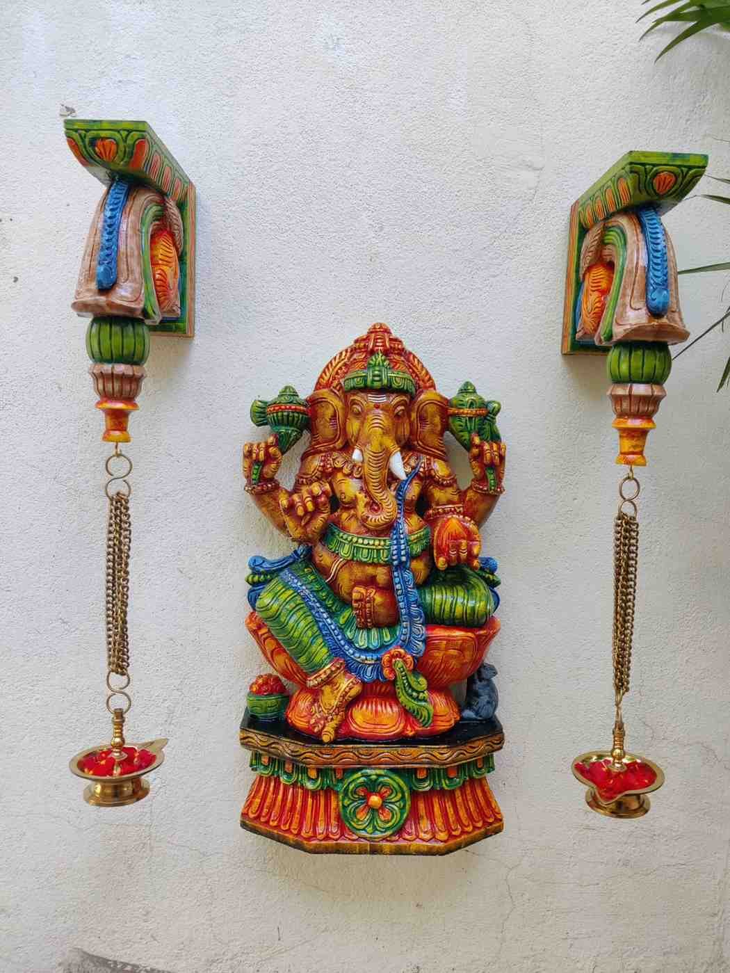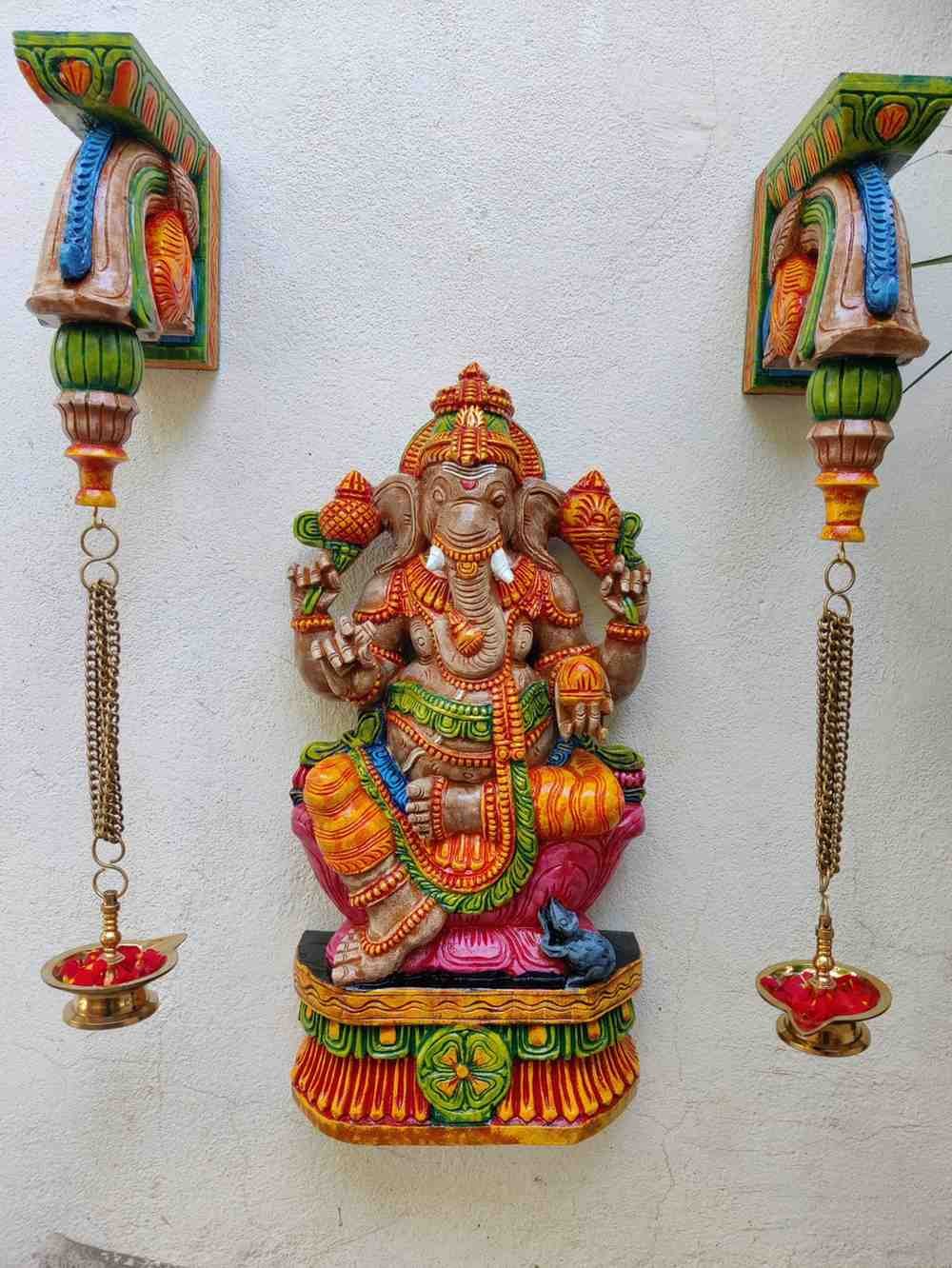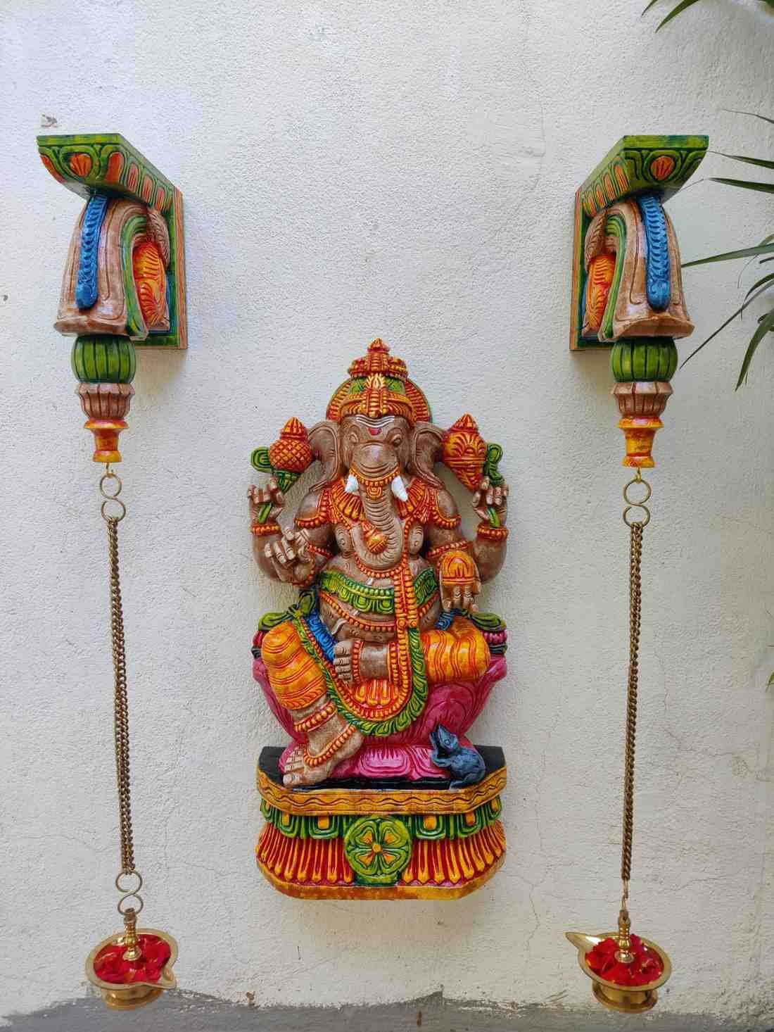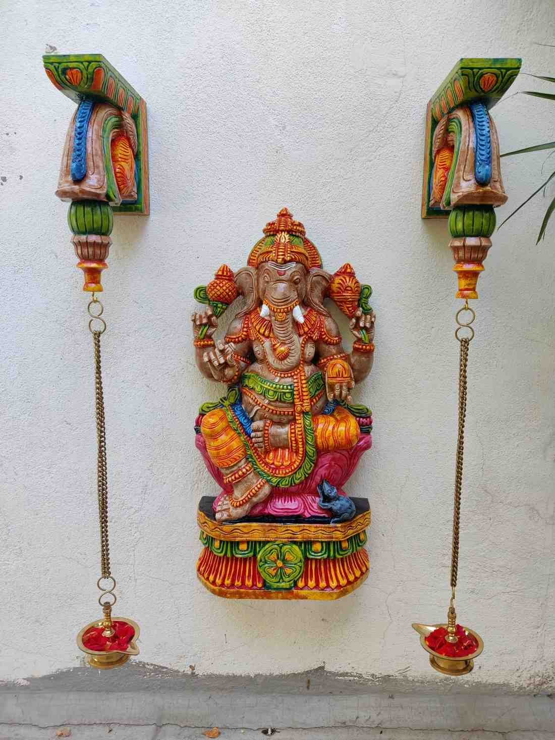Lord Ganesha Sitting On Lotus With Chettinadu Small Corbels