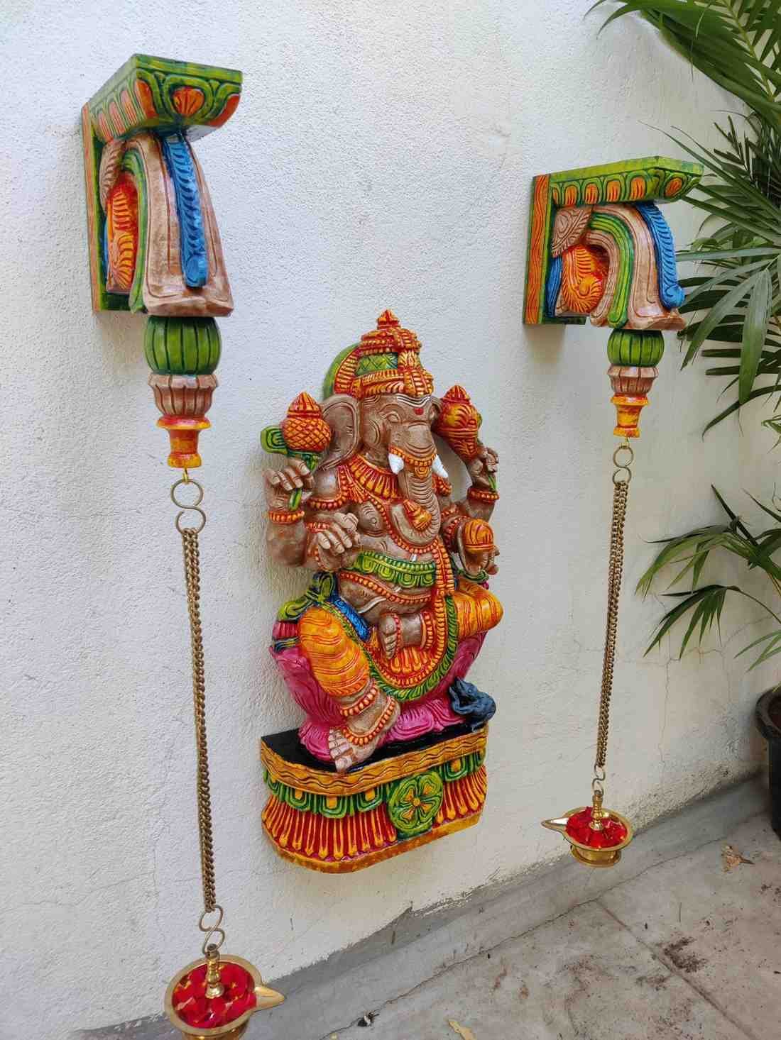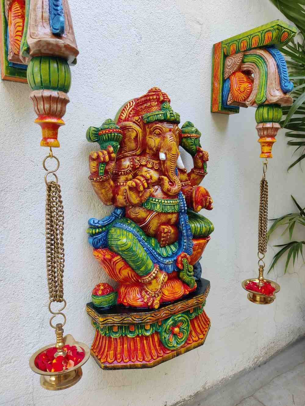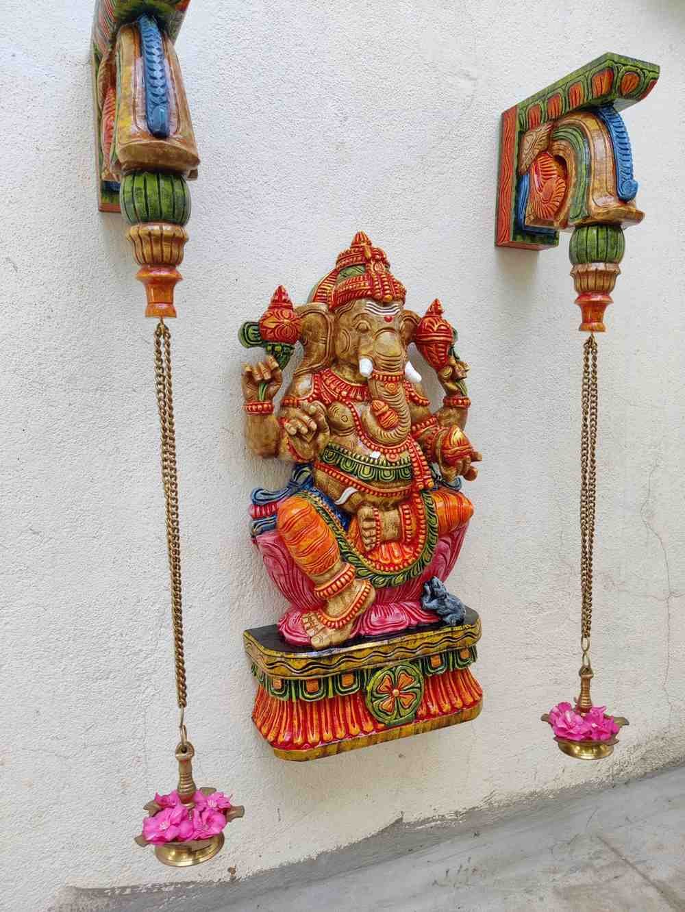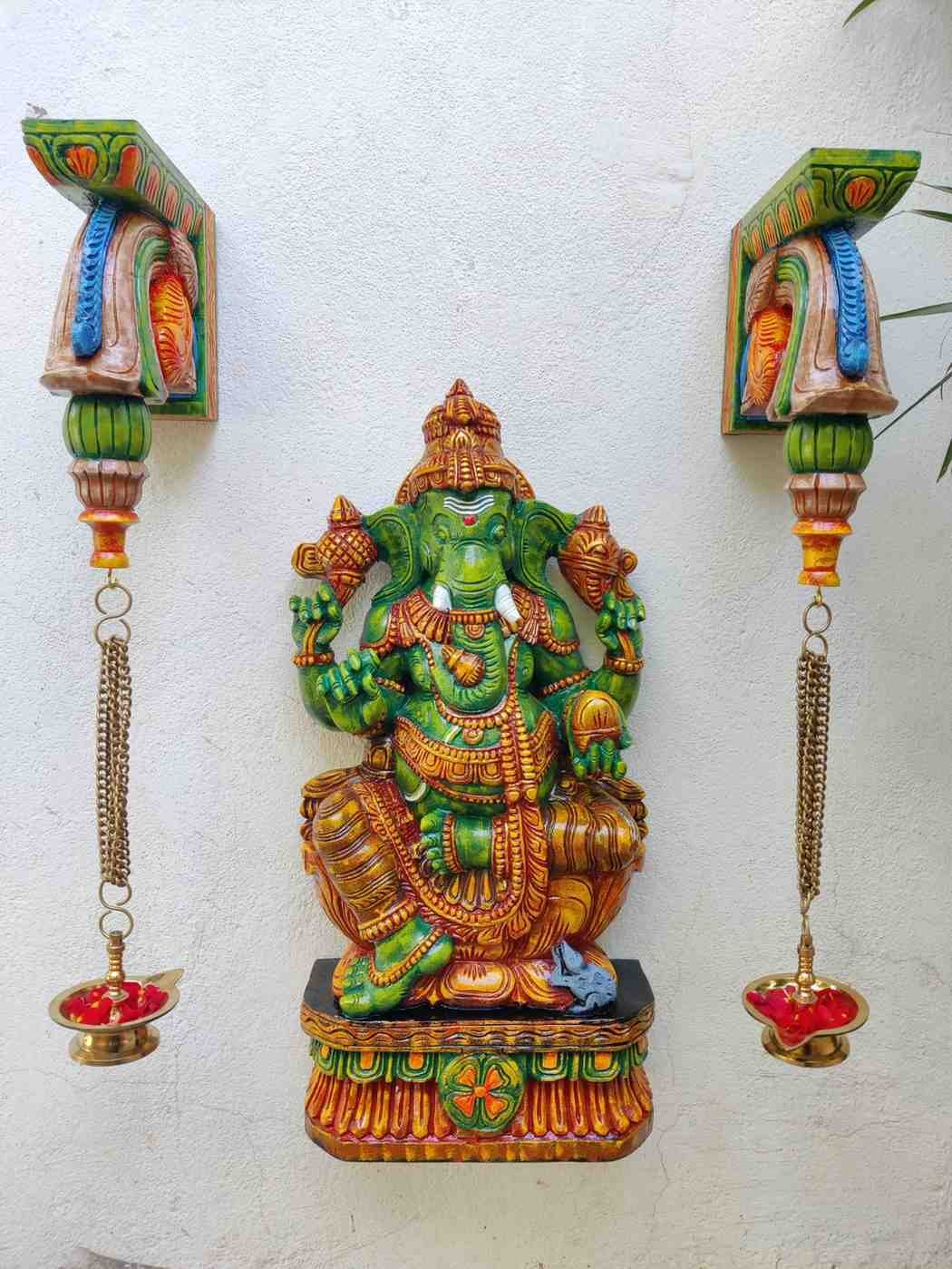 Lord Ganesha Sitting On Lotus With Chettinadu Small Corbels