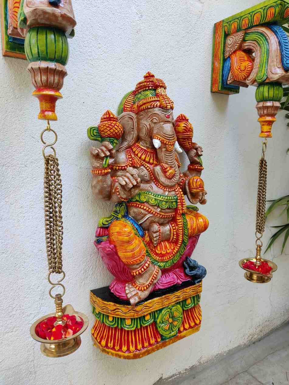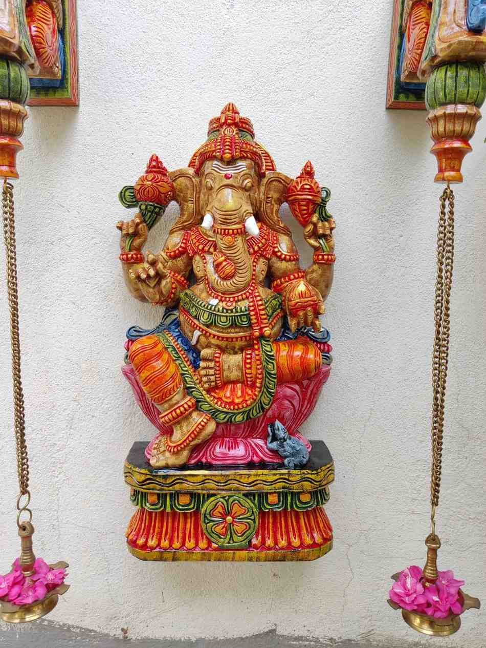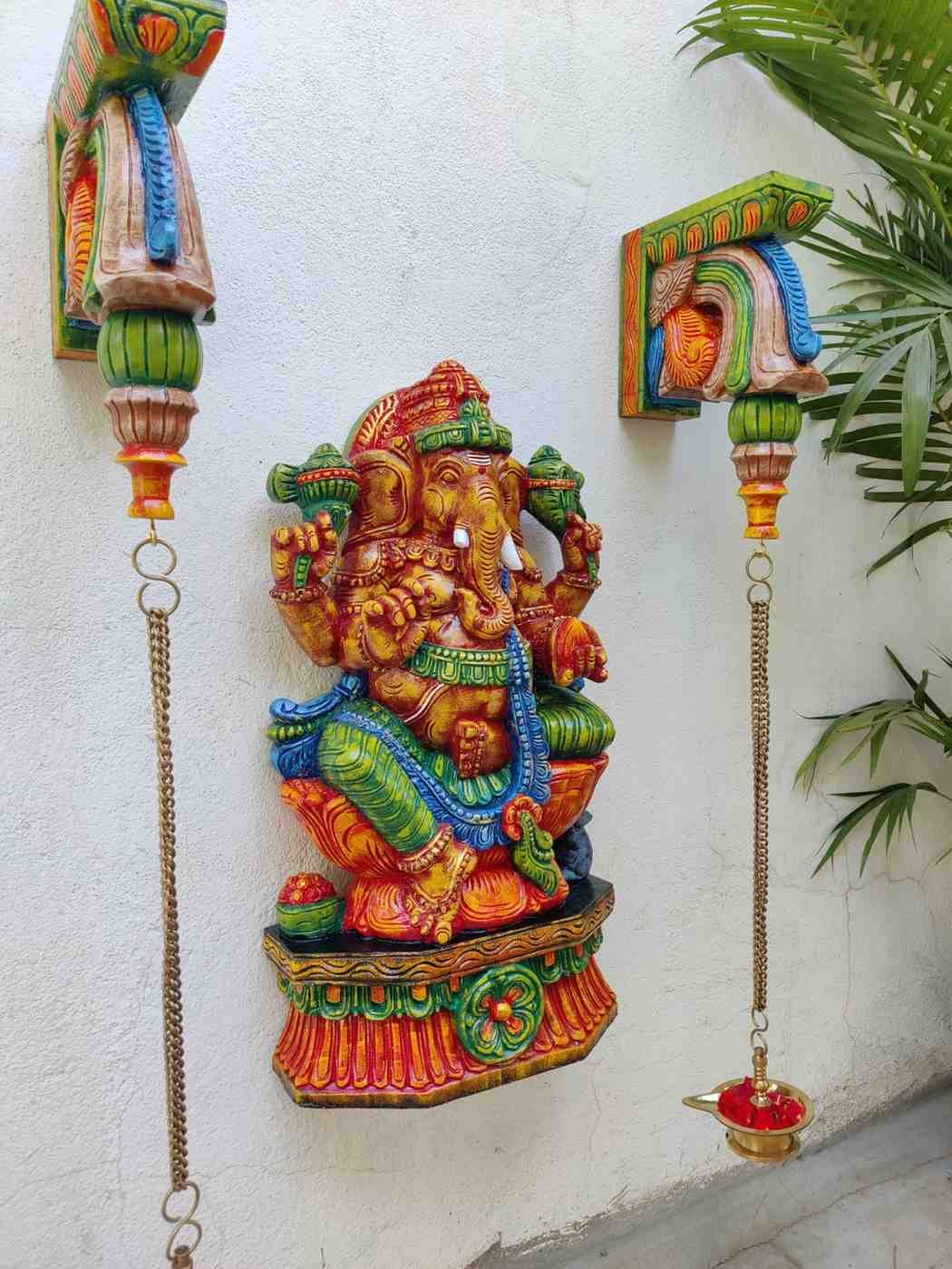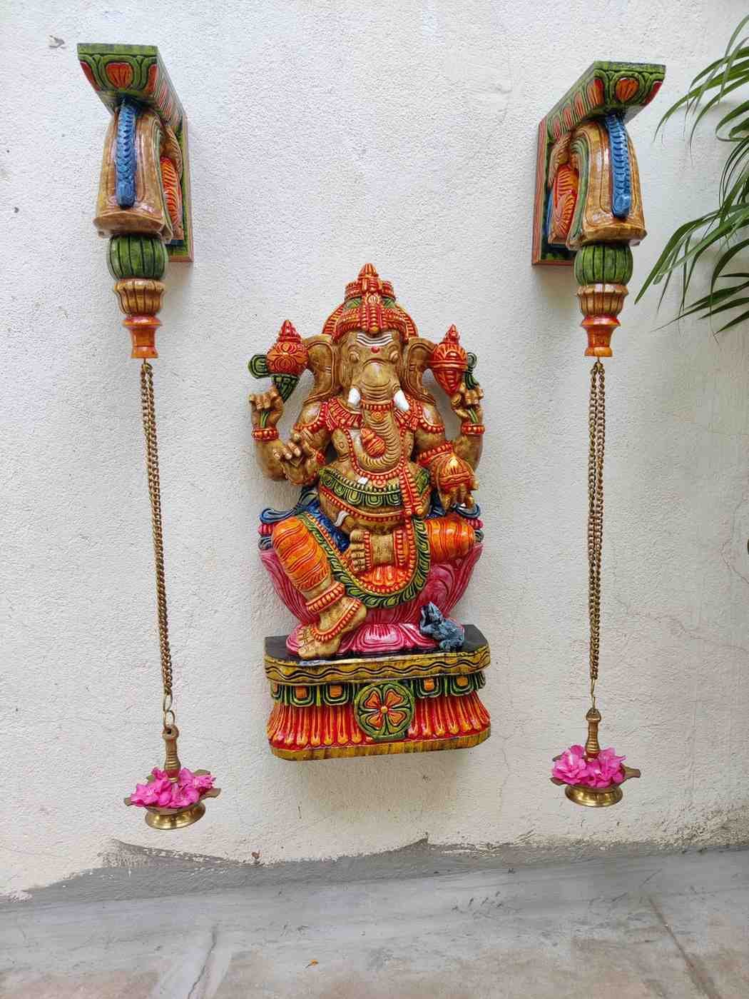 Lord Ganesha Sitting On Lotus With Chettinadu Small Corbels