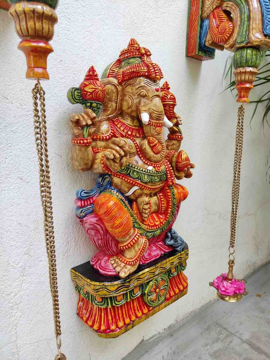 Hand Carved and Handpainted Wood Statues. Each Statue is hand carved to its grace and hand painted by us. This adds up beauty to your space with a traditional touch.The Size and Paintings can be customized as per your requirements.