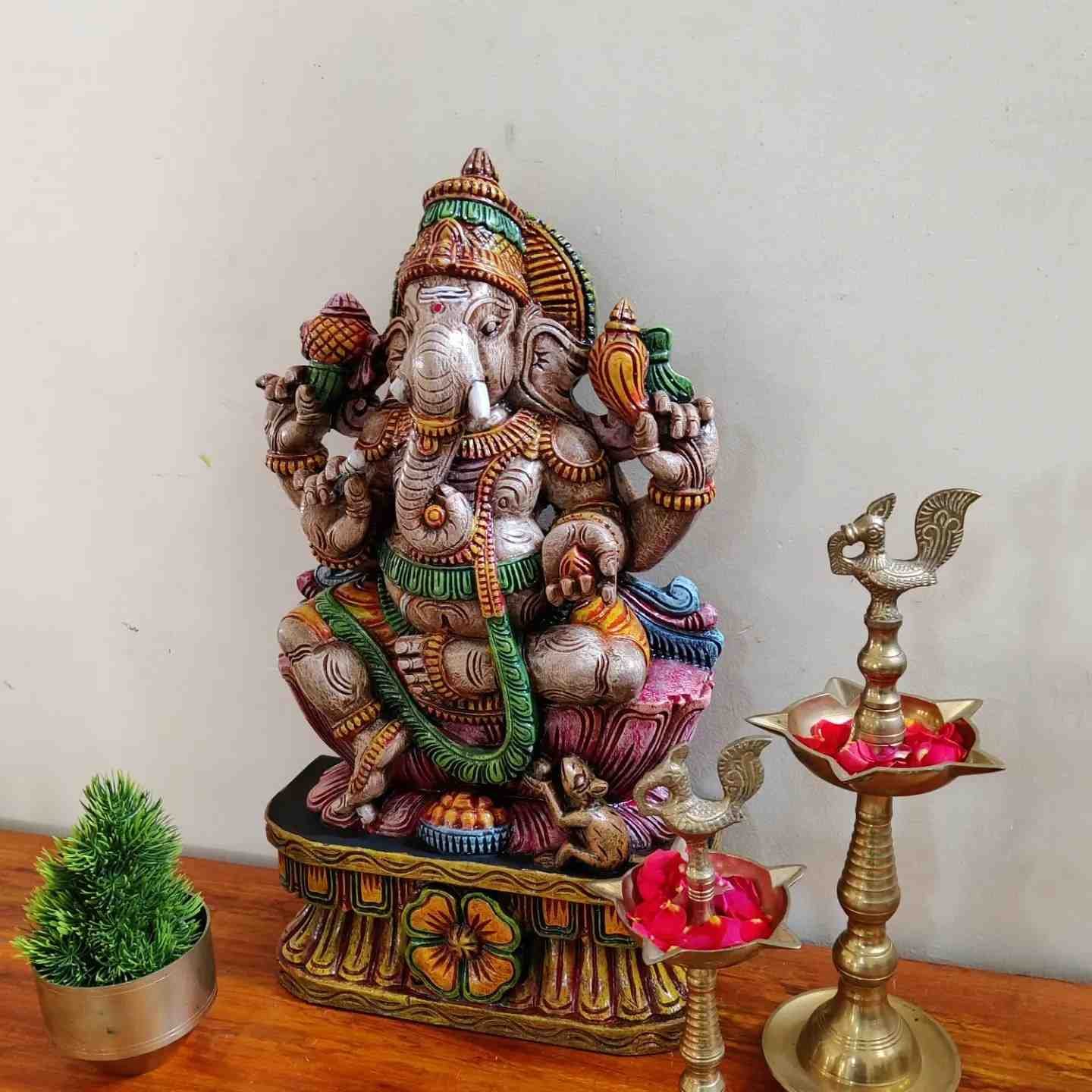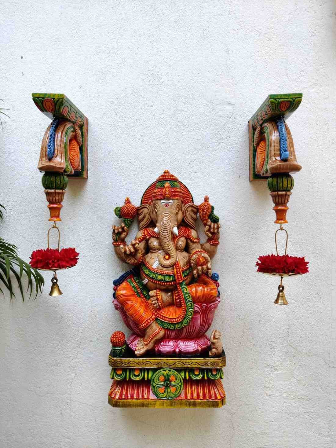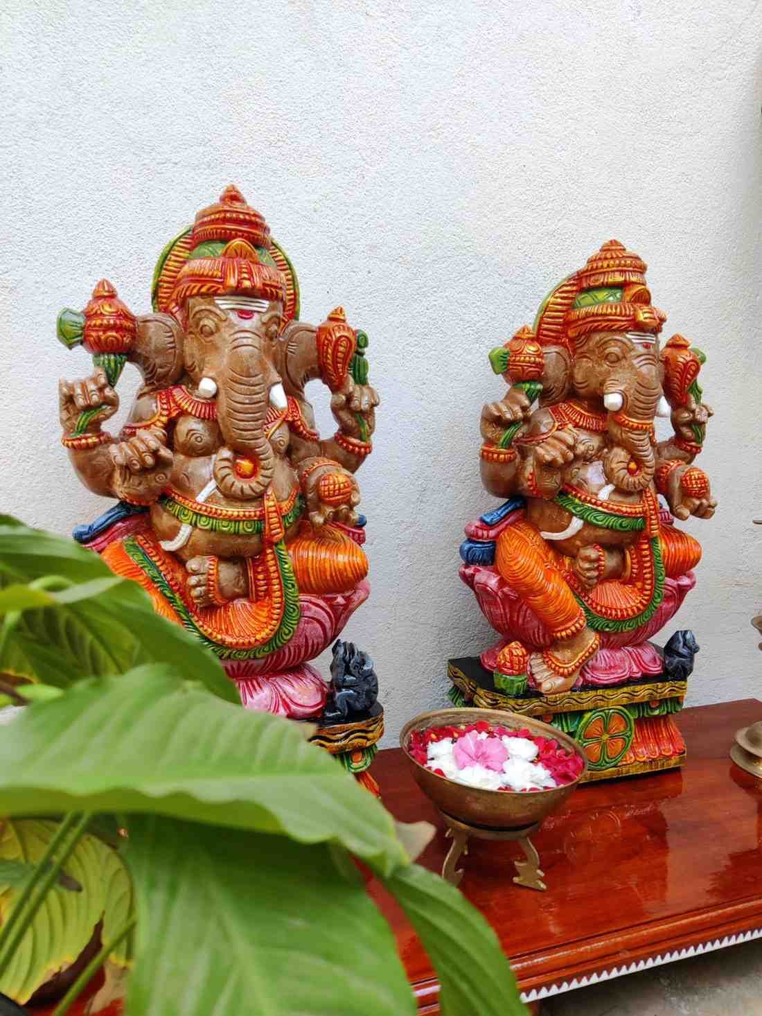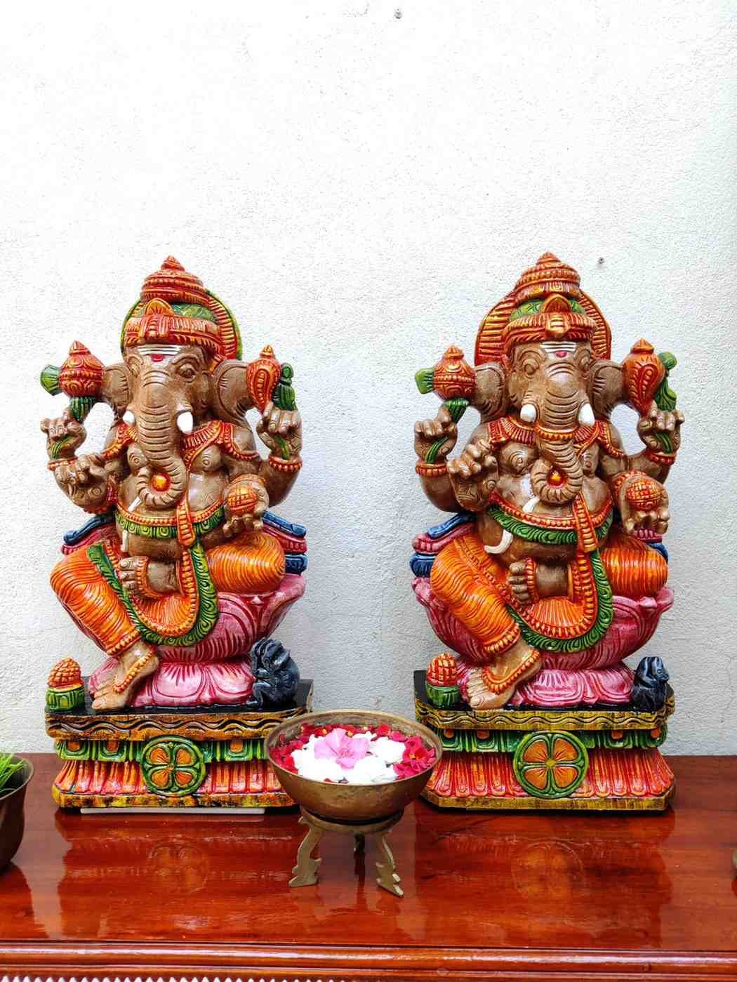 Hand Carved and Handpainted Wood Statues. Each Statue is hand carved to its grace and hand painted by us. This adds up beauty to your space with a traditional touch.The Size and Paintings can be customized as per your requirements.