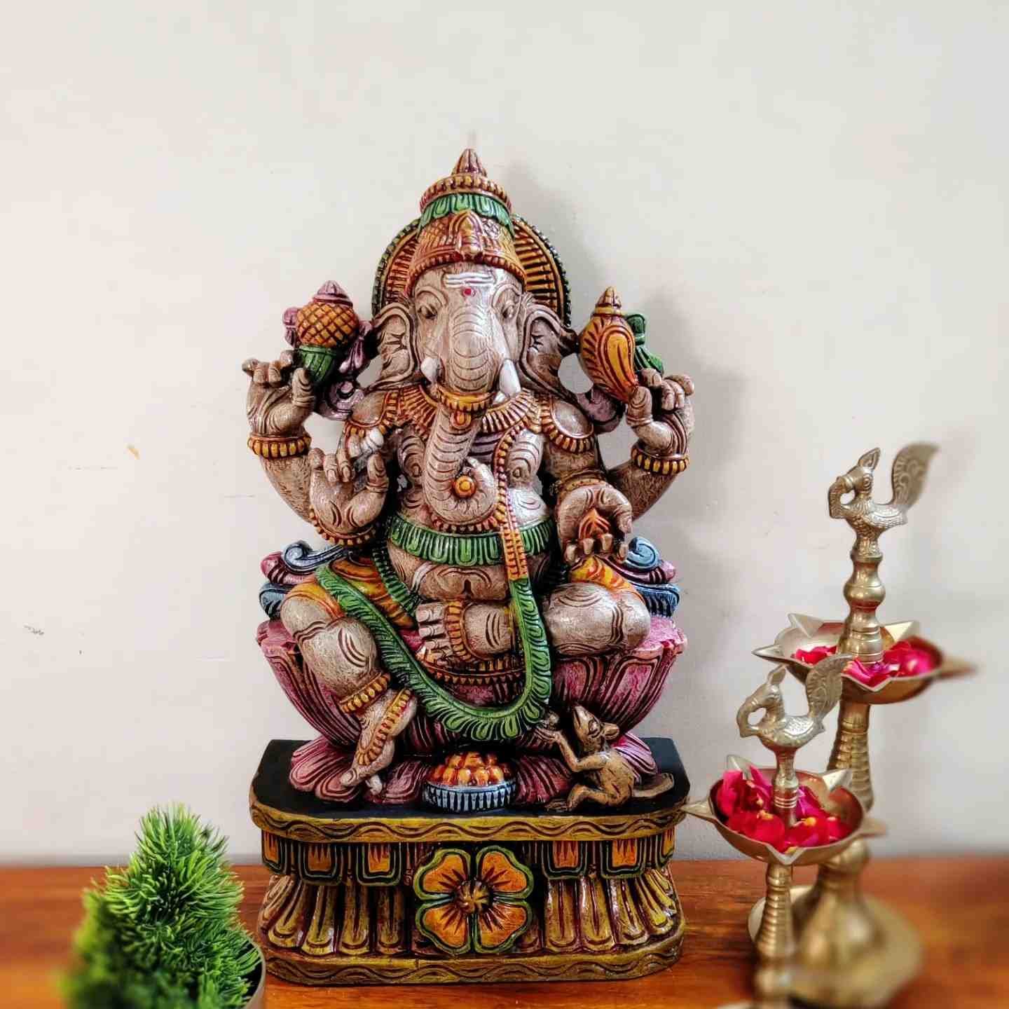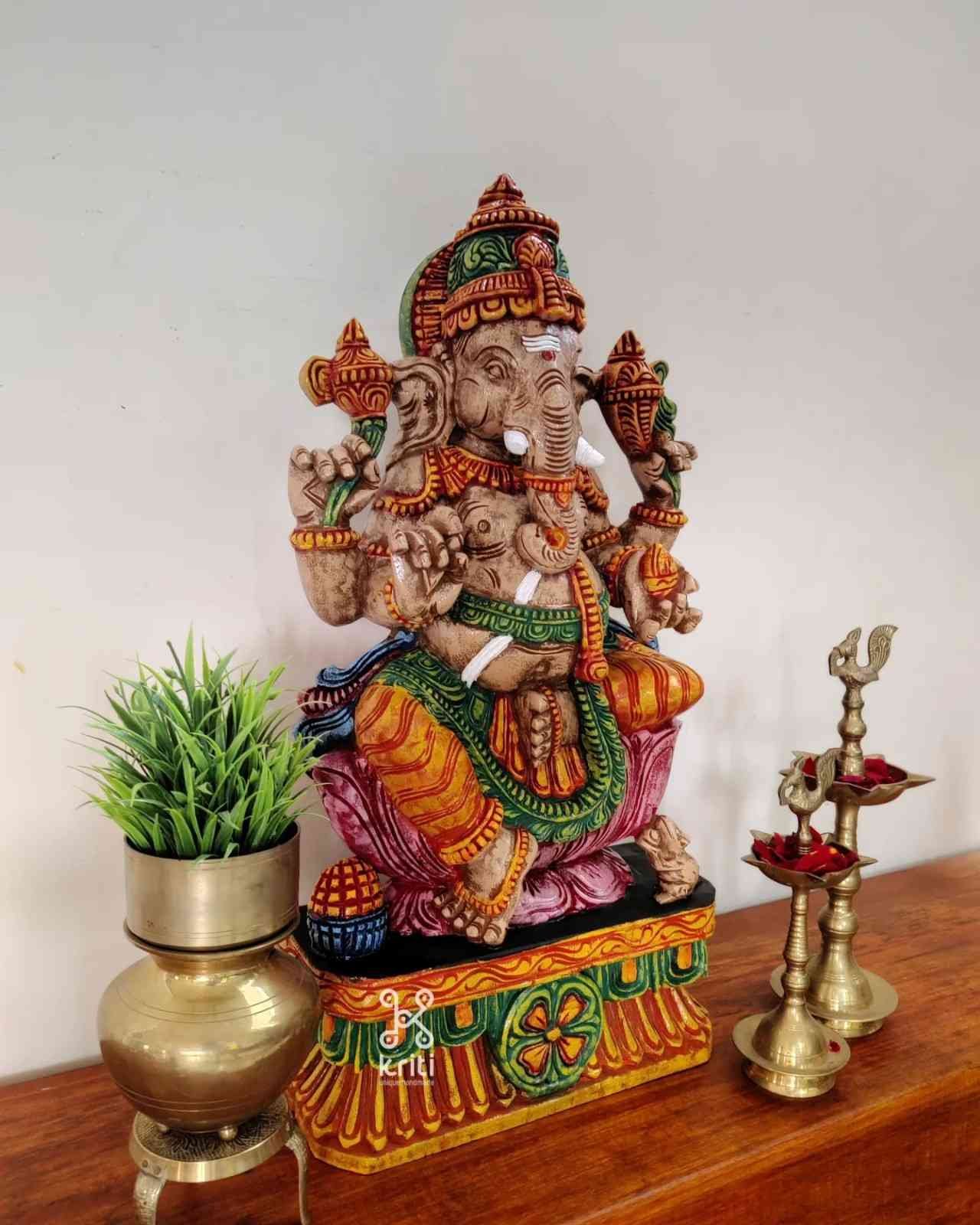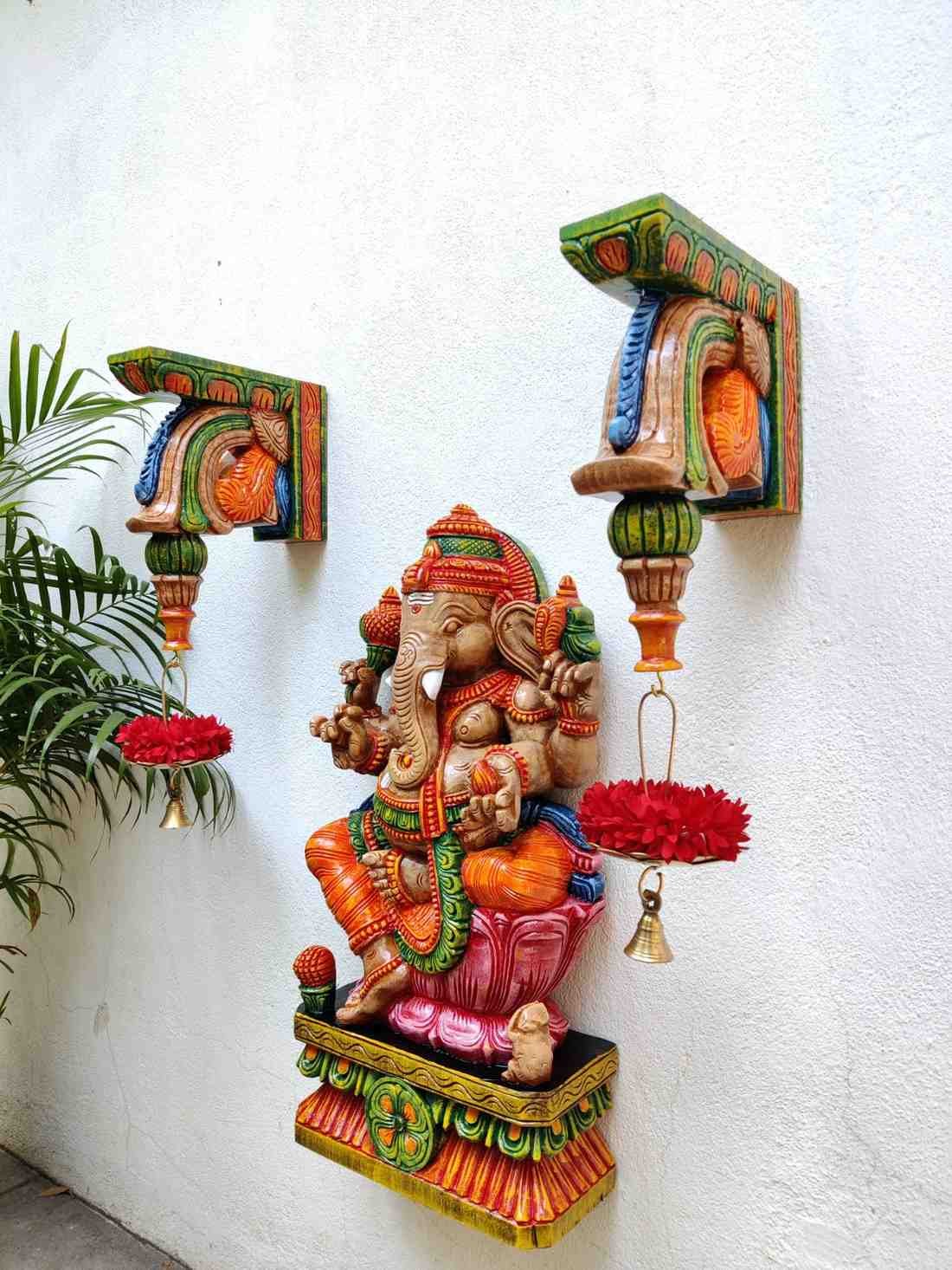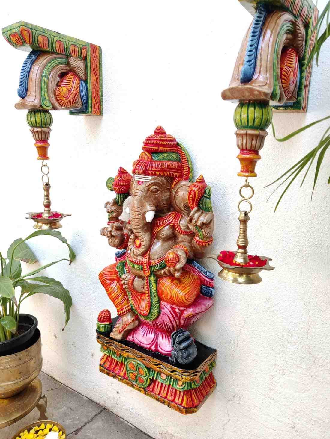 Hand Carved and Handpainted Wood Statues. Each Statue is hand carved to its grace and hand painted by us. This adds up beauty to your space with a traditional touch.The Size and Paintings can be customized as per your requirements.