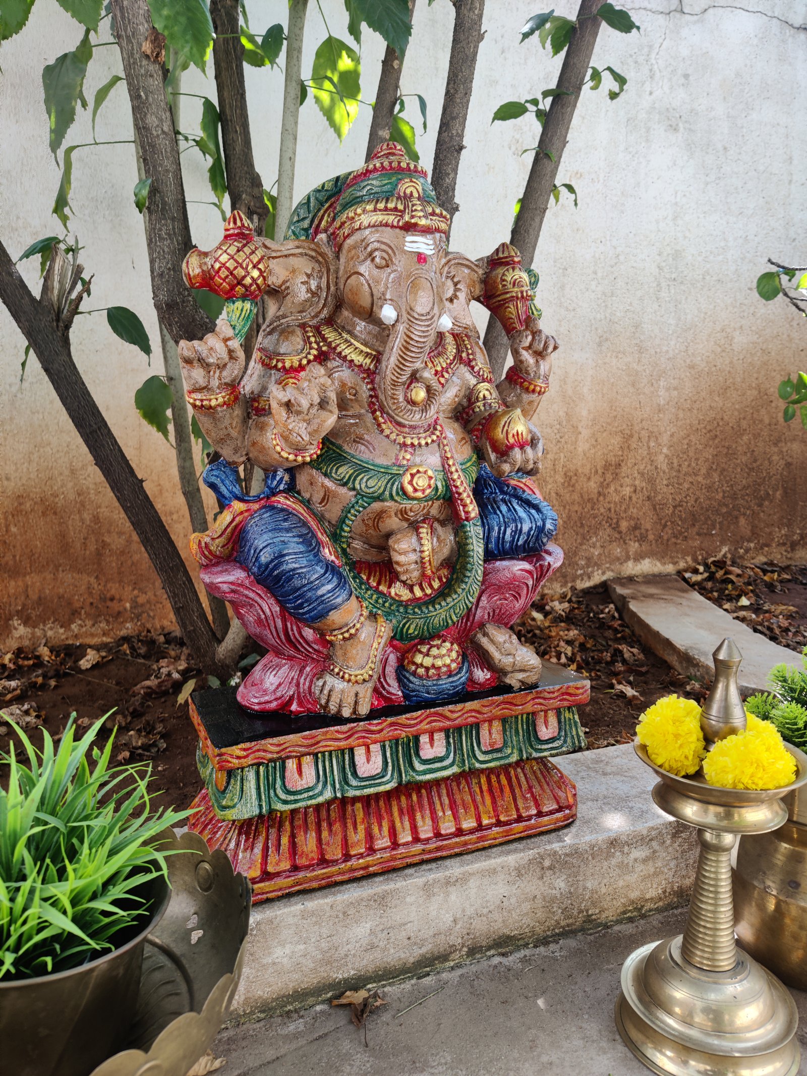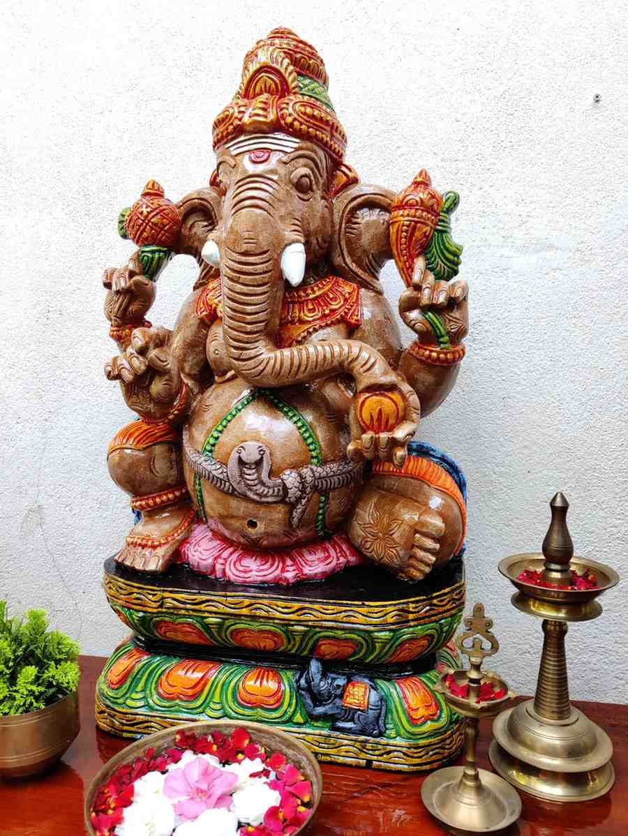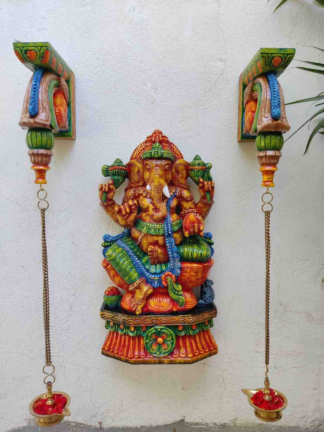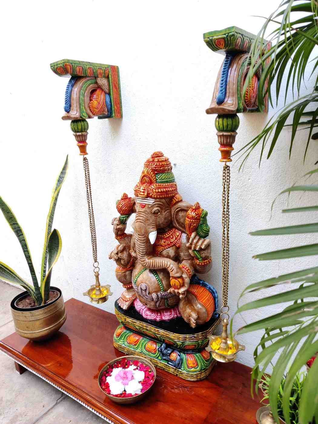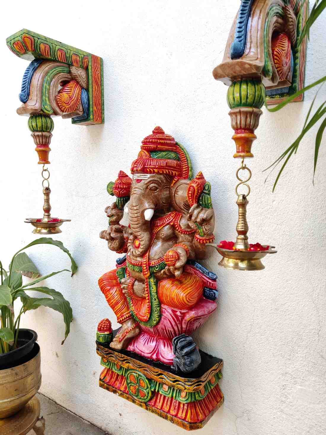 Lord Ganesha Sitting On Lotus With Chettinadu Small Corbels