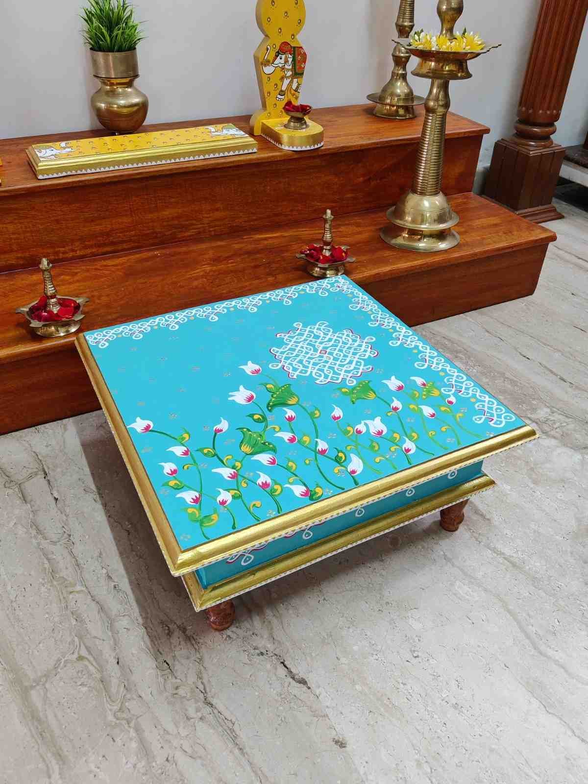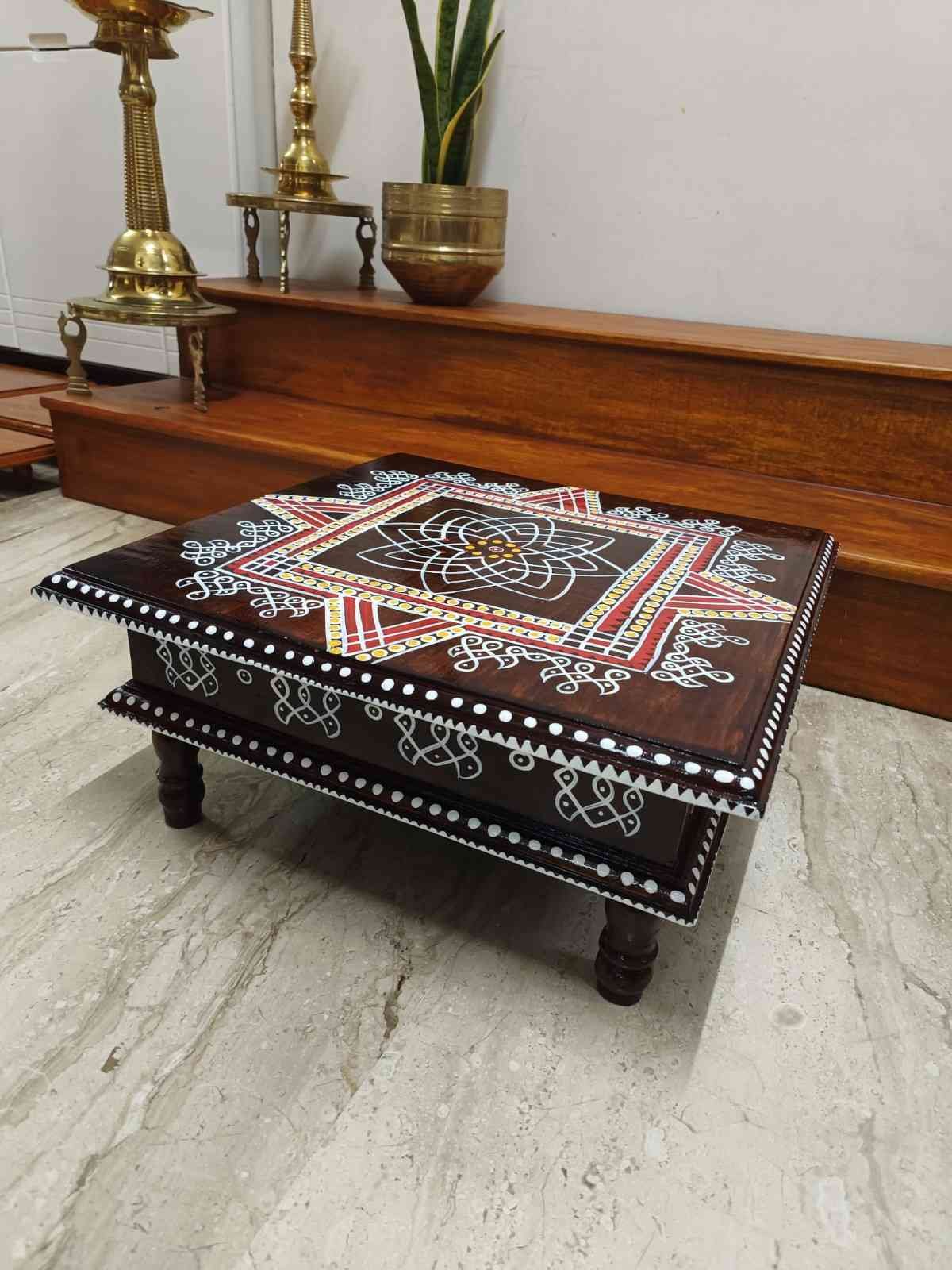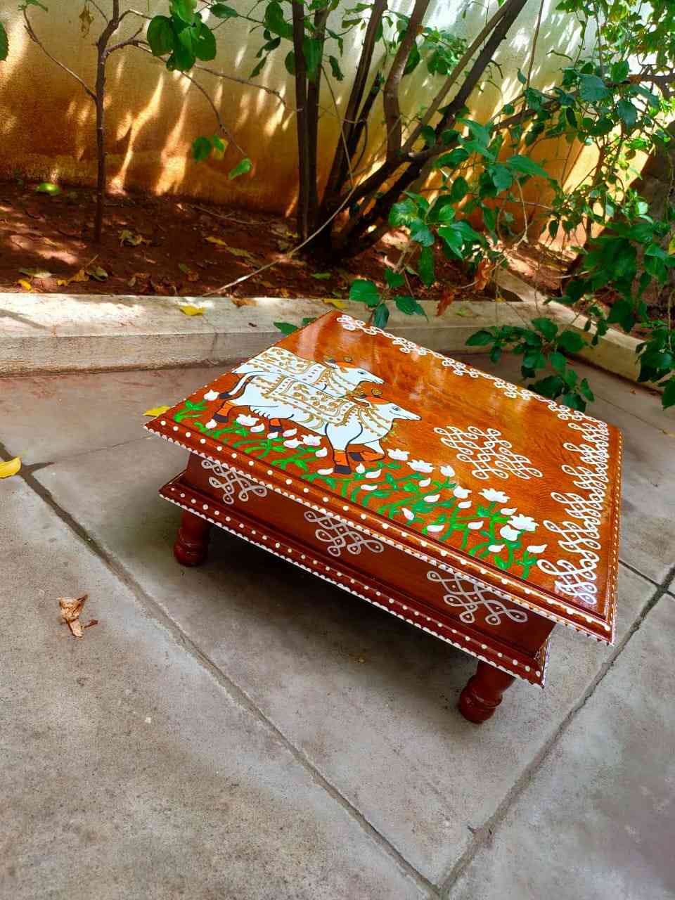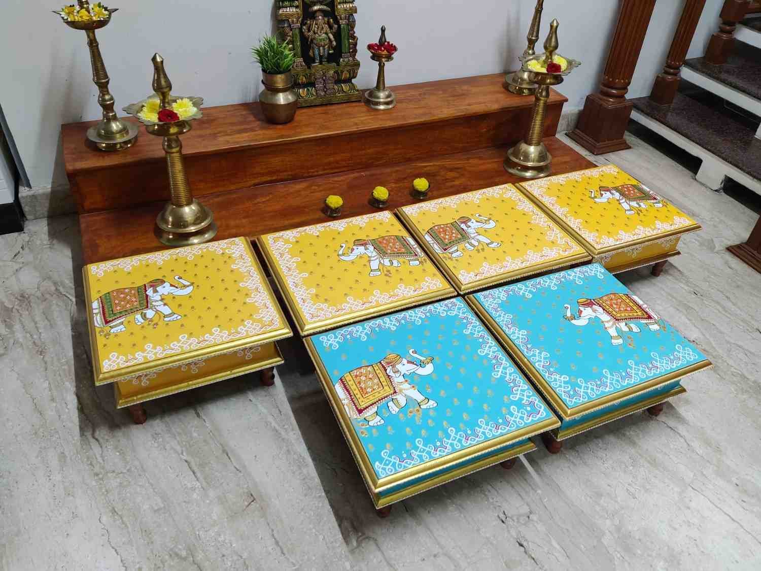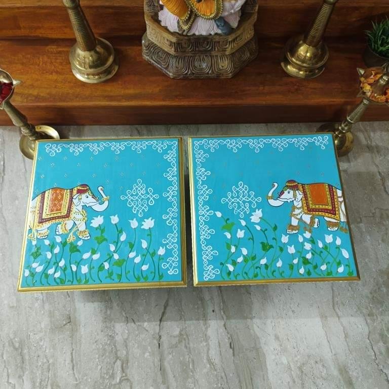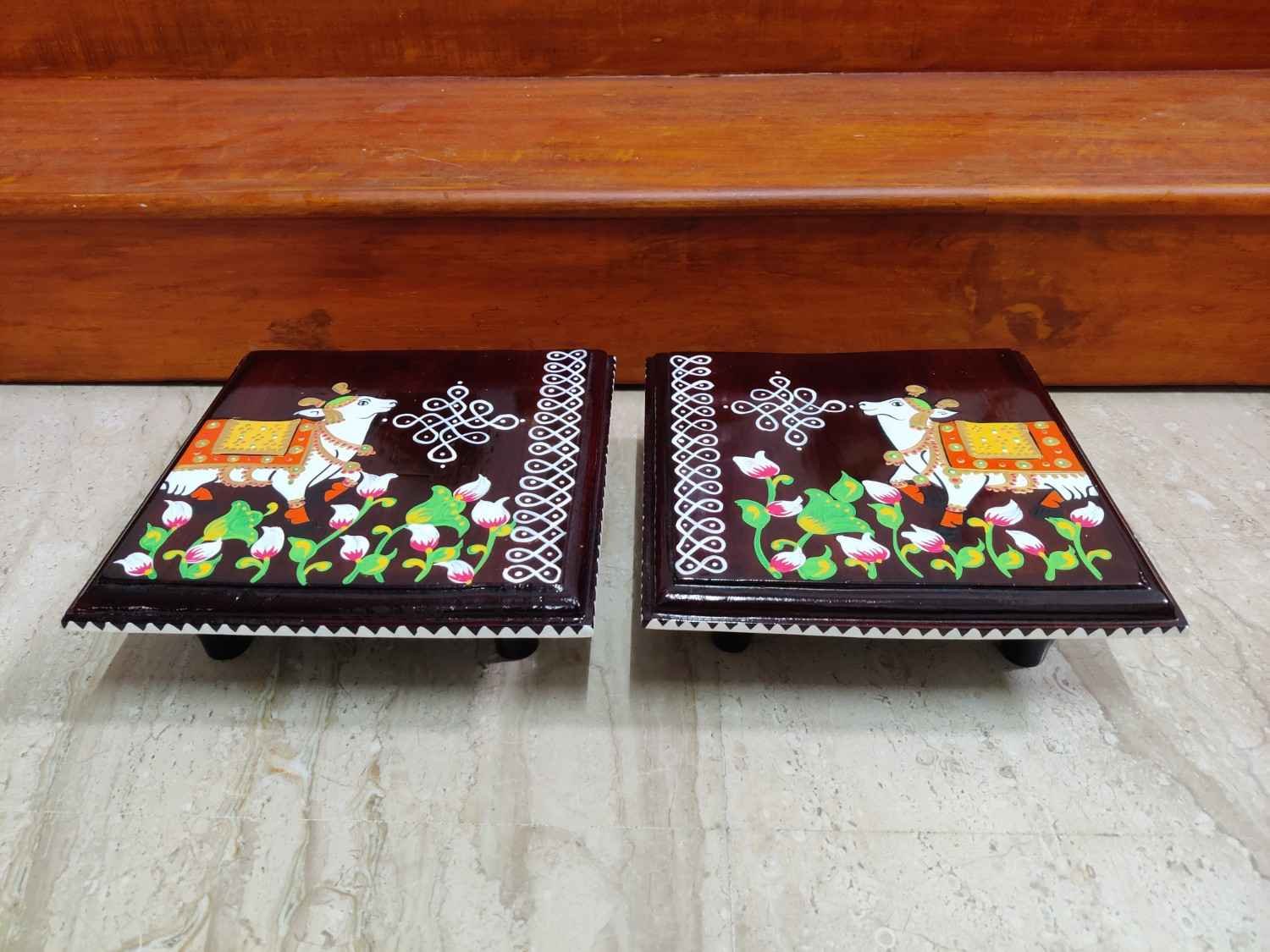 This is a traditional Square Style stools that have an increased height for sitting. This is the best option for those who need little raised stools for sitting. The best option for Display of Gods during Ganesh Chathurthi, Varalakshmi Pooja and Kalasams for Pooja. The bigger Size stools can be used as a side tables for Sofas / Couches. It can also be used as a traditional décor, display of heavy statues and other storage purposes. It can be done in wood finish only/ Painted