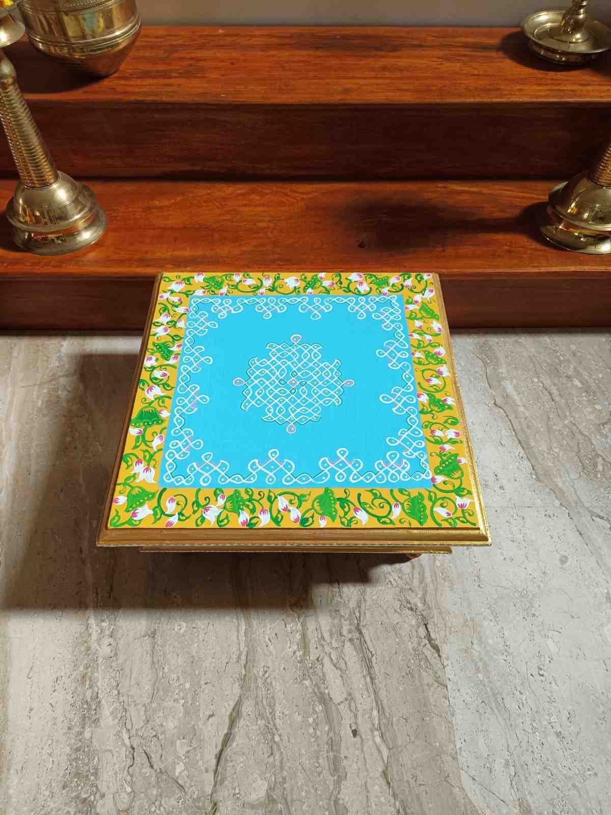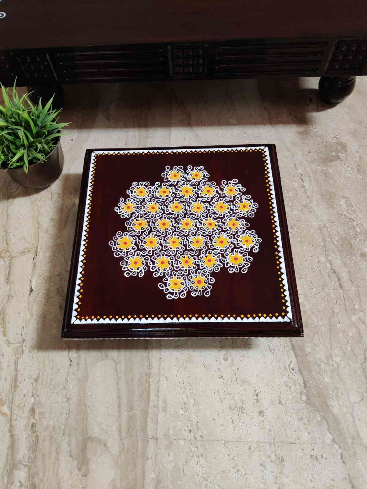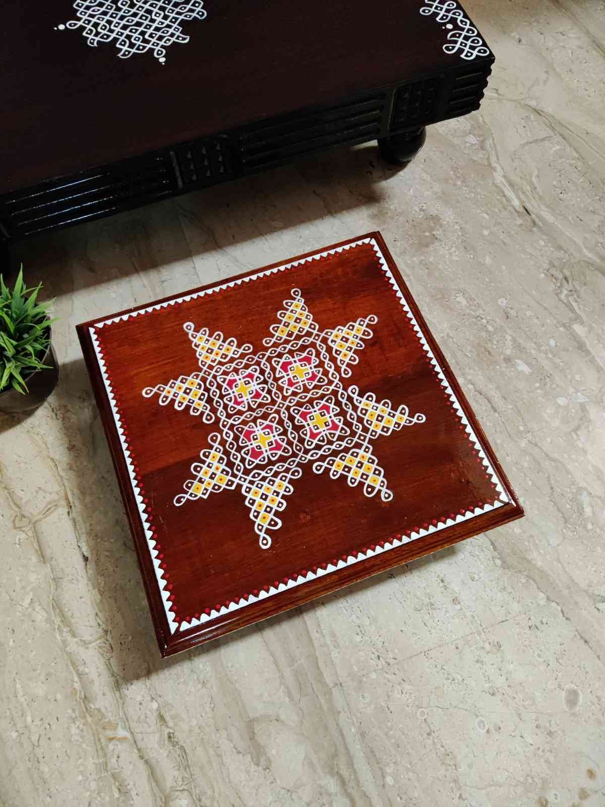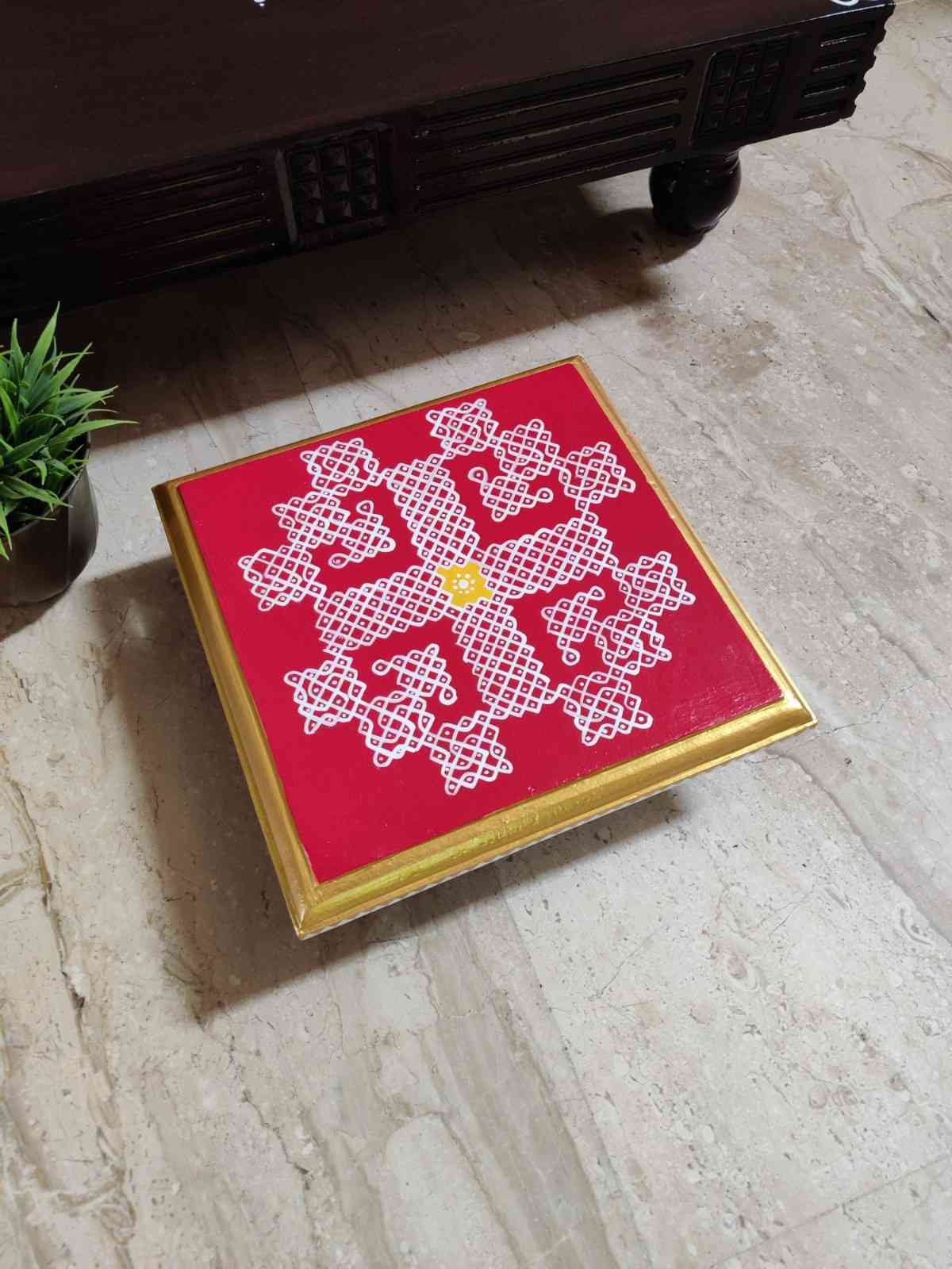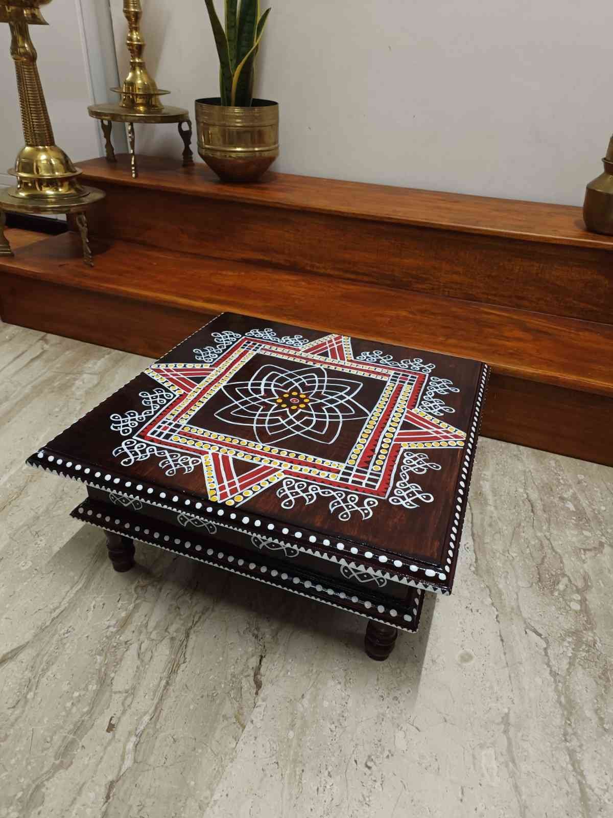 This is a traditional Square Style stools that have an increased height for sitting. This is the best option for those who need little raised stools for sitting. The best option for Display of Gods during Ganesh Chathurthi, Varalakshmi Pooja and Kalasams for Pooja. The bigger Size stools can be used as a side tables for Sofas / Couches. It can also be used as a traditional décor, display of heavy statues and other storage purposes. It can be done in wood finish only/ Painted