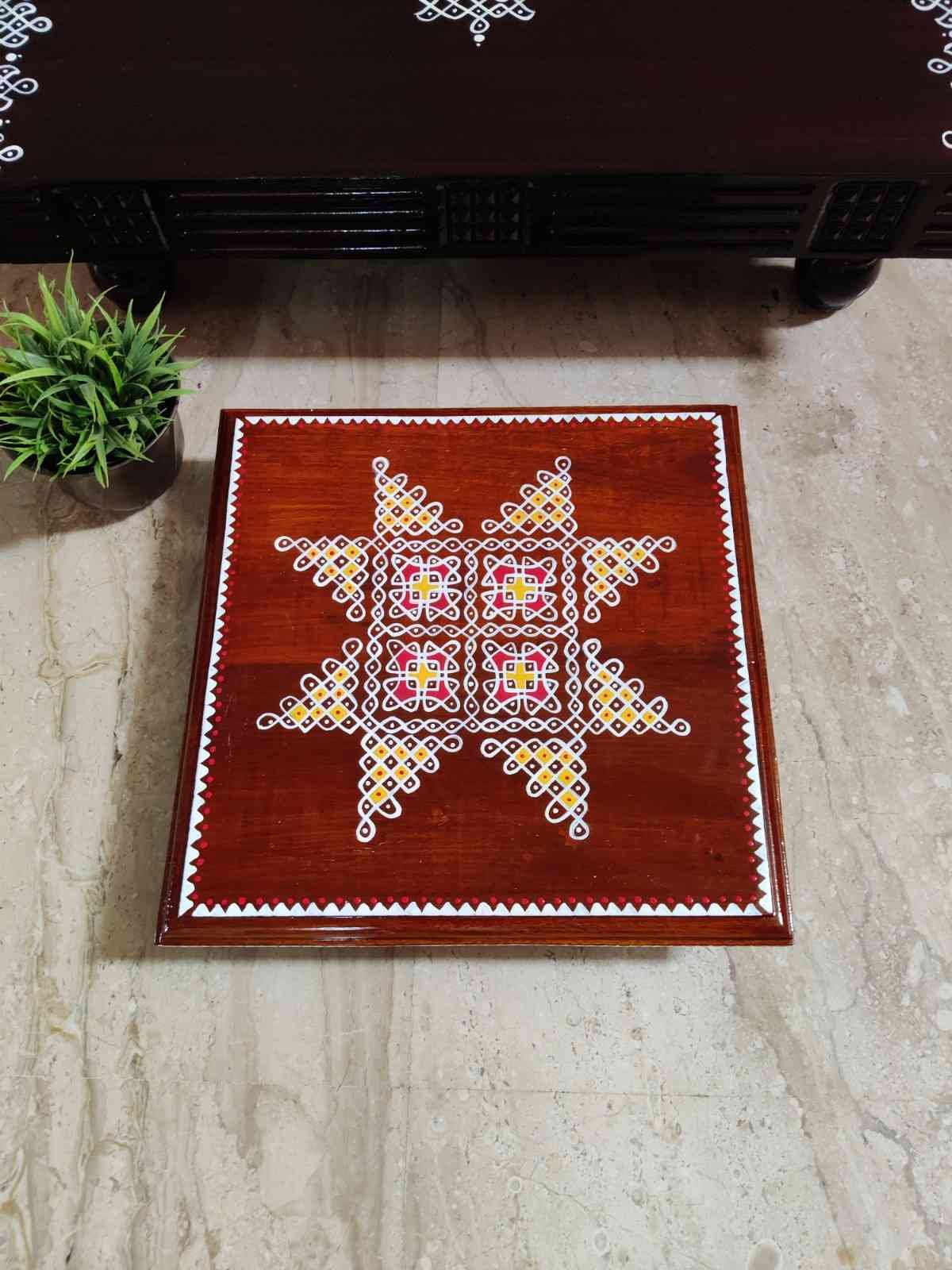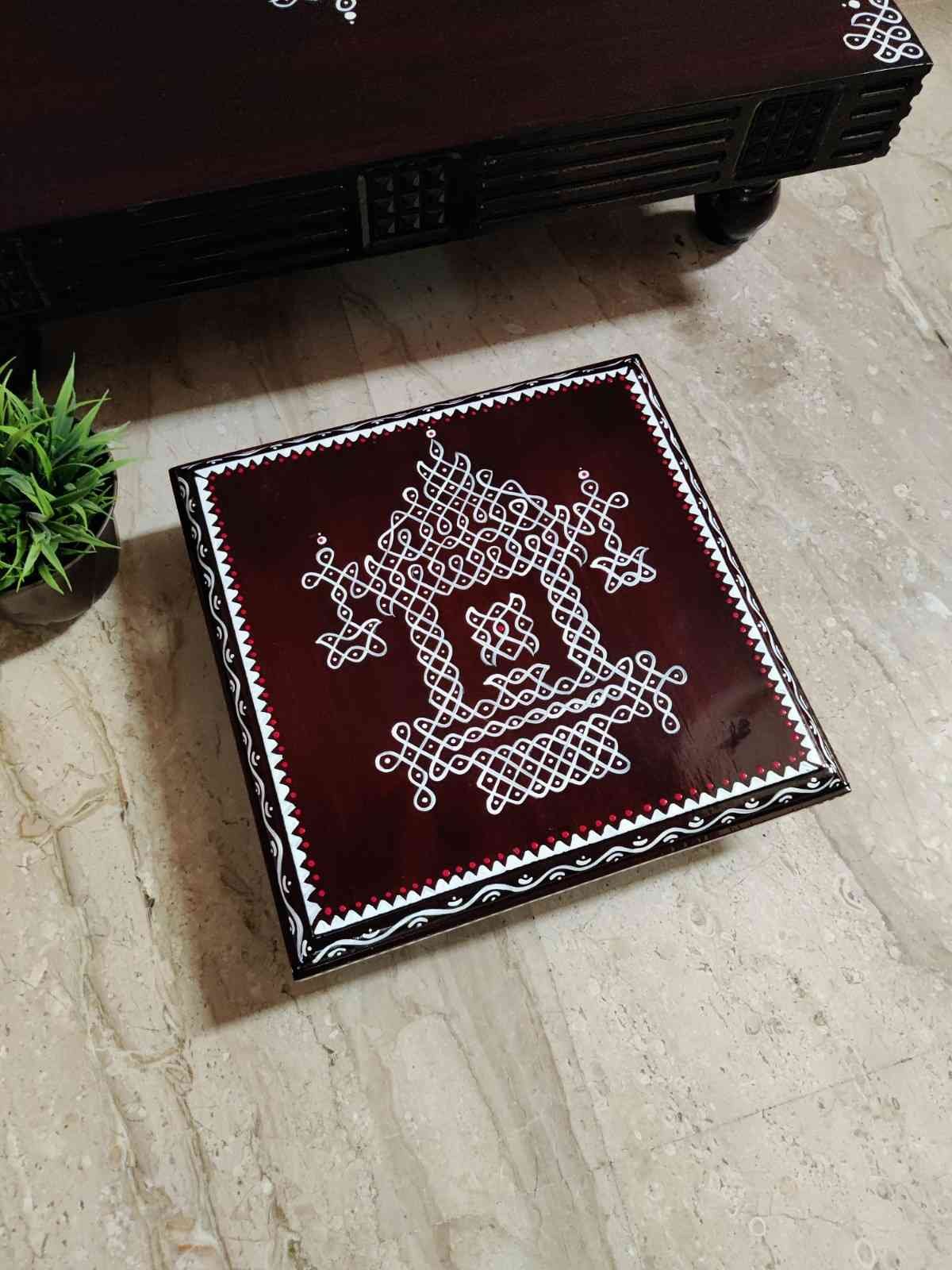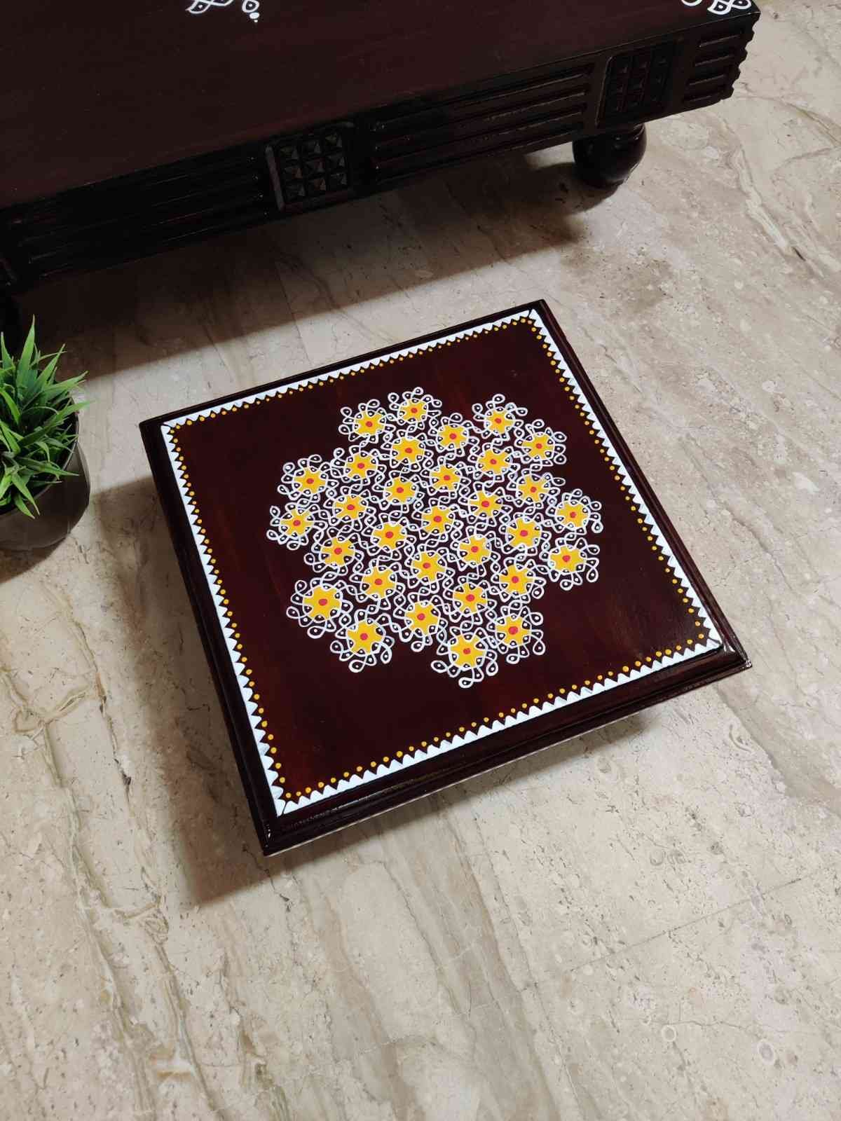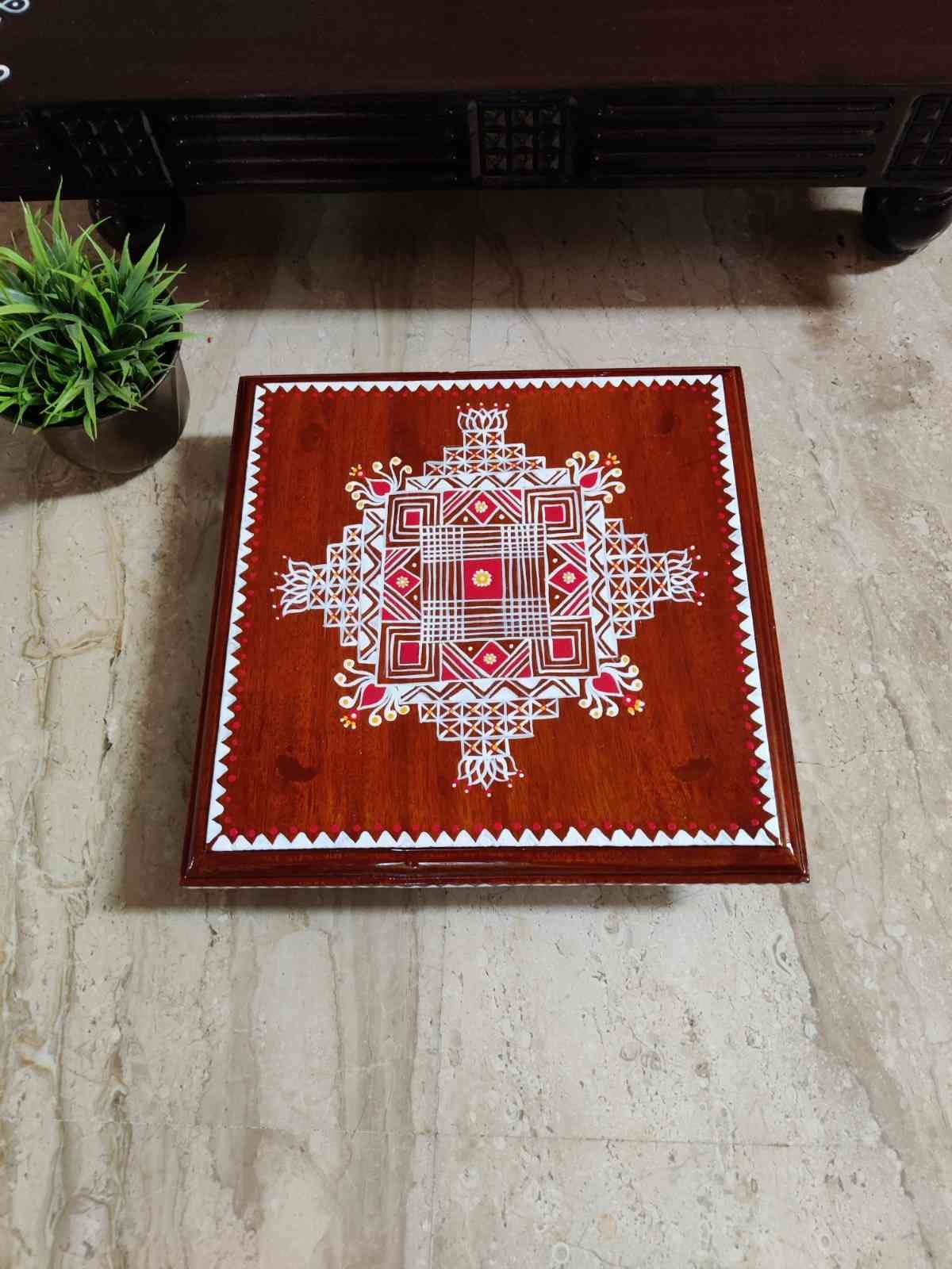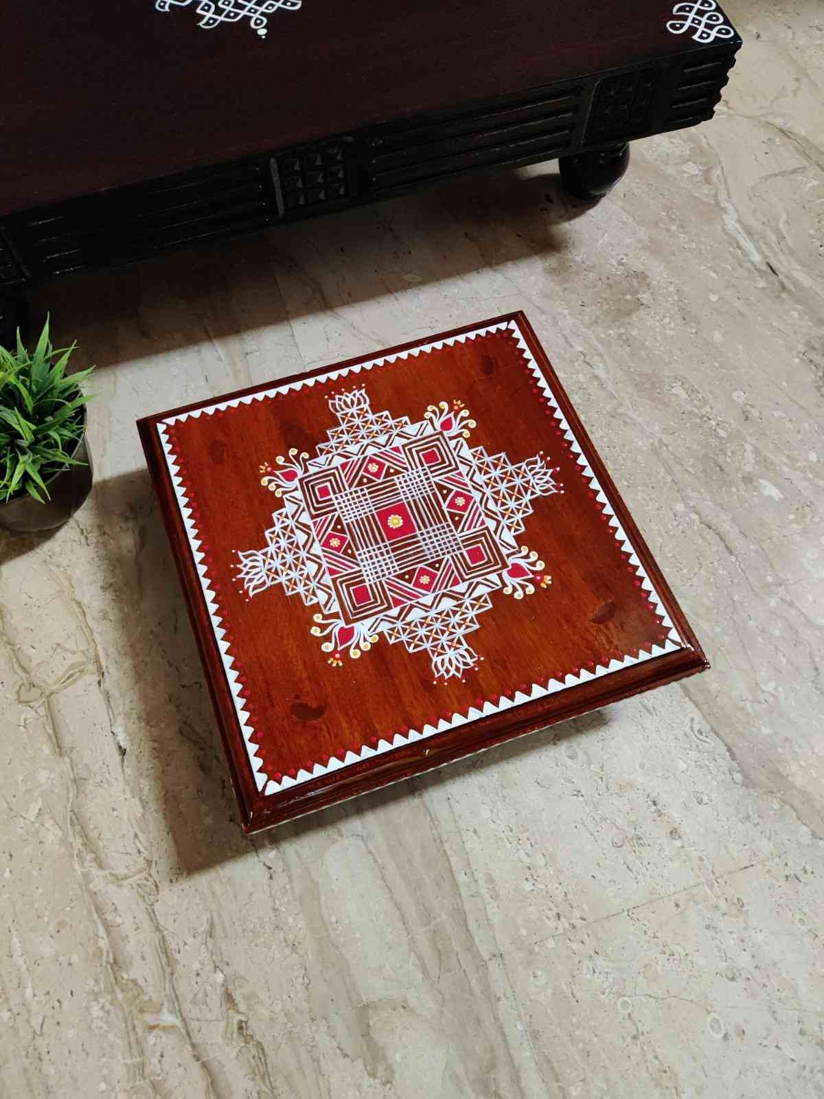 This is a traditional Square Style stools that have an increased height for sitting. This is the best option for those who need little raised stools for sitting. The best option for Display of Gods during Ganesh Chathurthi, Varalakshmi Pooja and Kalasams for Pooja. The bigger Size stools can be used as a side tables for Sofas / Couches. It can also be used as a traditional décor, display of heavy statues and other storage purposes. It can be done in wood finish only/ Painted