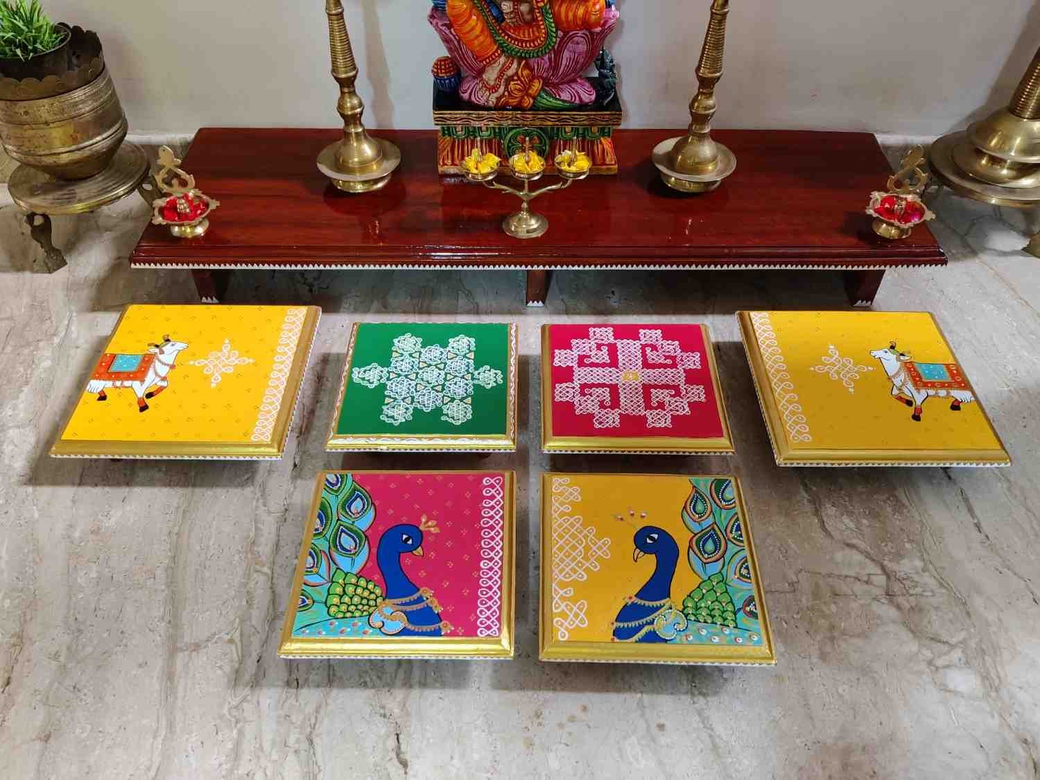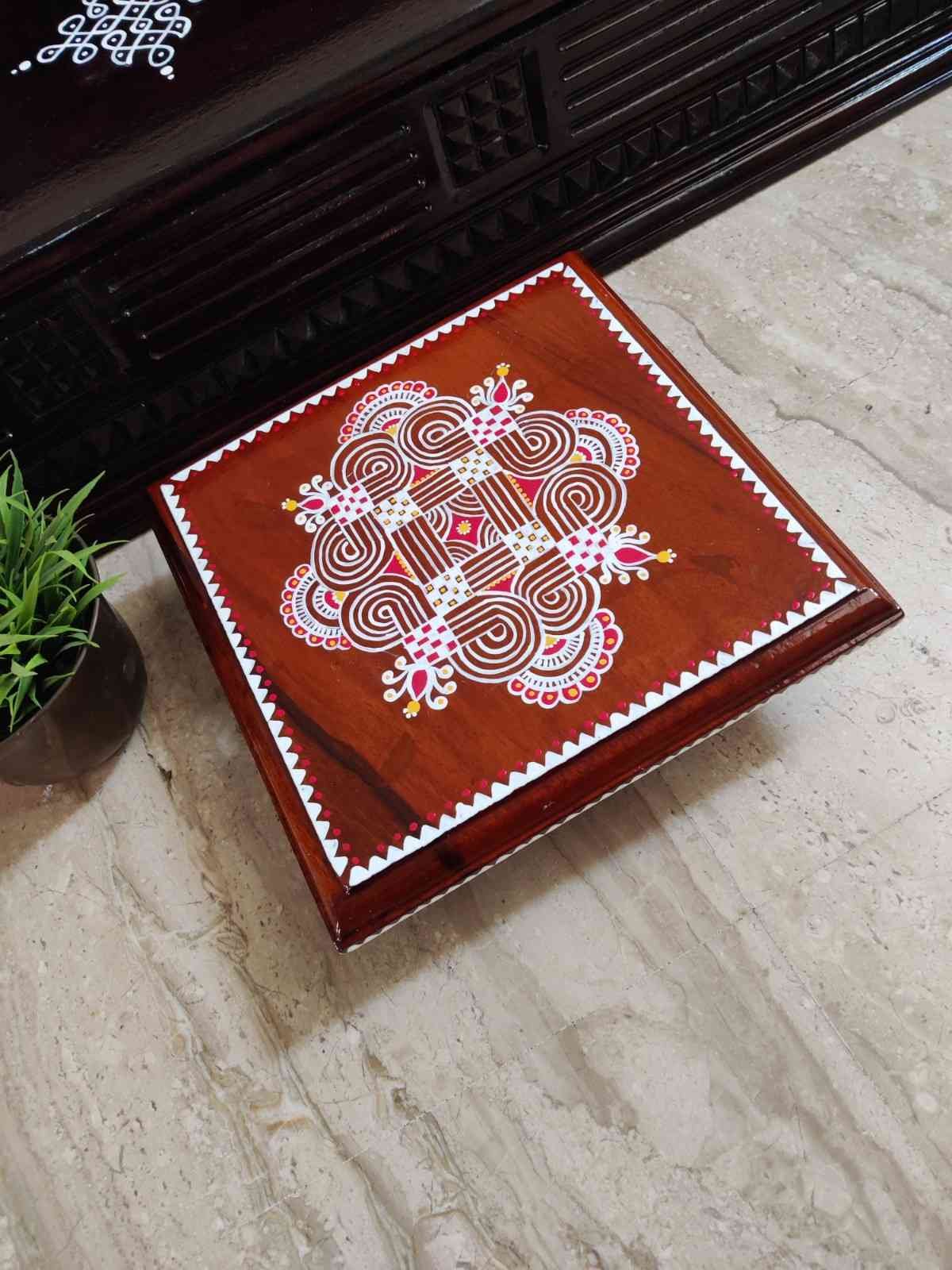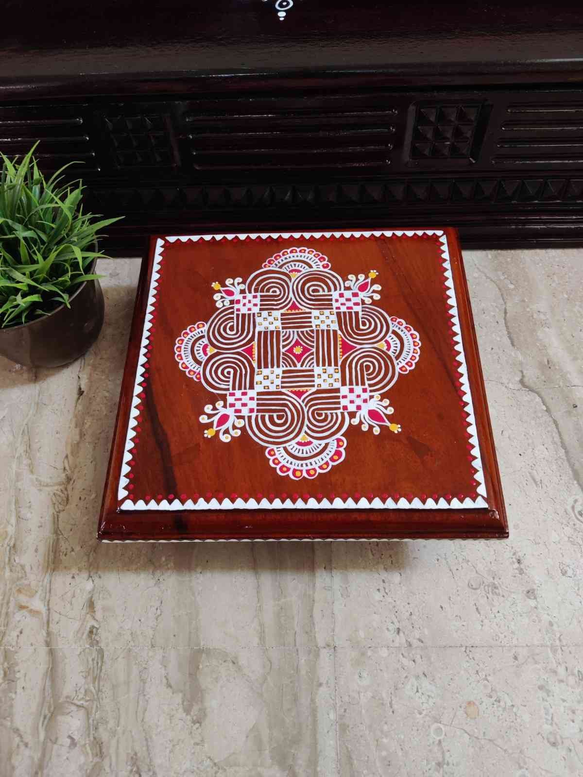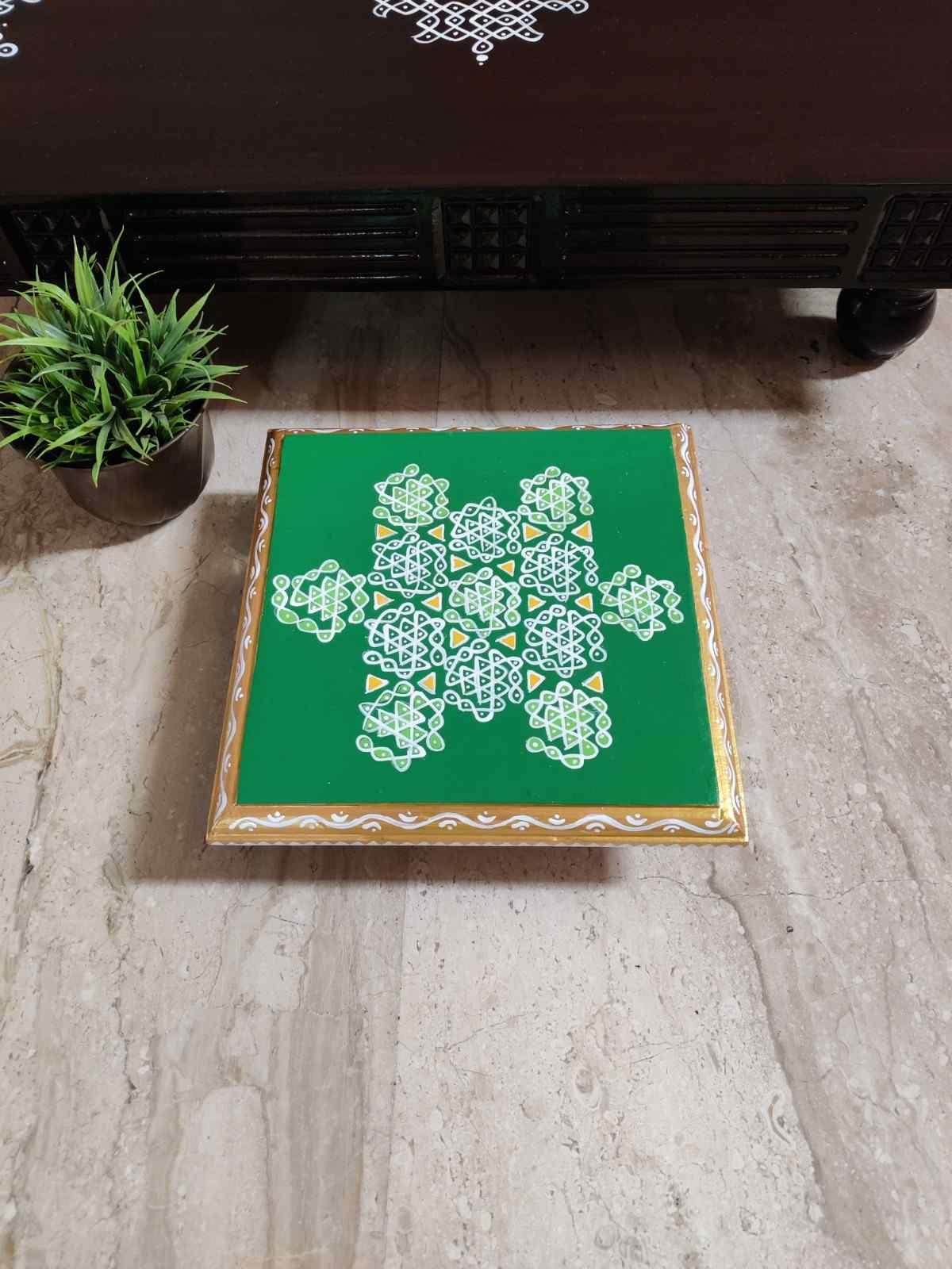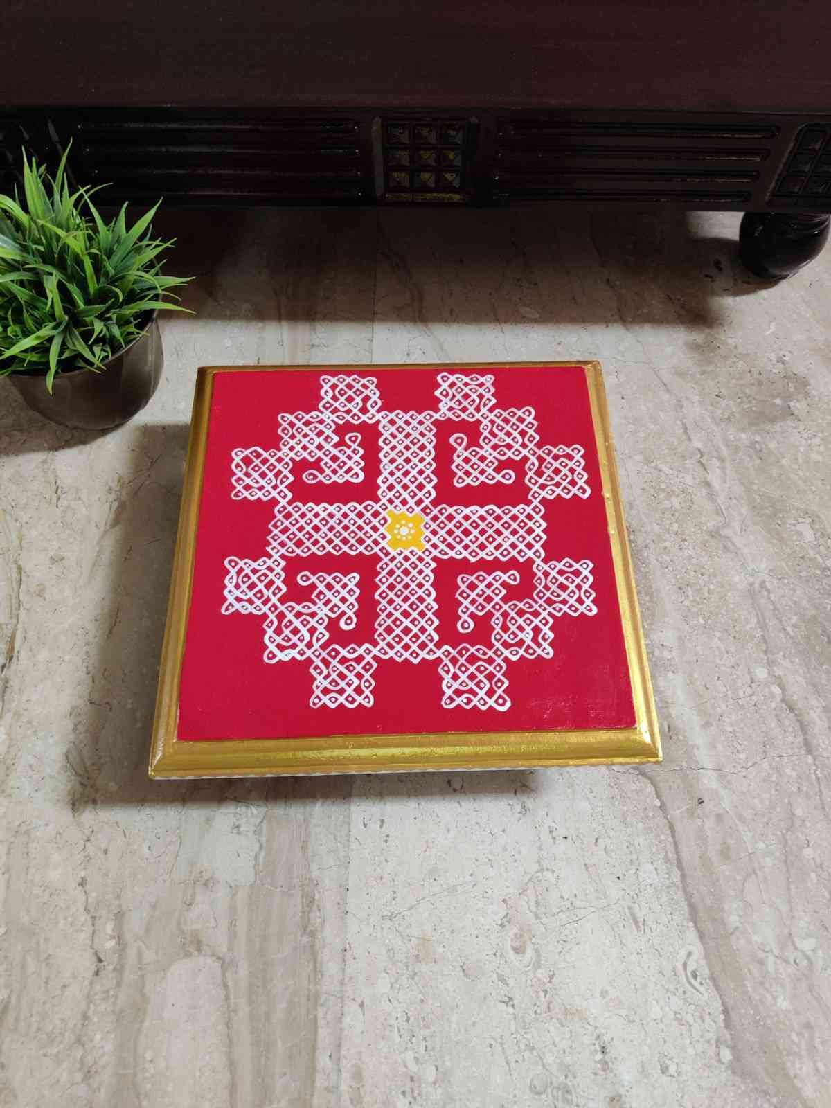 This is a traditional Square Style stools that have an increased height for sitting. This is the best option for those who need little raised stools for sitting. The best option for Display of Gods during Ganesh Chathurthi, Varalakshmi Pooja and Kalasams for Pooja. The bigger Size stools can be used as a side tables for Sofas / Couches. It can also be used as a traditional décor, display of heavy statues and other storage purposes. It can be done in wood finish only/ Painted