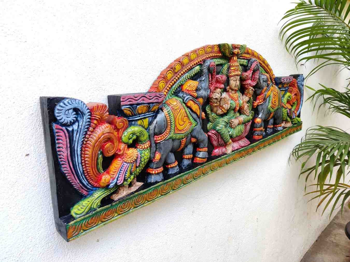 Hand Carved and Handpainted Wooden Carved Panel . This adds up beauty to your space with a traditional touch. The Paintings and size can be customized as per your requirements.